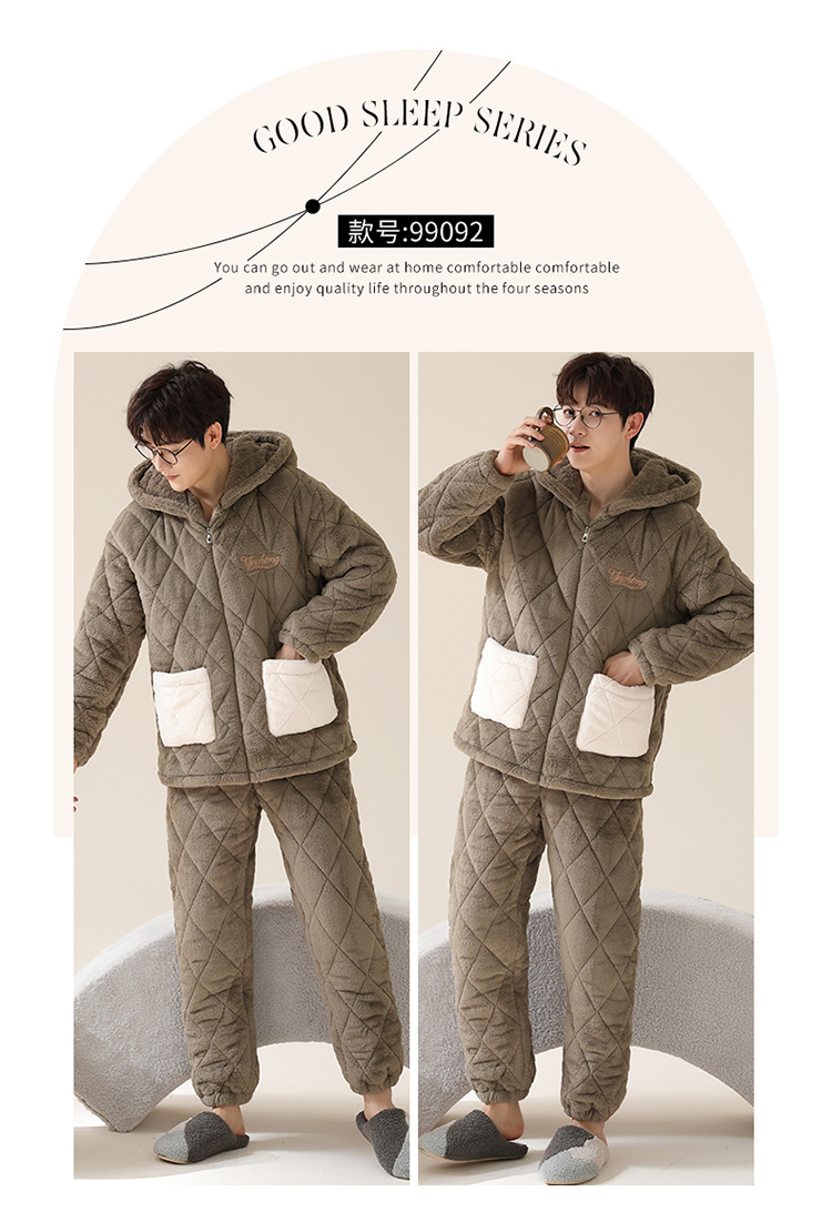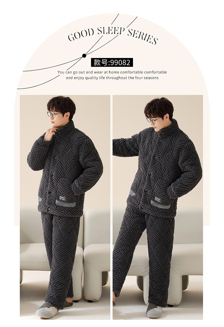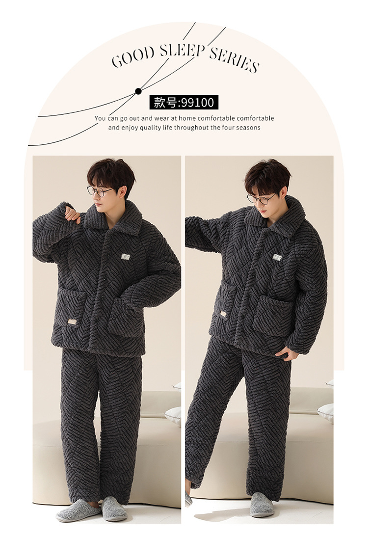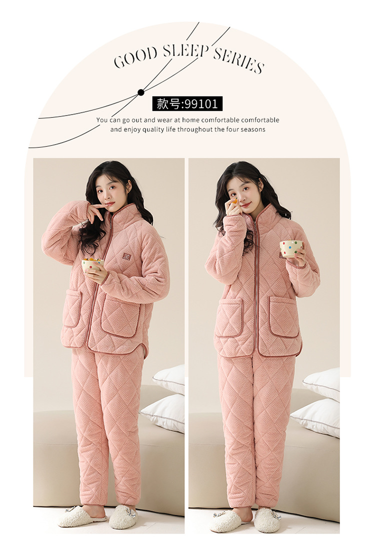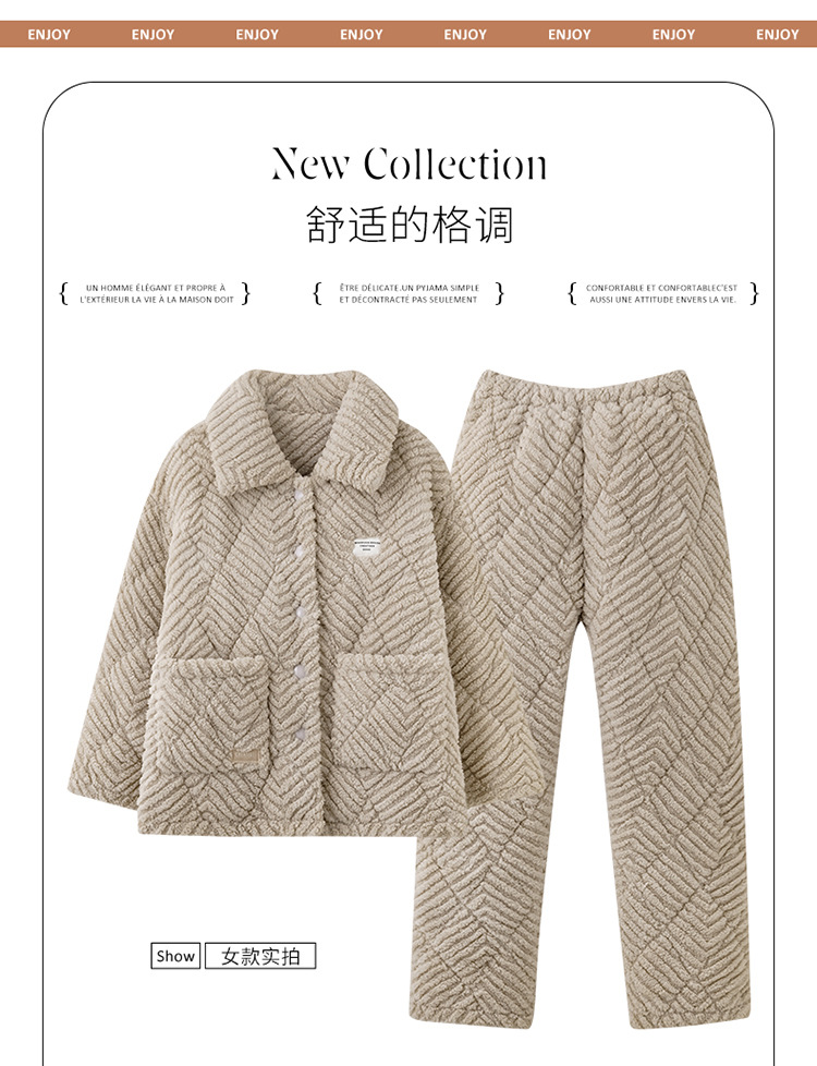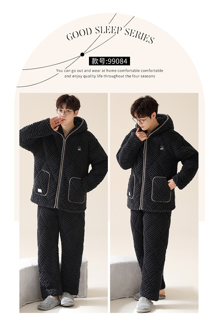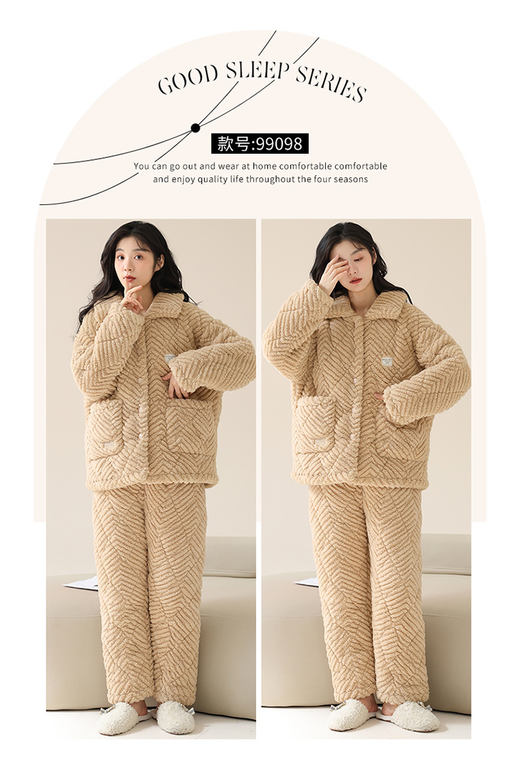 情侣睡衣女秋冬季三层夹棉珊瑚绒加厚加绒冬款保暖法兰绒家居服男