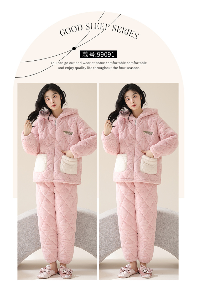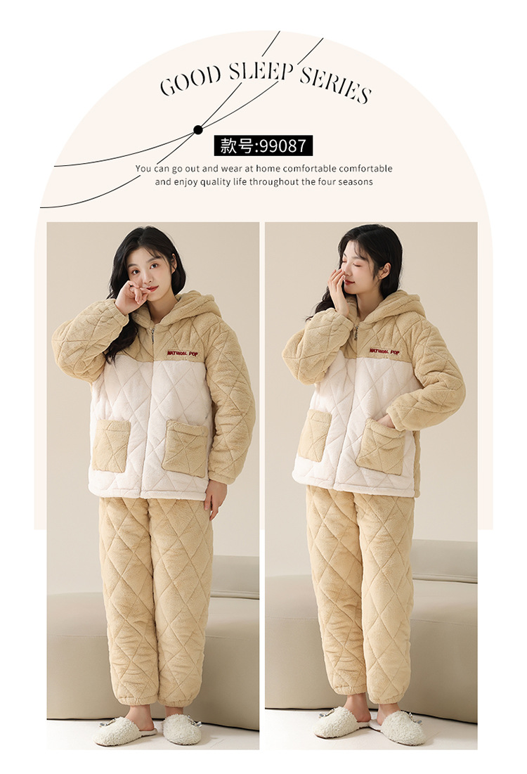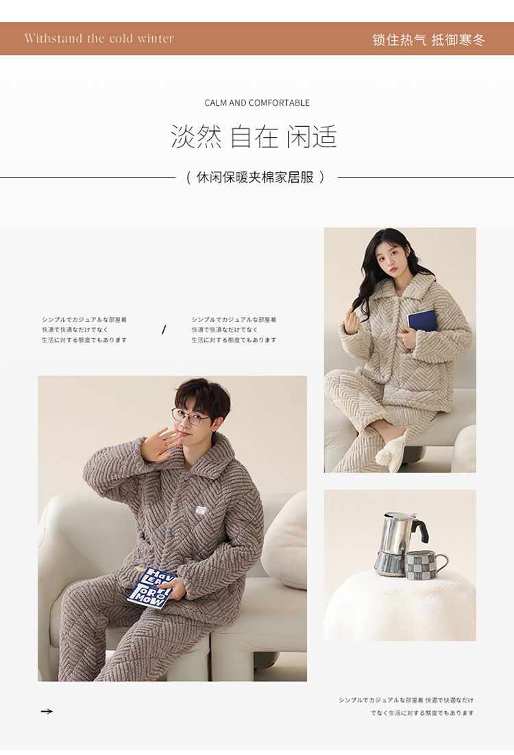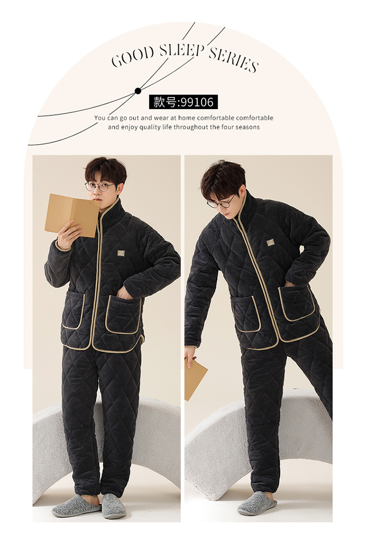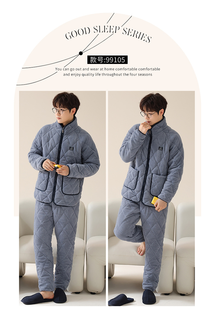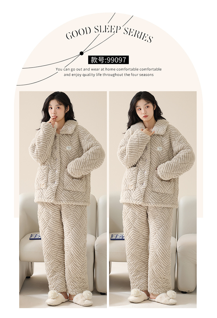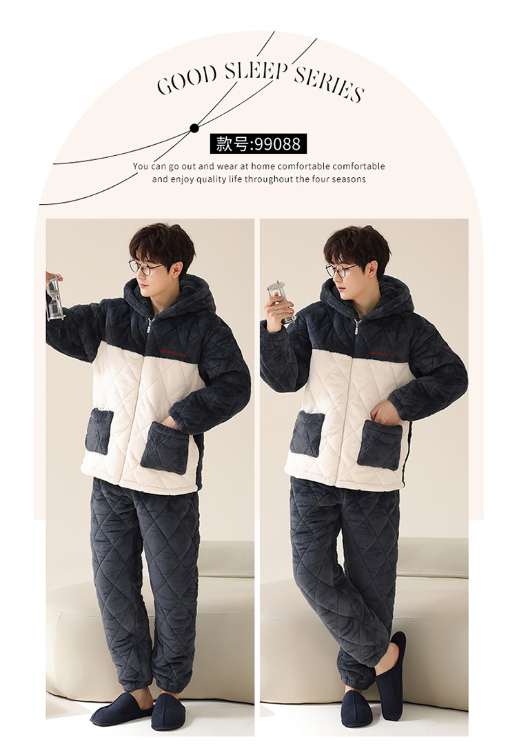 情侣睡衣女秋冬季三层夹棉珊瑚绒加厚加绒冬款保暖法兰绒家居服男