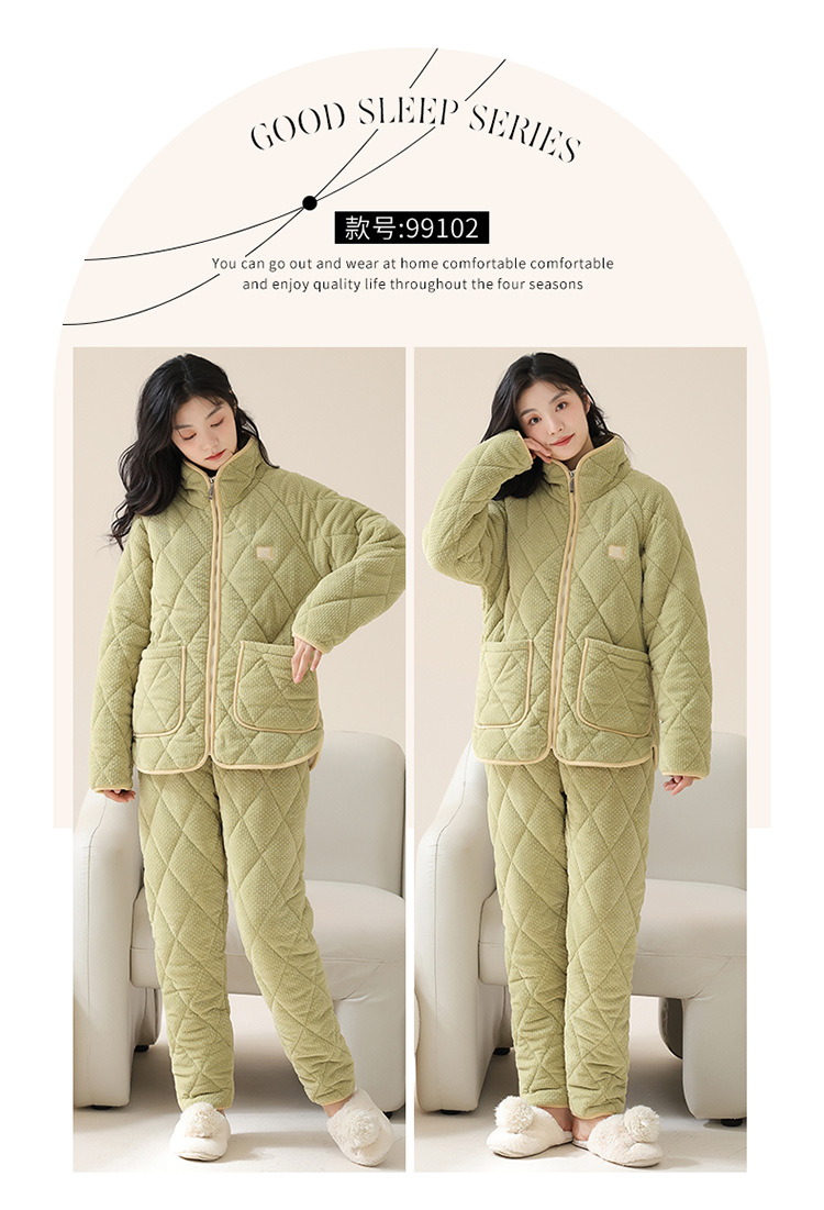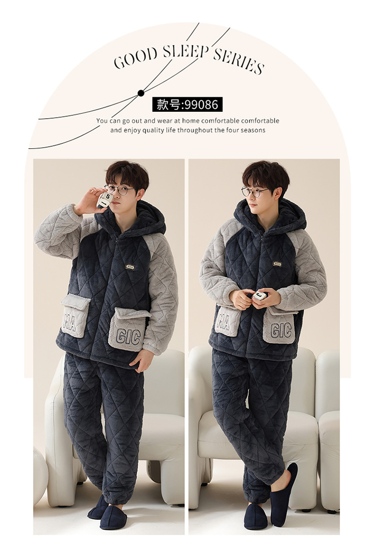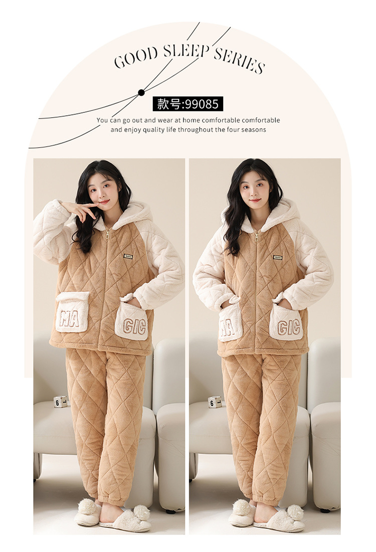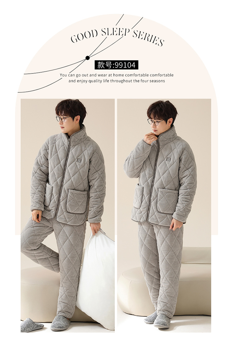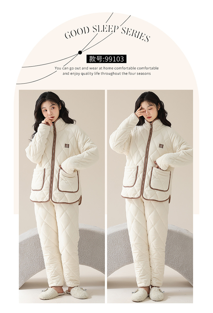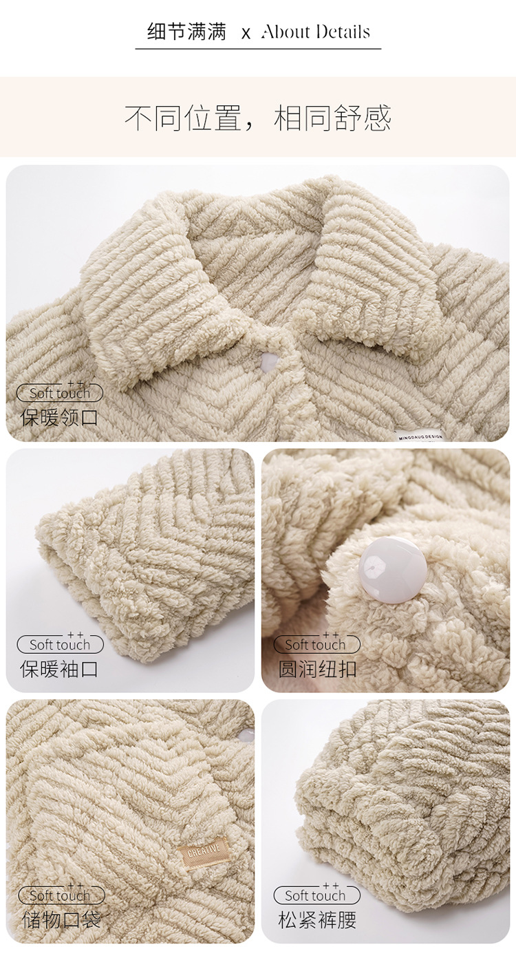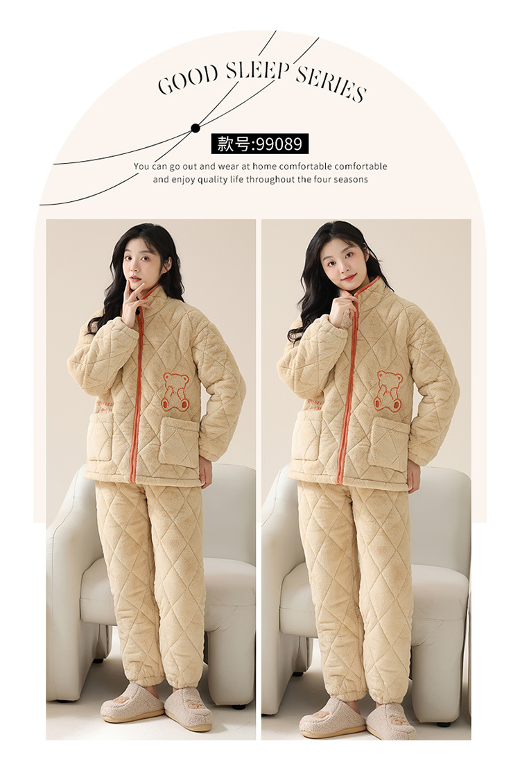 情侣睡衣女秋冬季三层夹棉珊瑚绒加厚加绒冬款保暖法兰绒家居服男