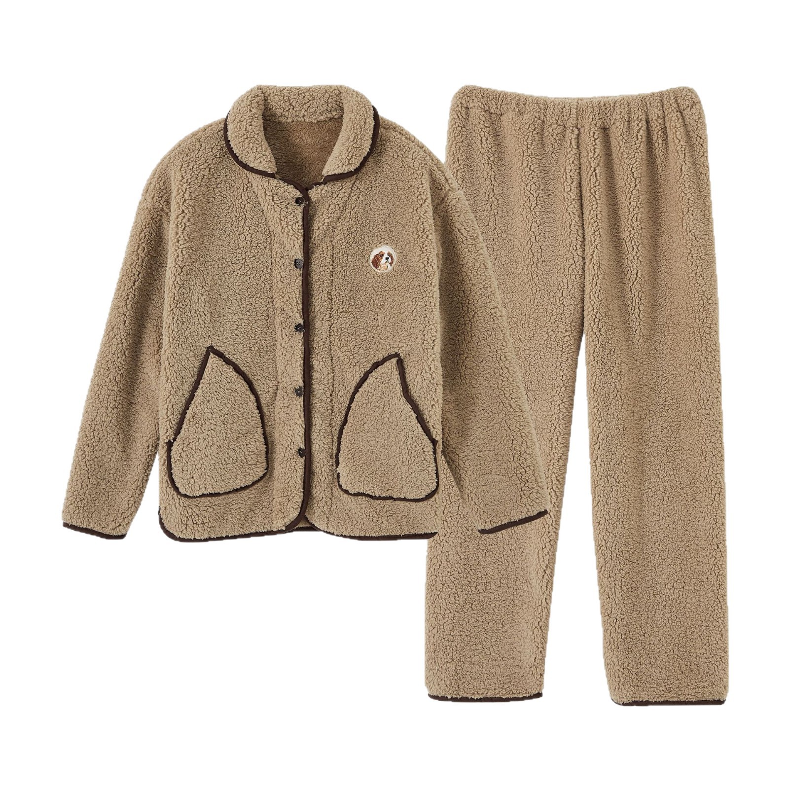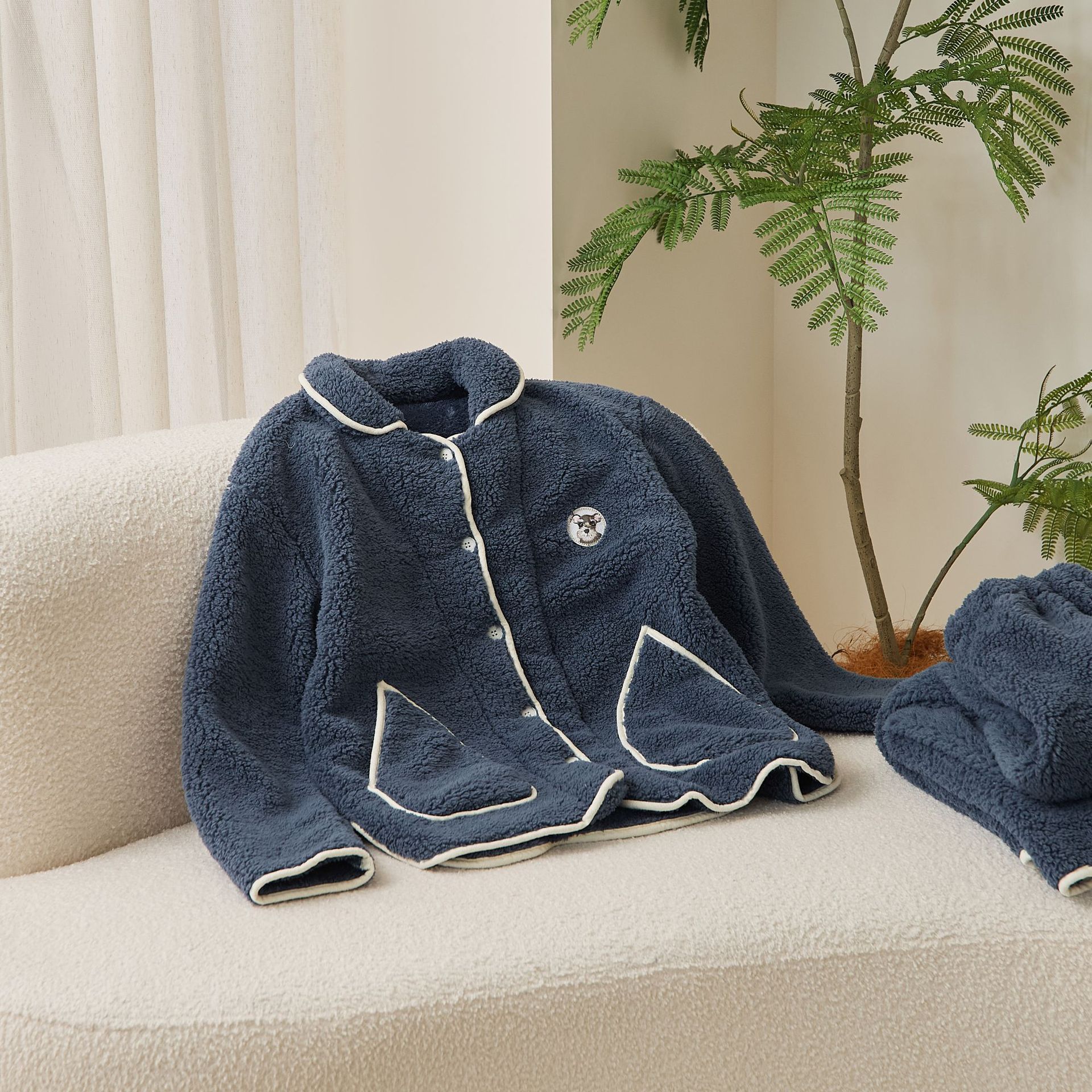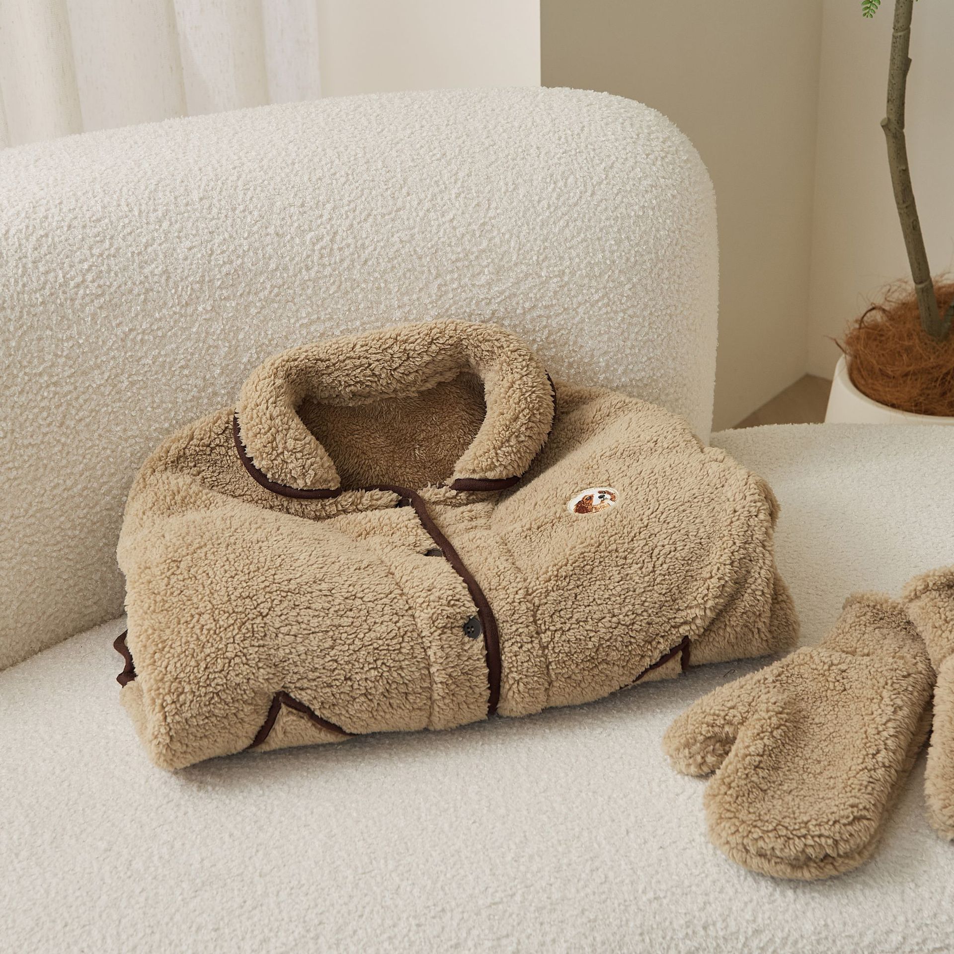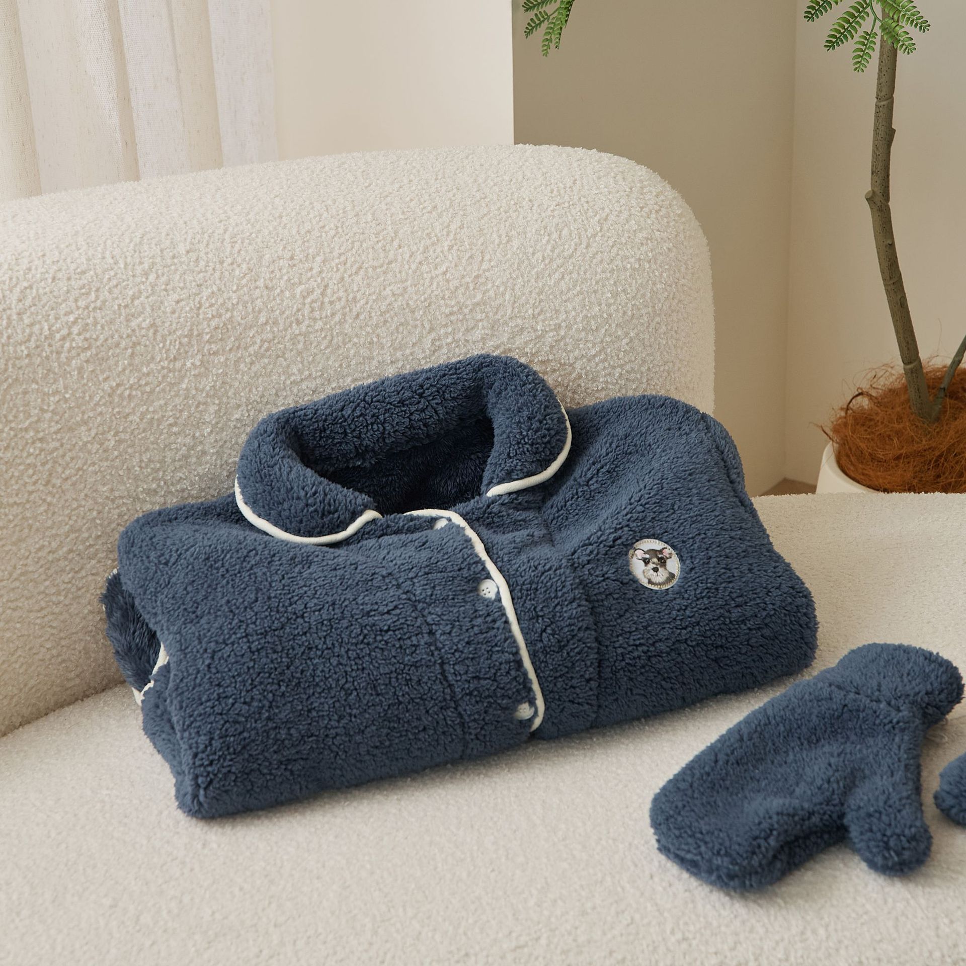 配手套加厚保暖珊瑚绒睡衣女款秋冬一男一女家居服可外穿冬三件套