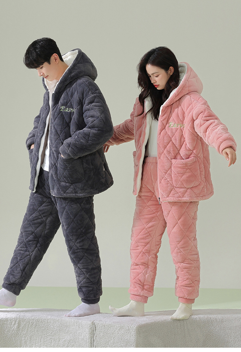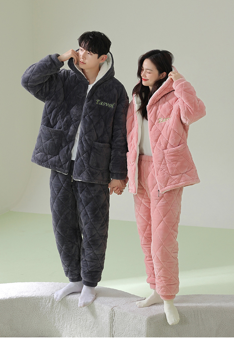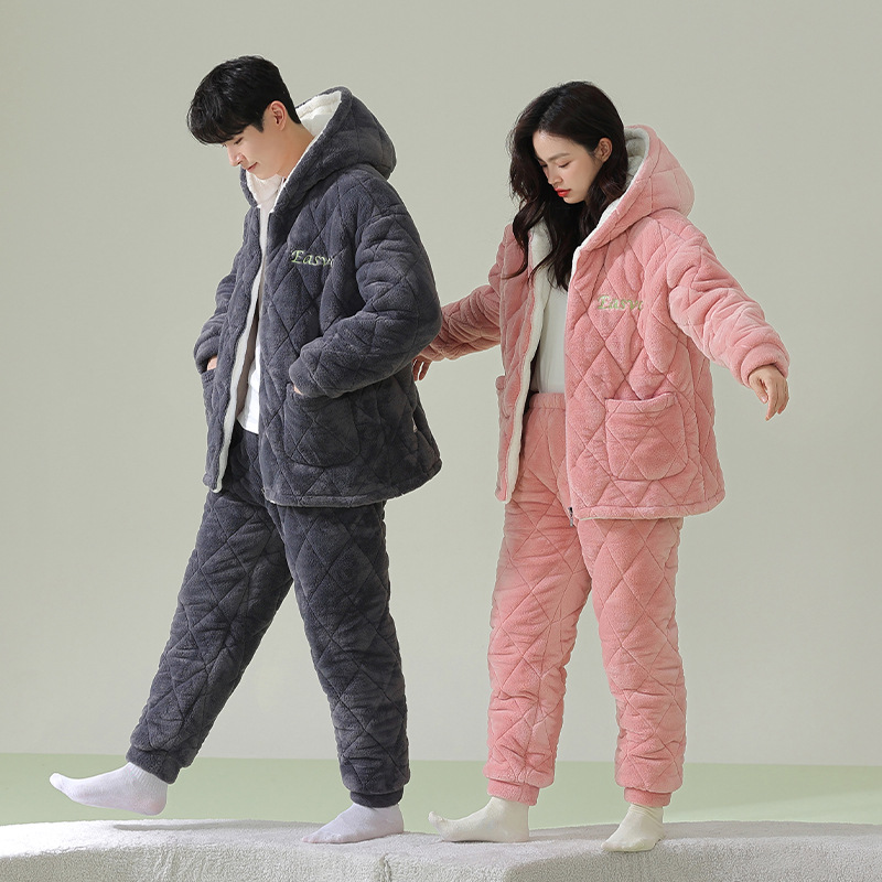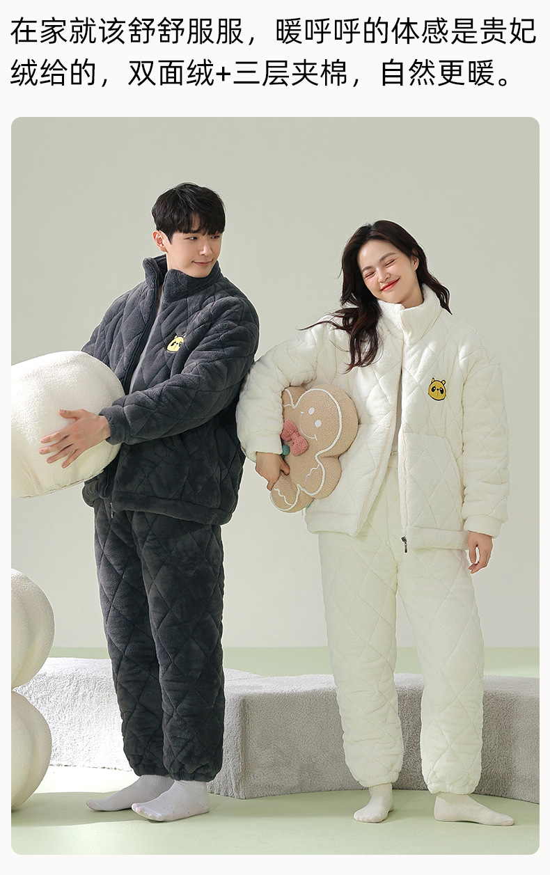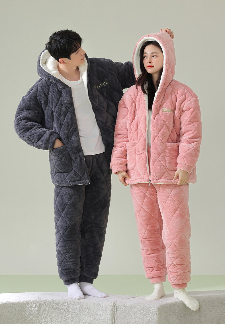 【夹棉暖衣】情侣睡衣冬季夹棉加厚珊瑚绒保暖男女士绒棉衣家居服