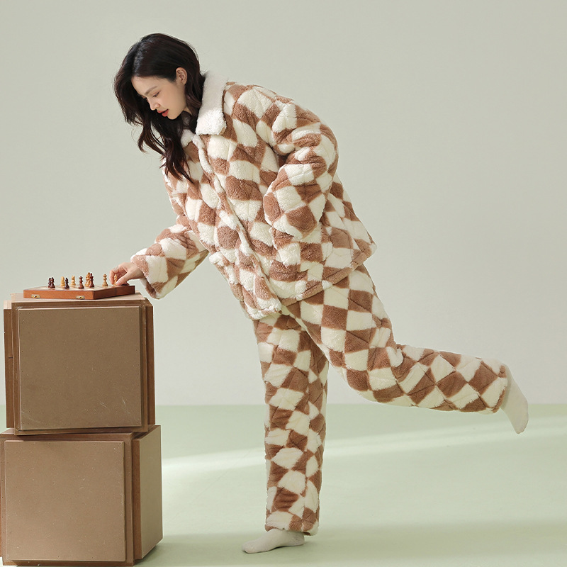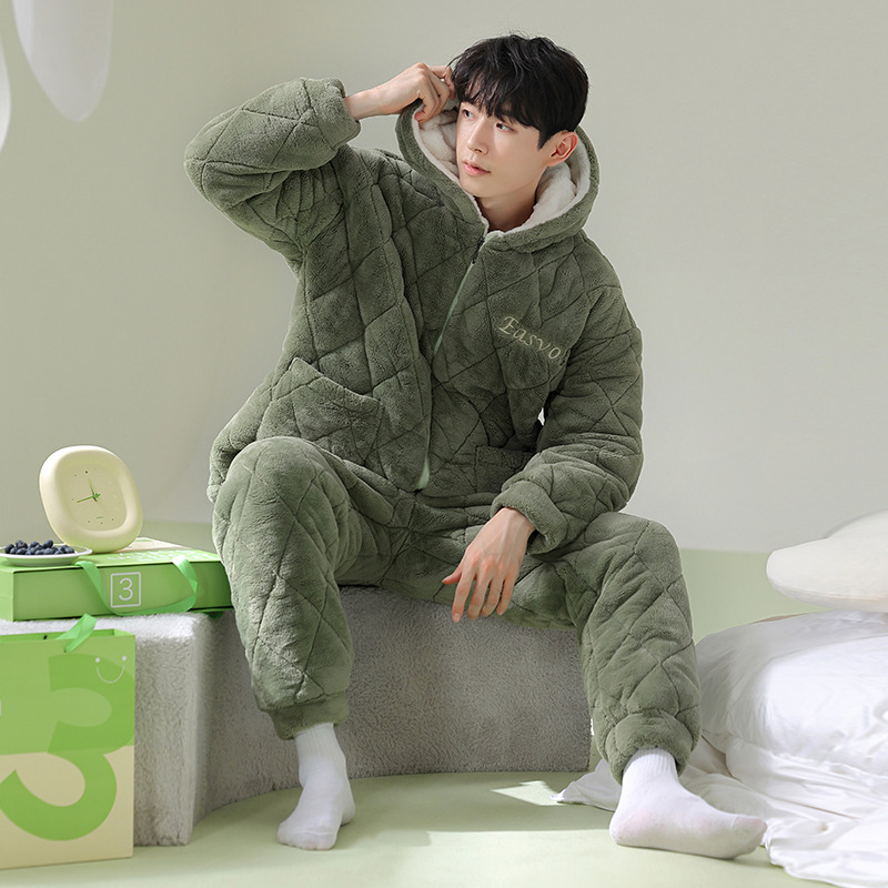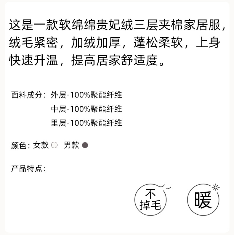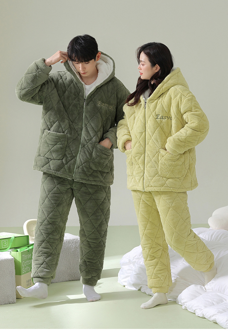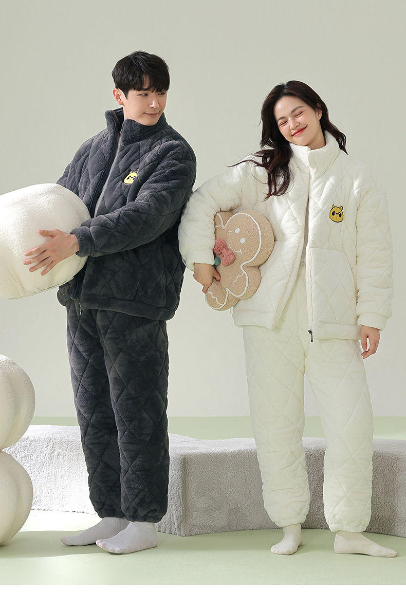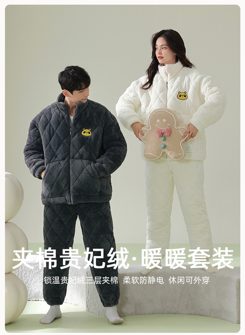 【夹棉暖衣】情侣睡衣冬季夹棉加厚珊瑚绒保暖男女士绒棉衣家居服