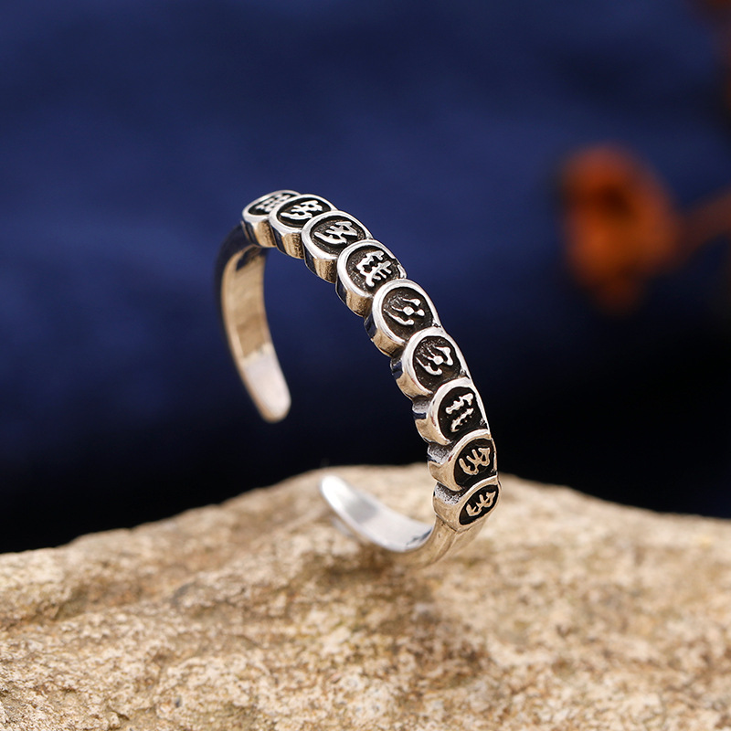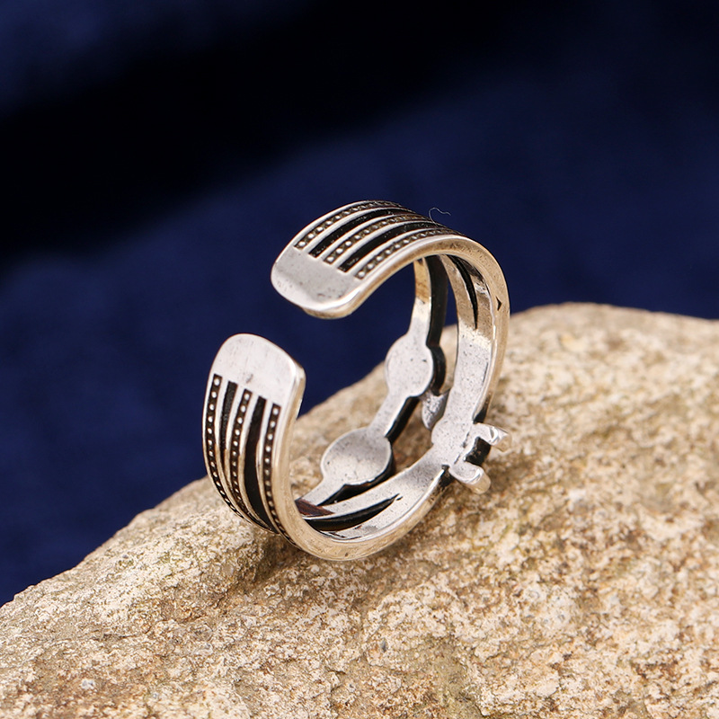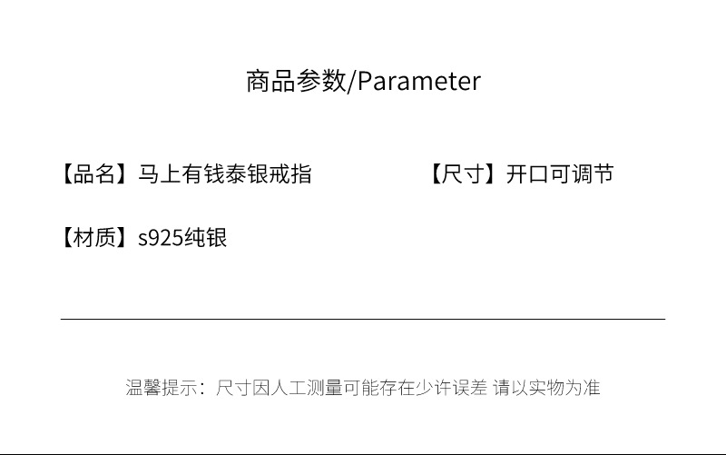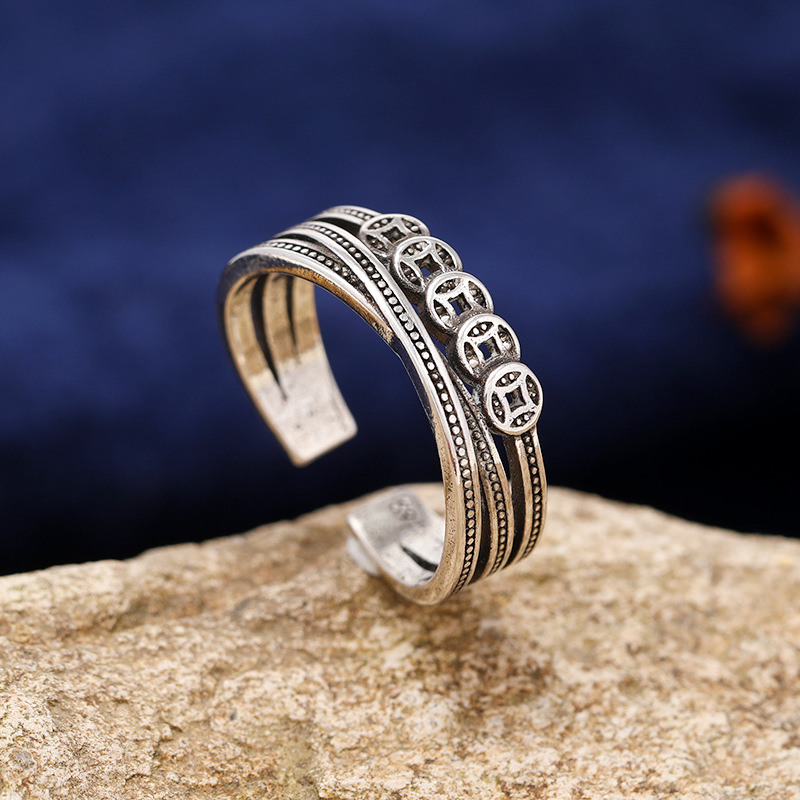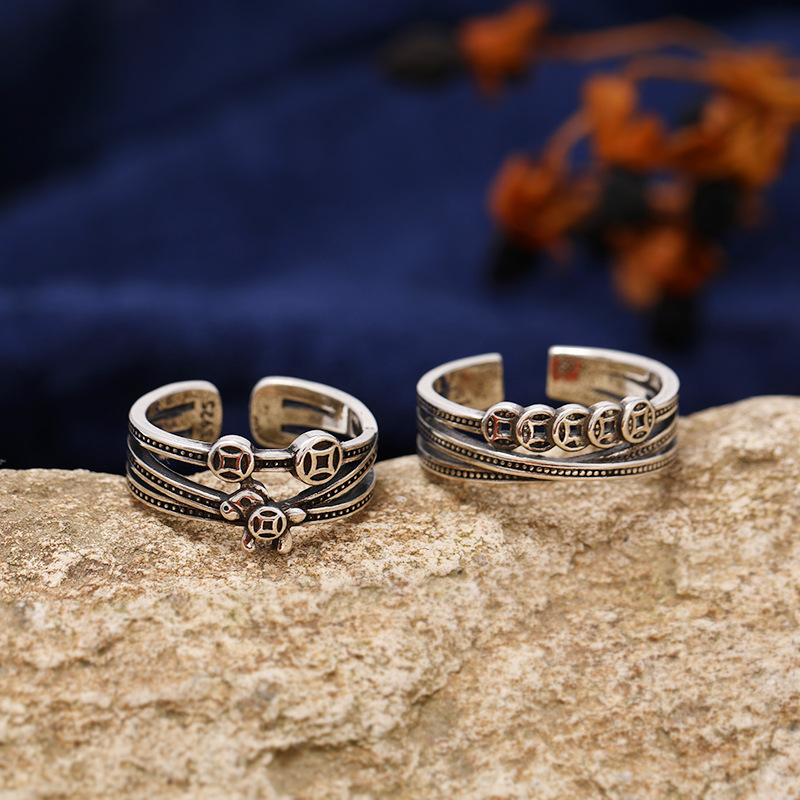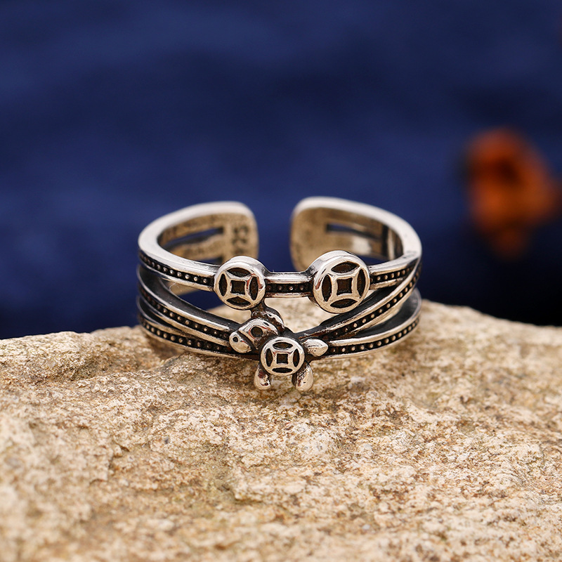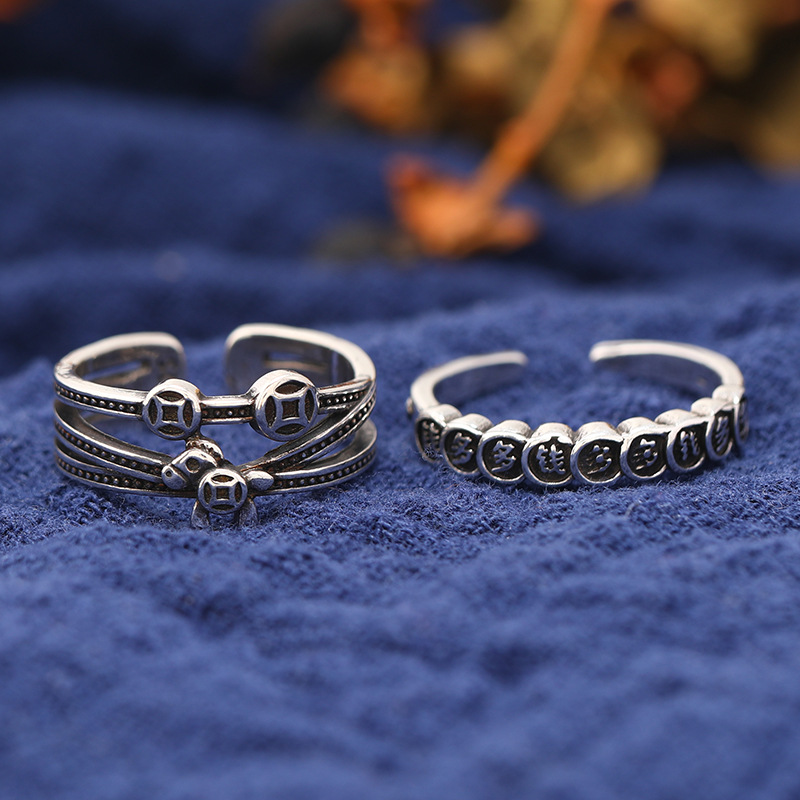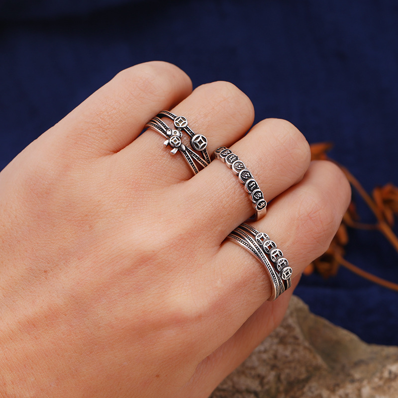 马上有钱花复古中式戒指男女小众设计泰银做旧开口简约叠戴指环