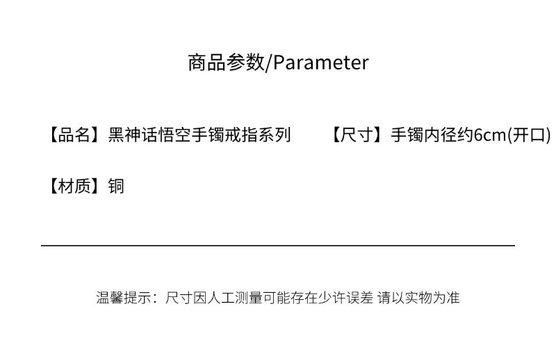 黑神话悟空如意金箍棒手镯齐天大圣紧箍咒手环男女戒指复古配饰品