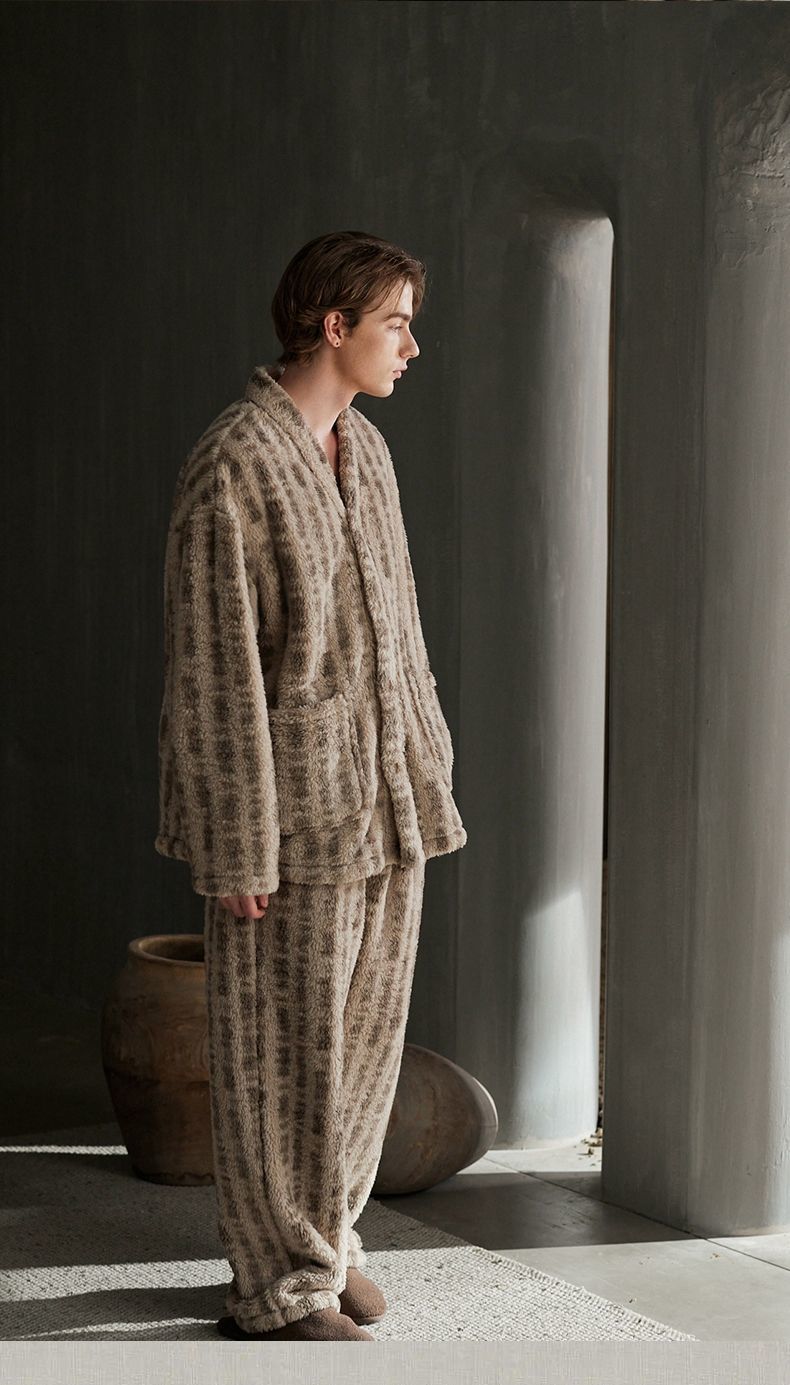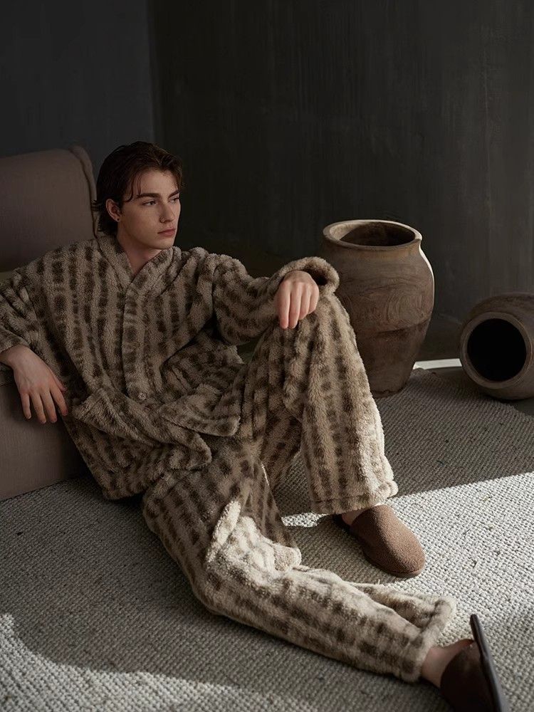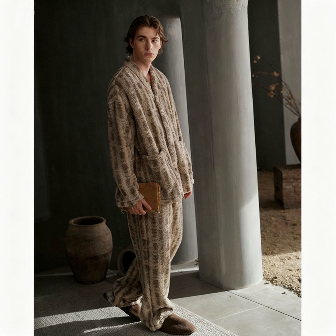 睡衣男款秋冬季珊瑚绒加厚长袖套装冬季加绒法兰绒男士冬天家居服