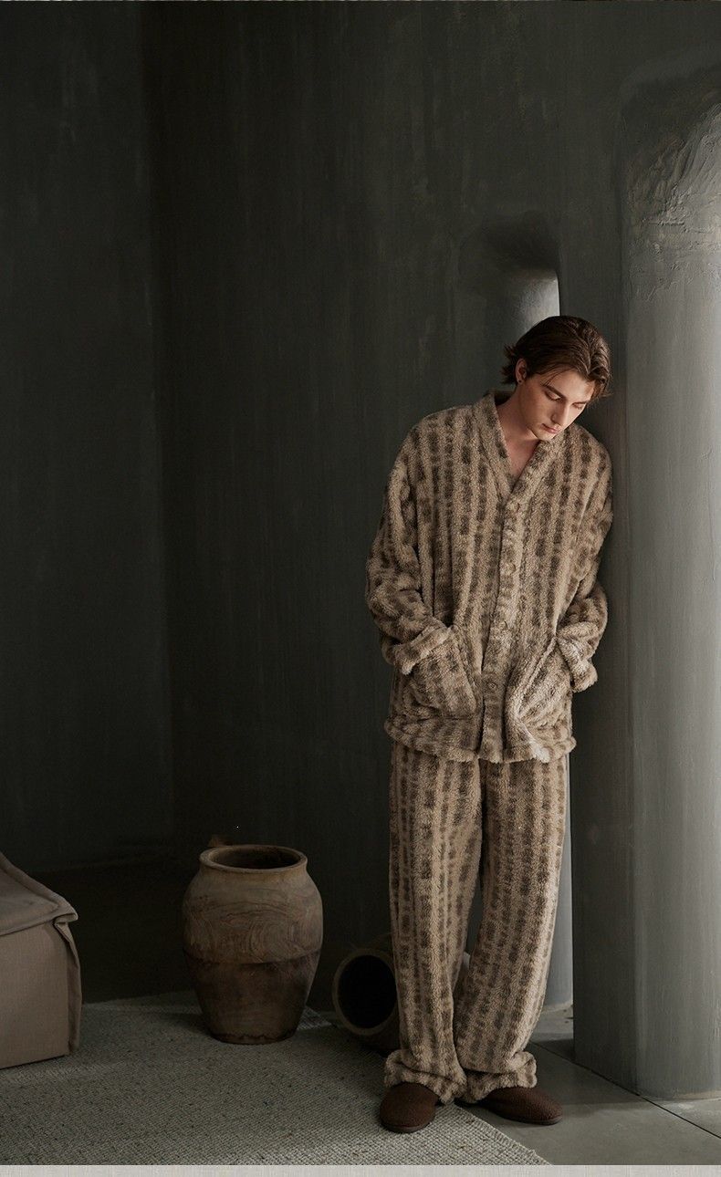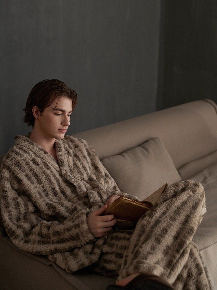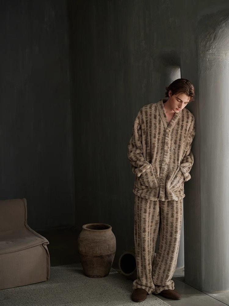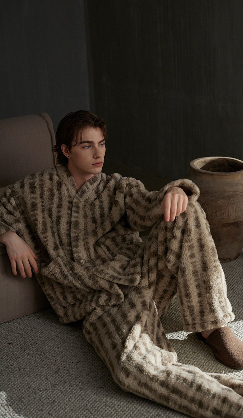 睡衣男款秋冬季珊瑚绒加厚长袖套装冬季加绒法兰绒男士冬天家居服