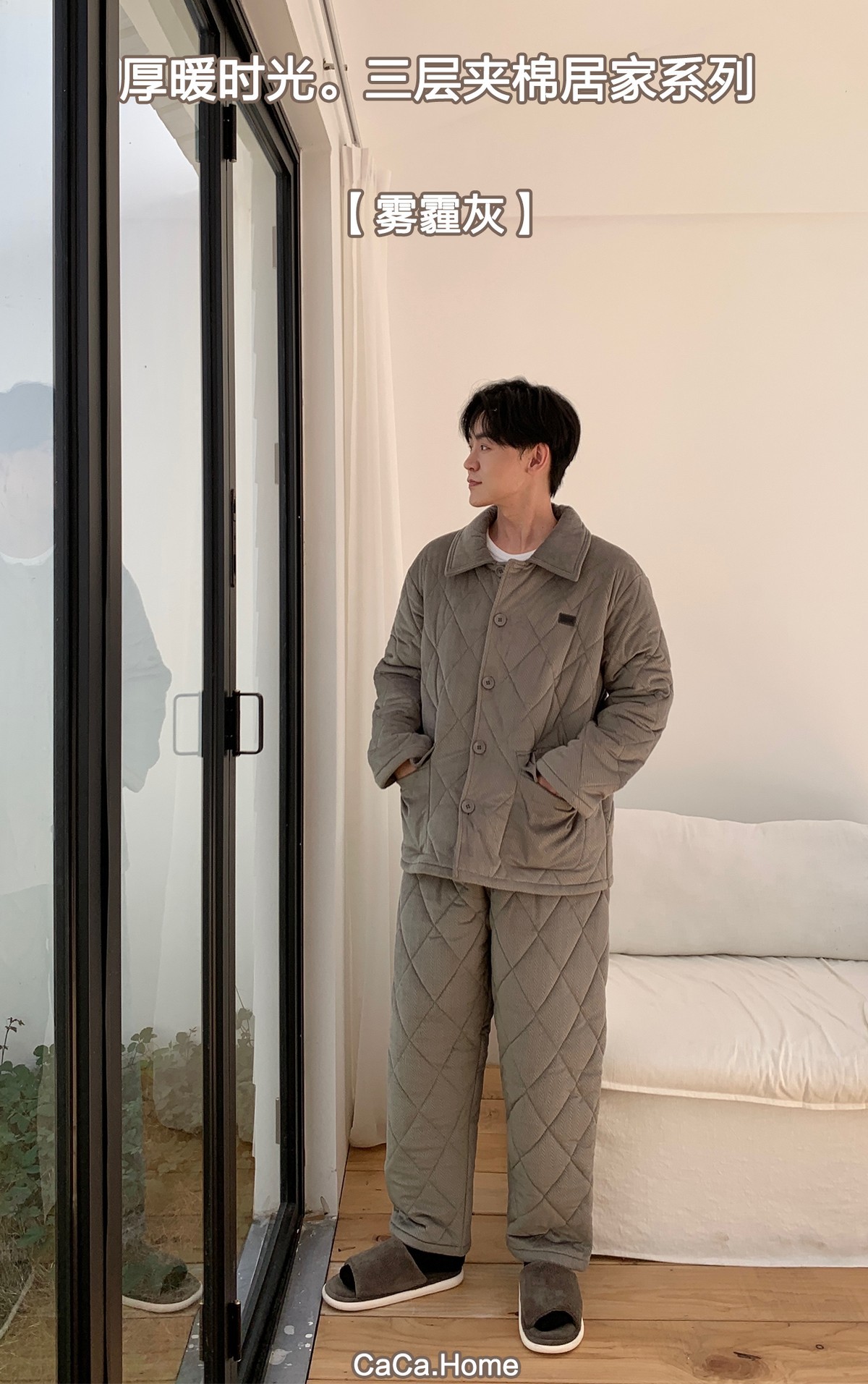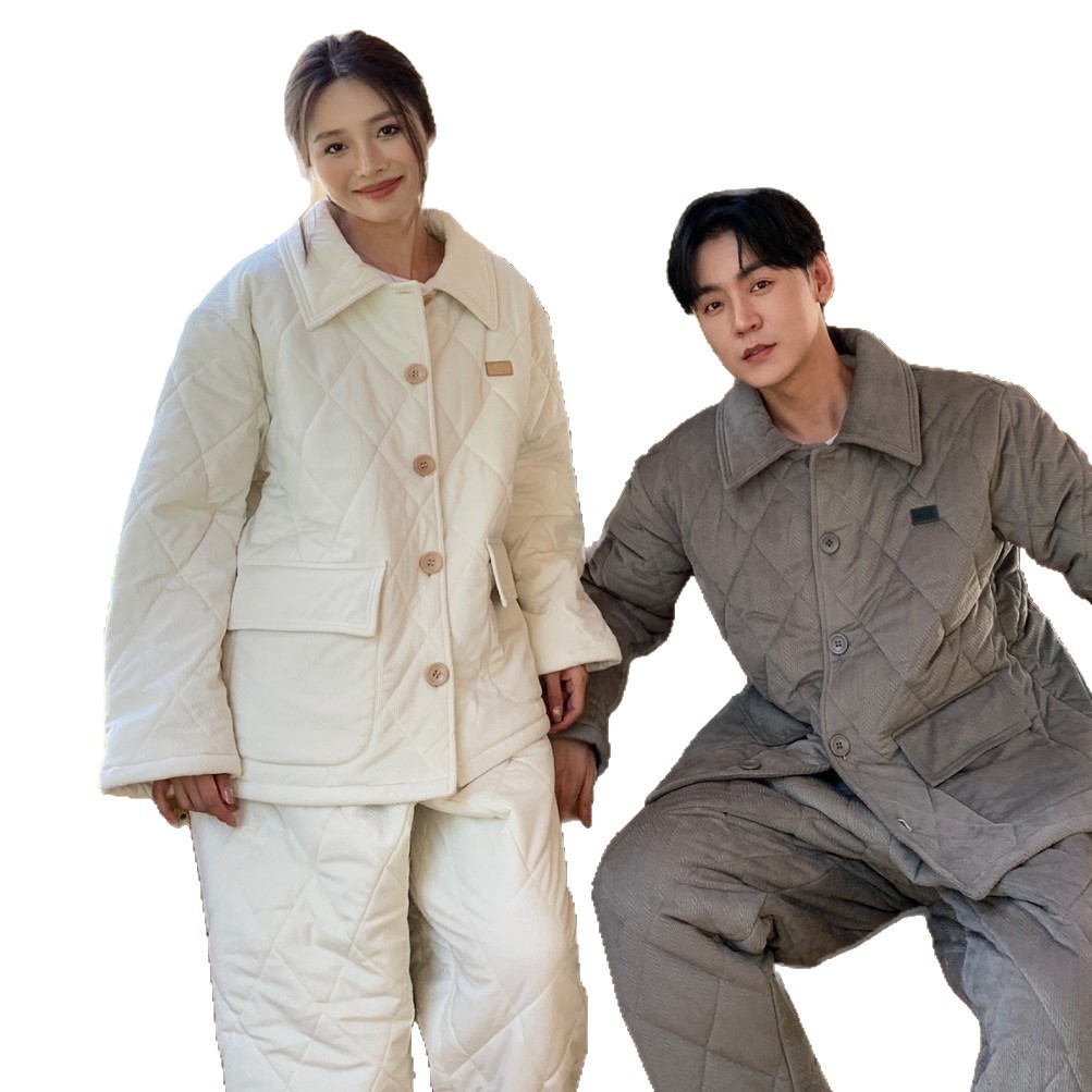 冬季情侣三层夹棉棉袄加厚保暖简约轻奢可外穿男女家居服冬两件套