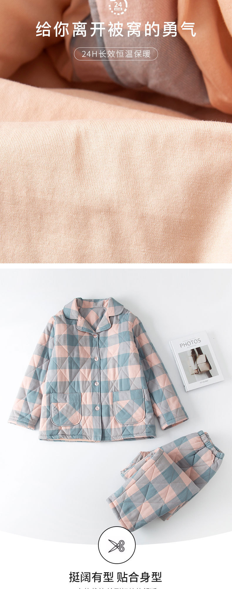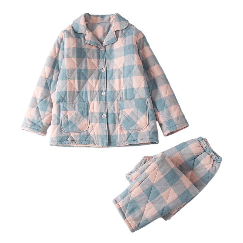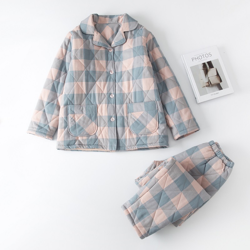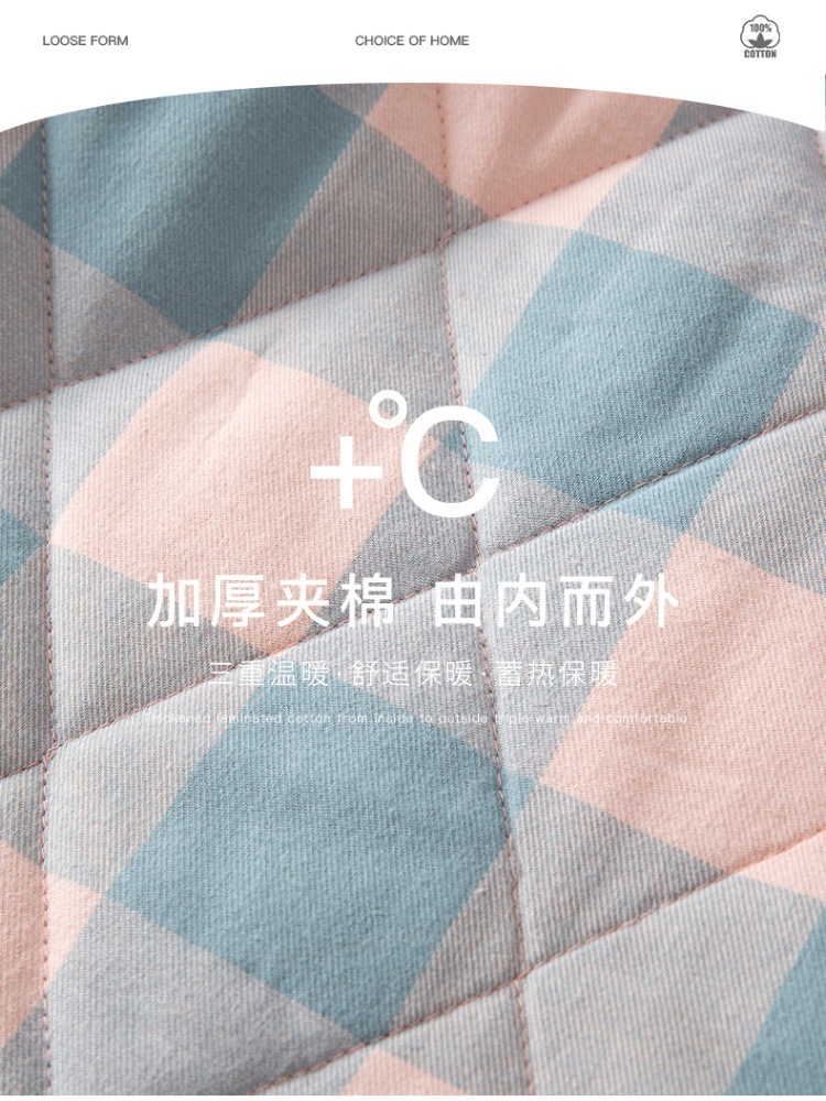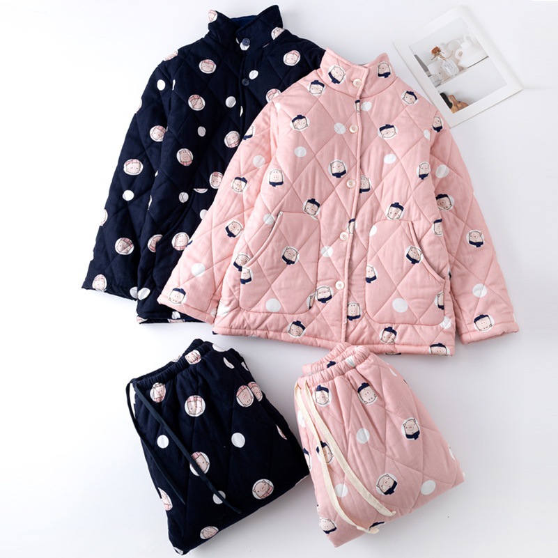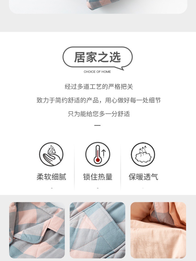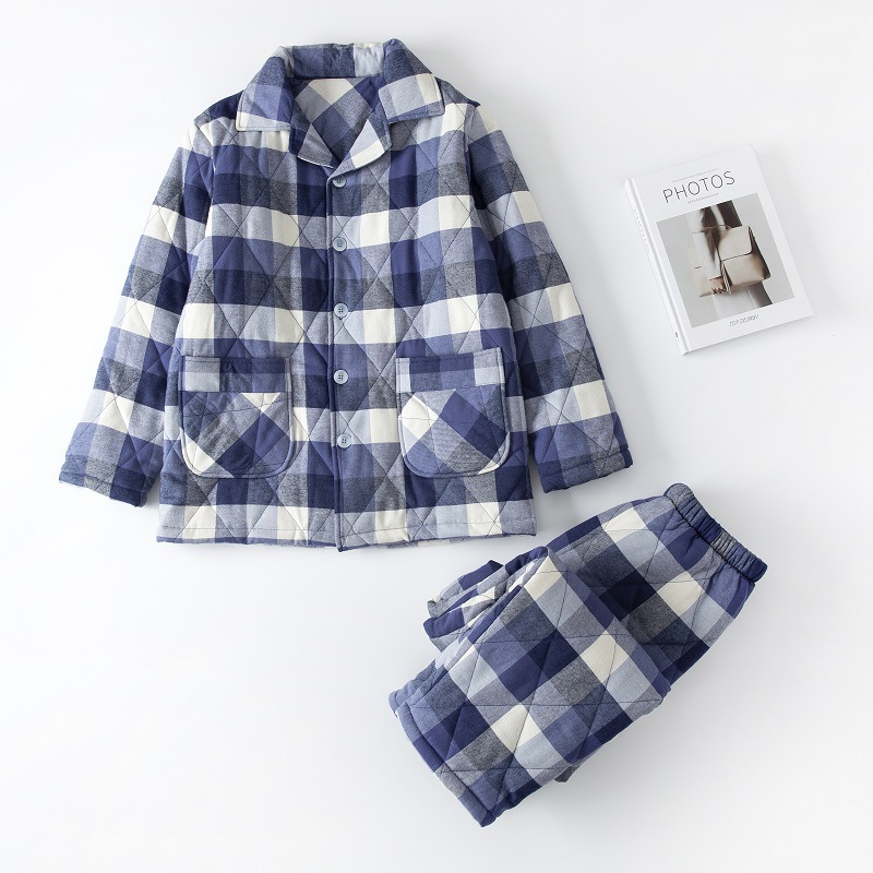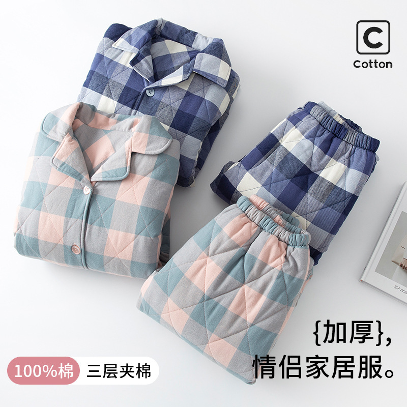 三层夹棉muji睡衣秋冬季无印全棉加厚情侣男女纯棉保暖家居服套装