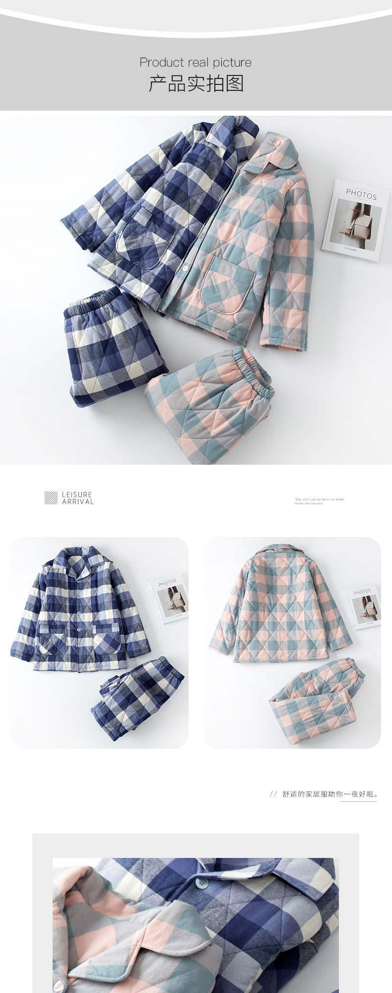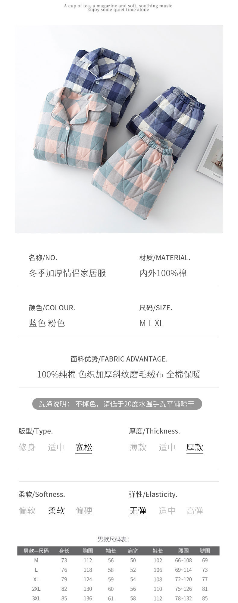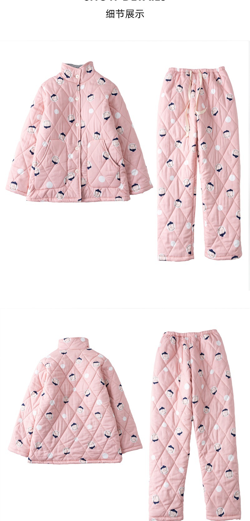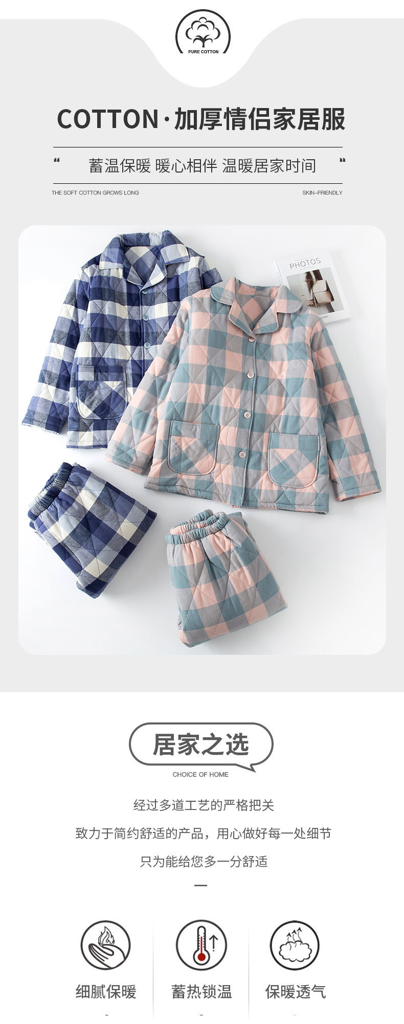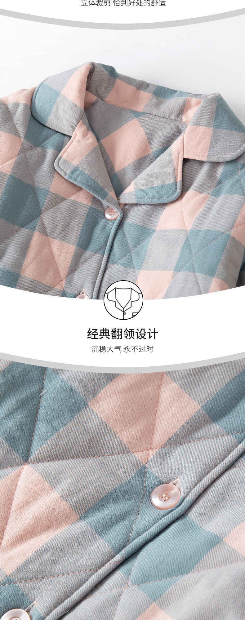 三层夹棉muji睡衣秋冬季无印全棉加厚情侣男女纯棉保暖家居服套装