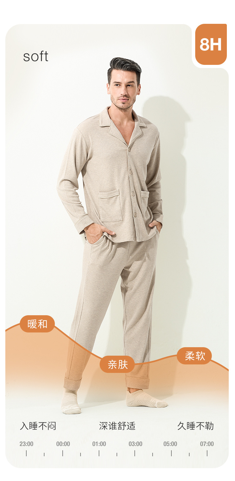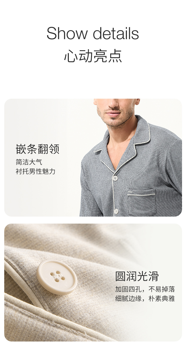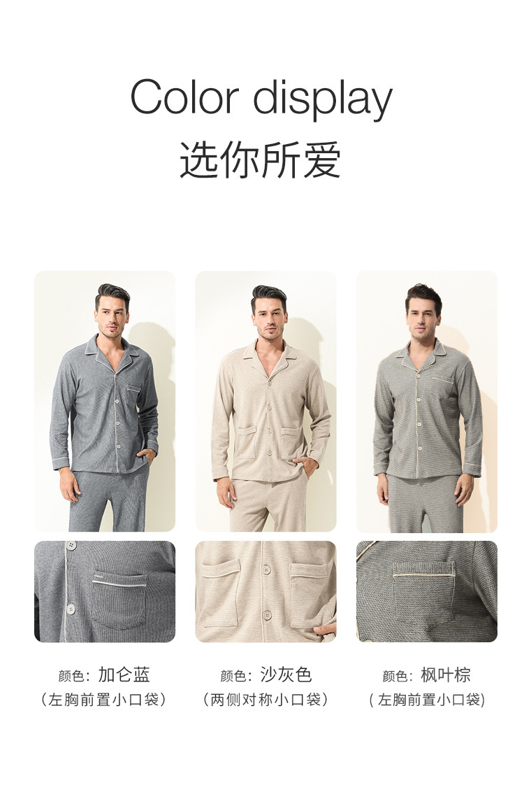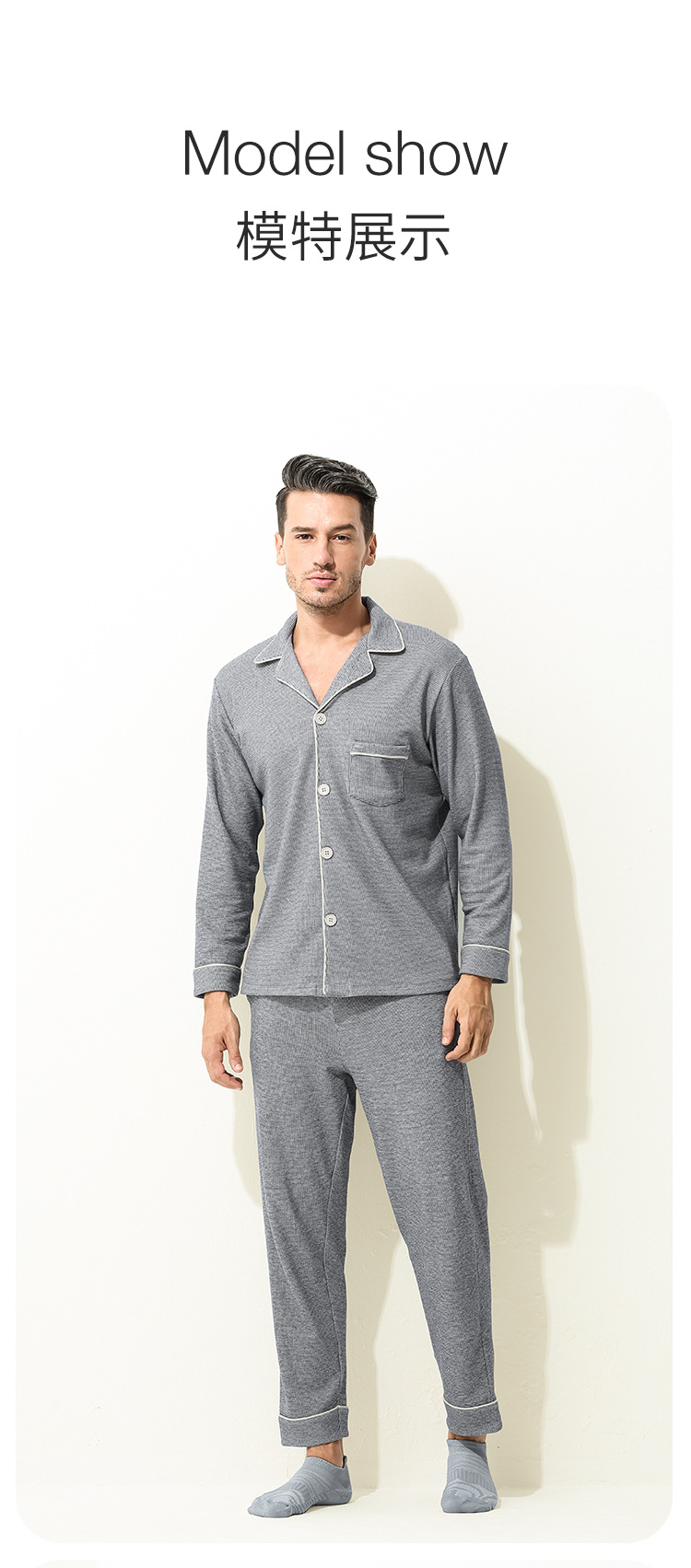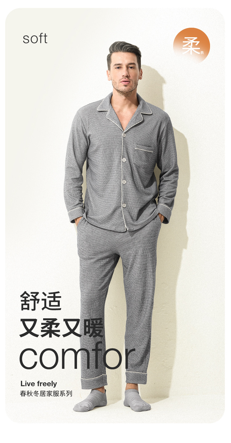 新款美雅碧提花格秋冬季男士睡衣套装加绒加厚蓄热可外穿家居服