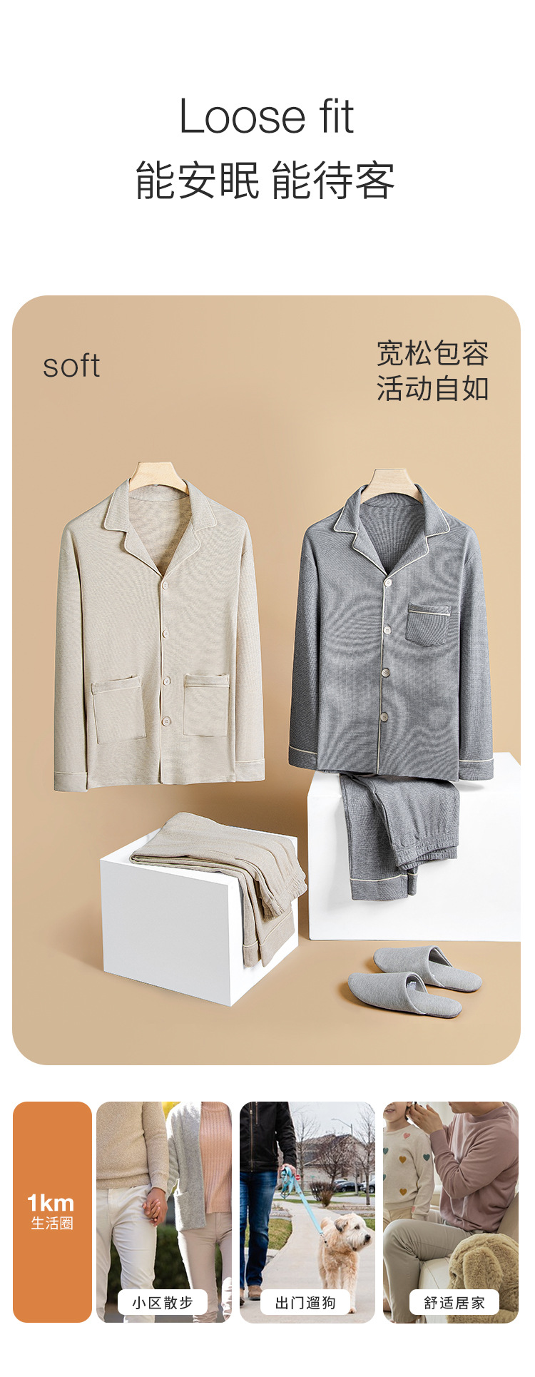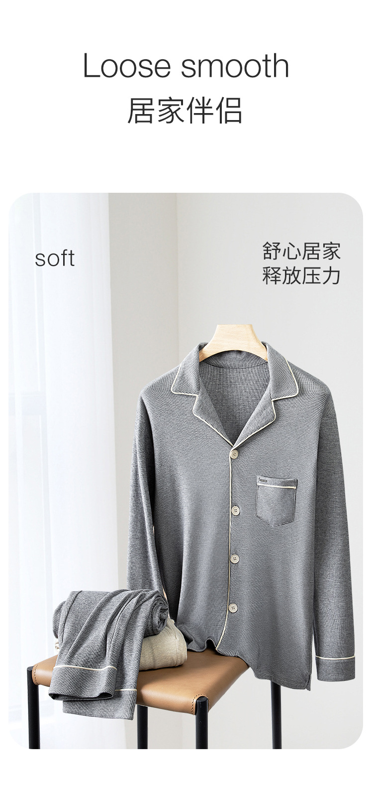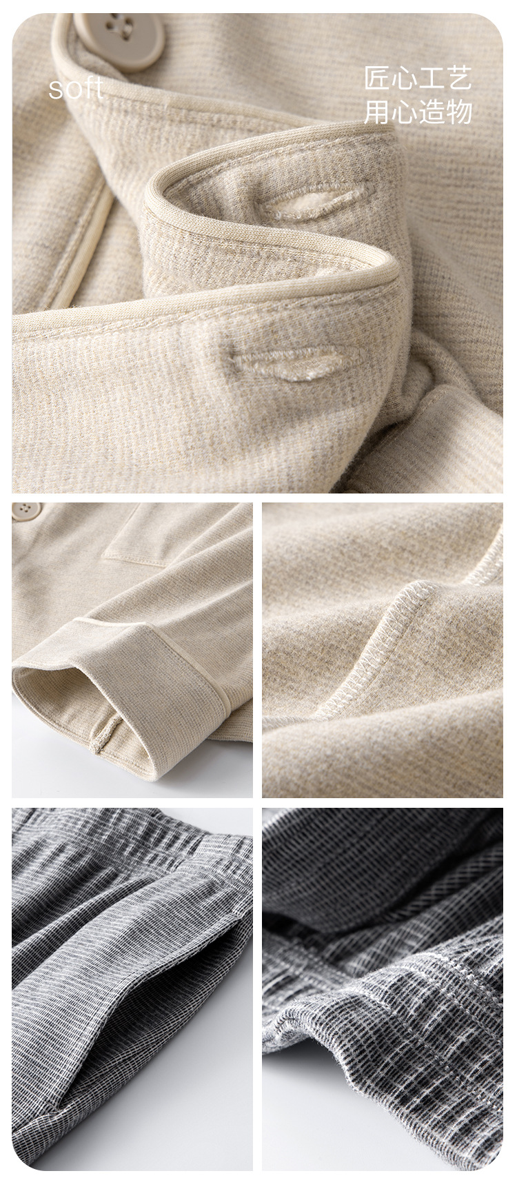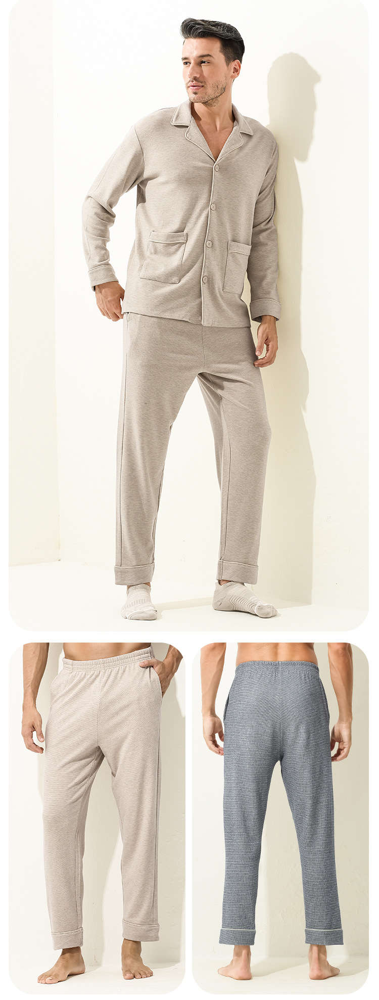 新款美雅碧提花格秋冬季男士睡衣套装加绒加厚蓄热可外穿家居服