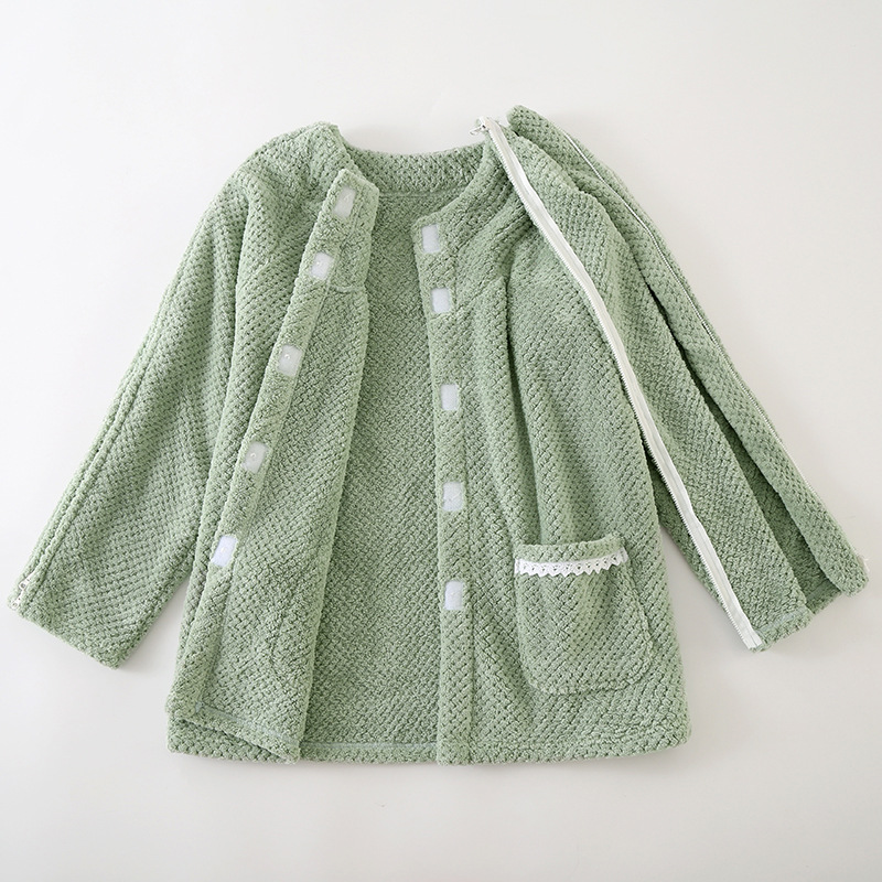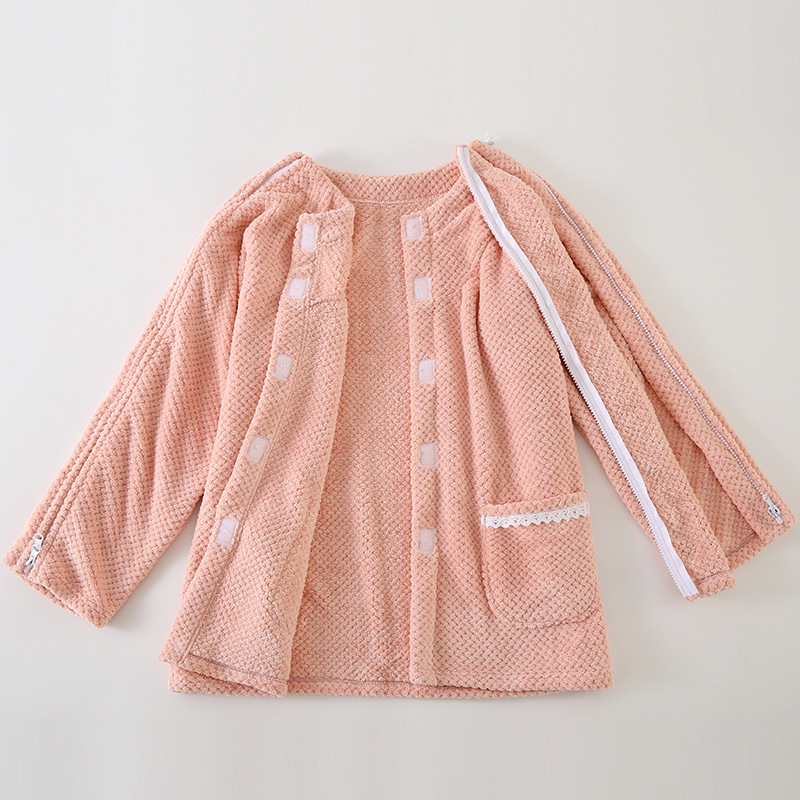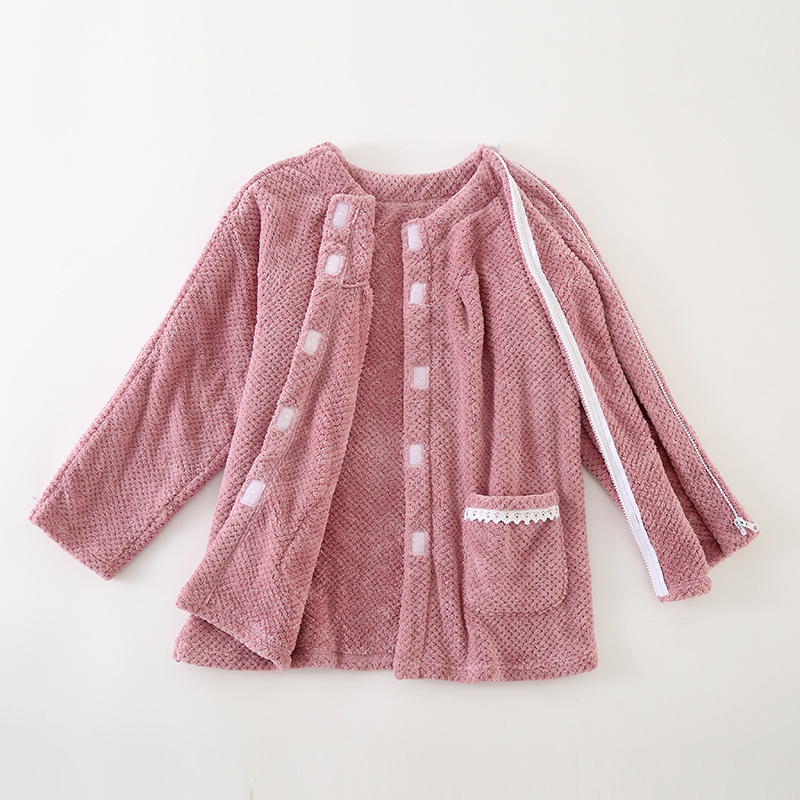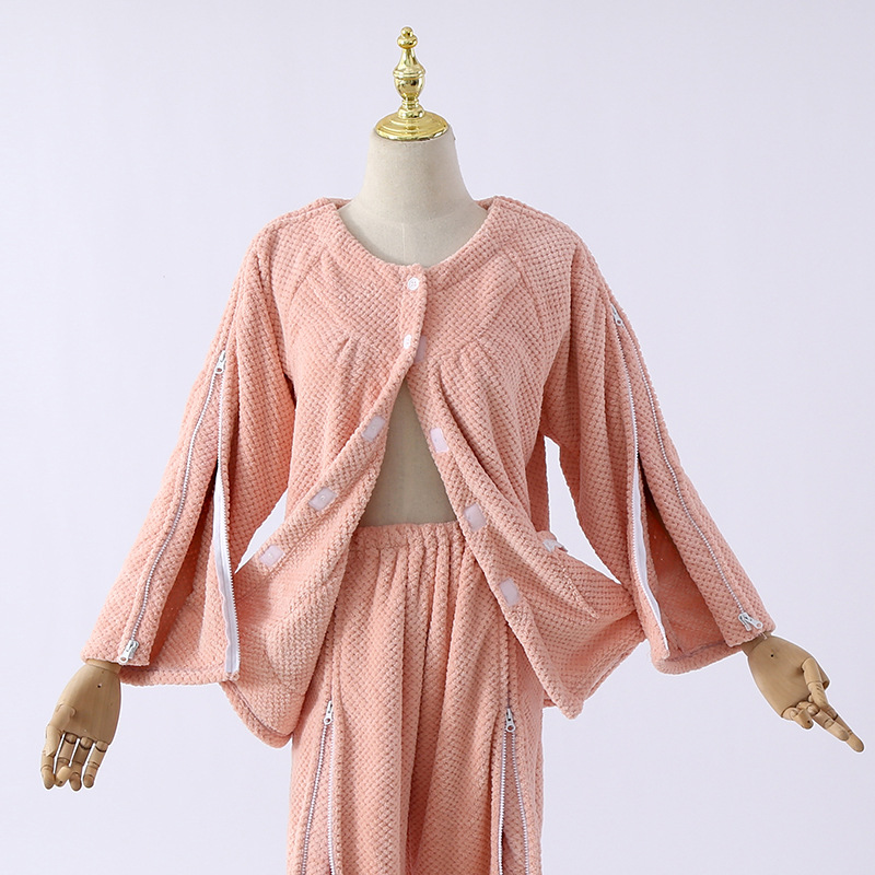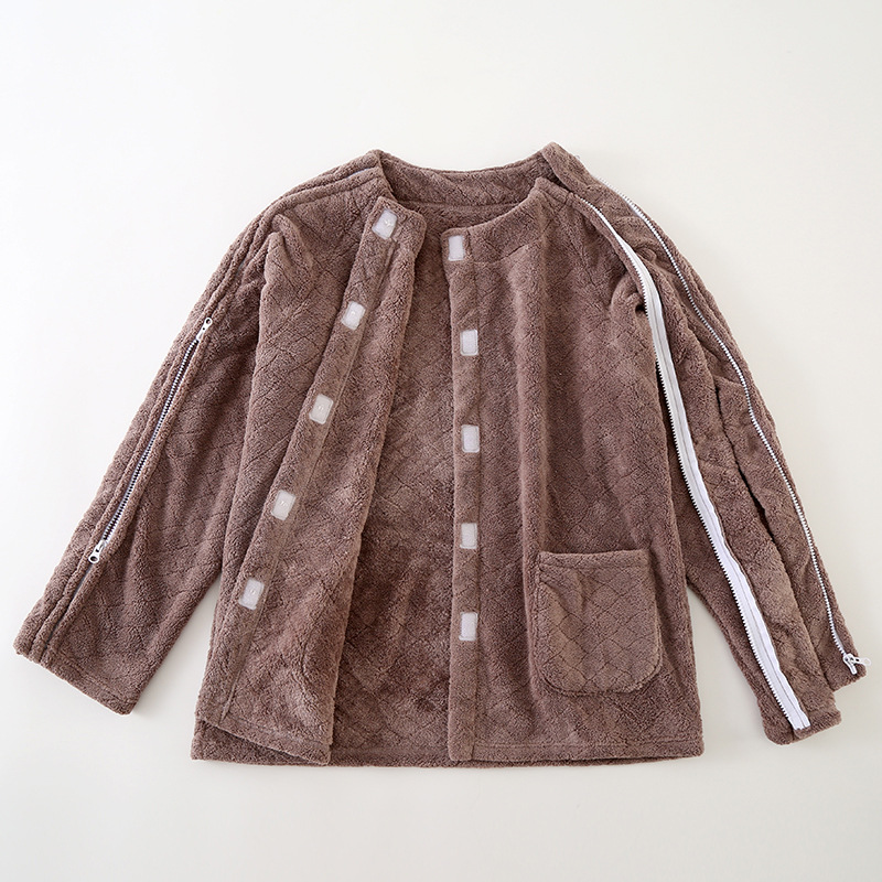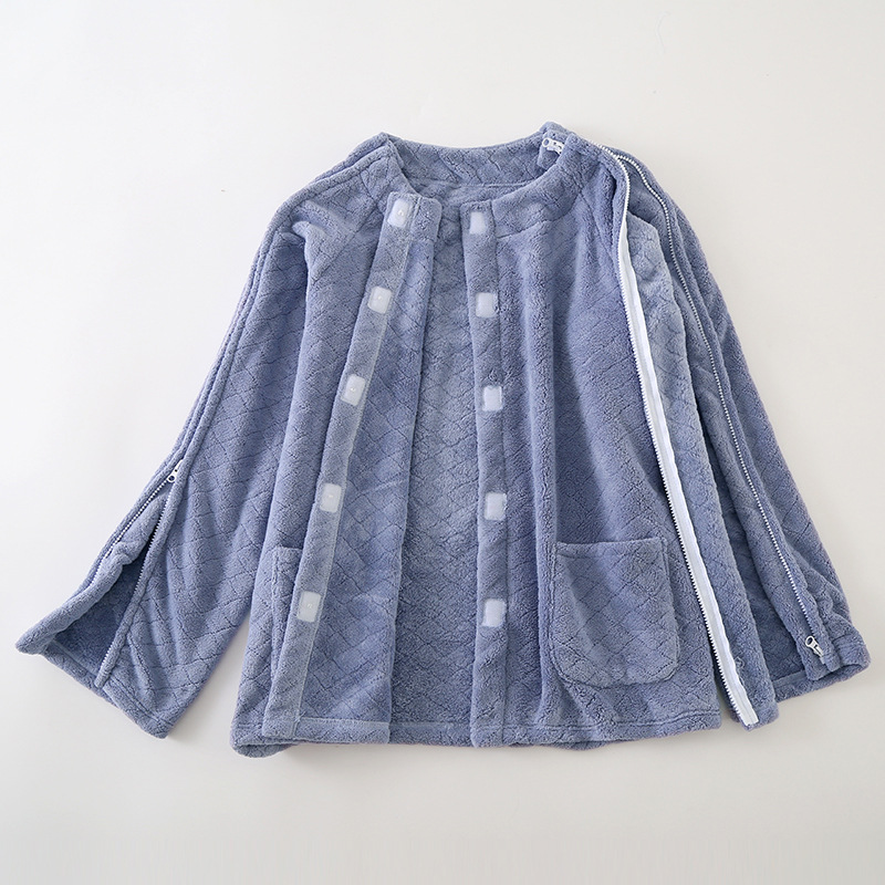 男女成人易穿脱睡衣病号珊瑚绒一片式家居服开衫透气护理服骨折穿