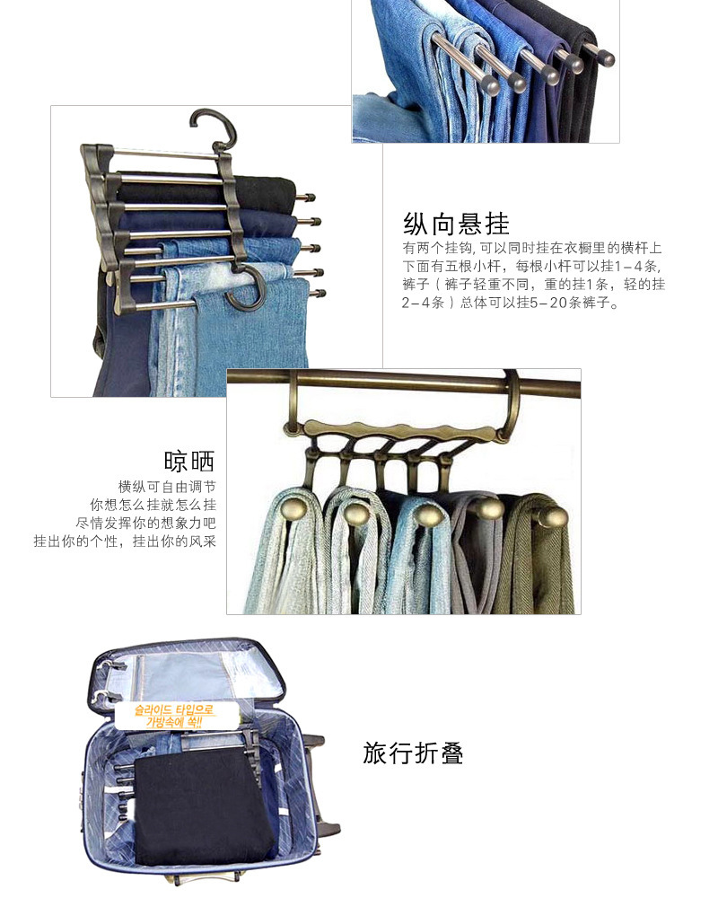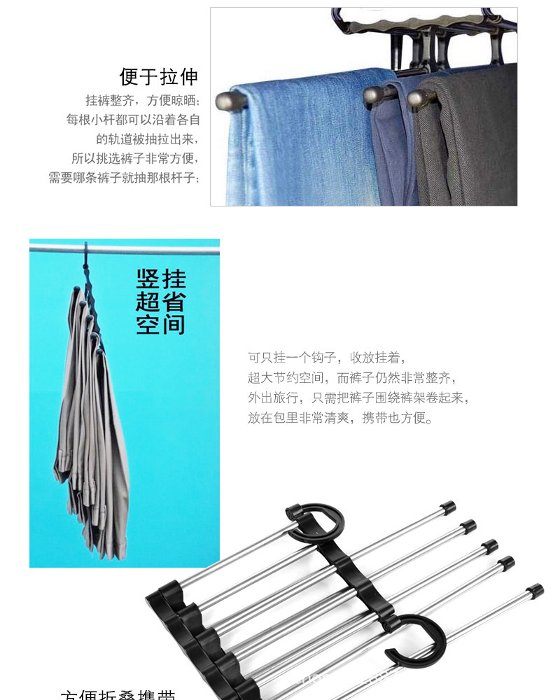 多功能五合一裤架 魔术裤架不锈钢晾裤架 挂架衣架