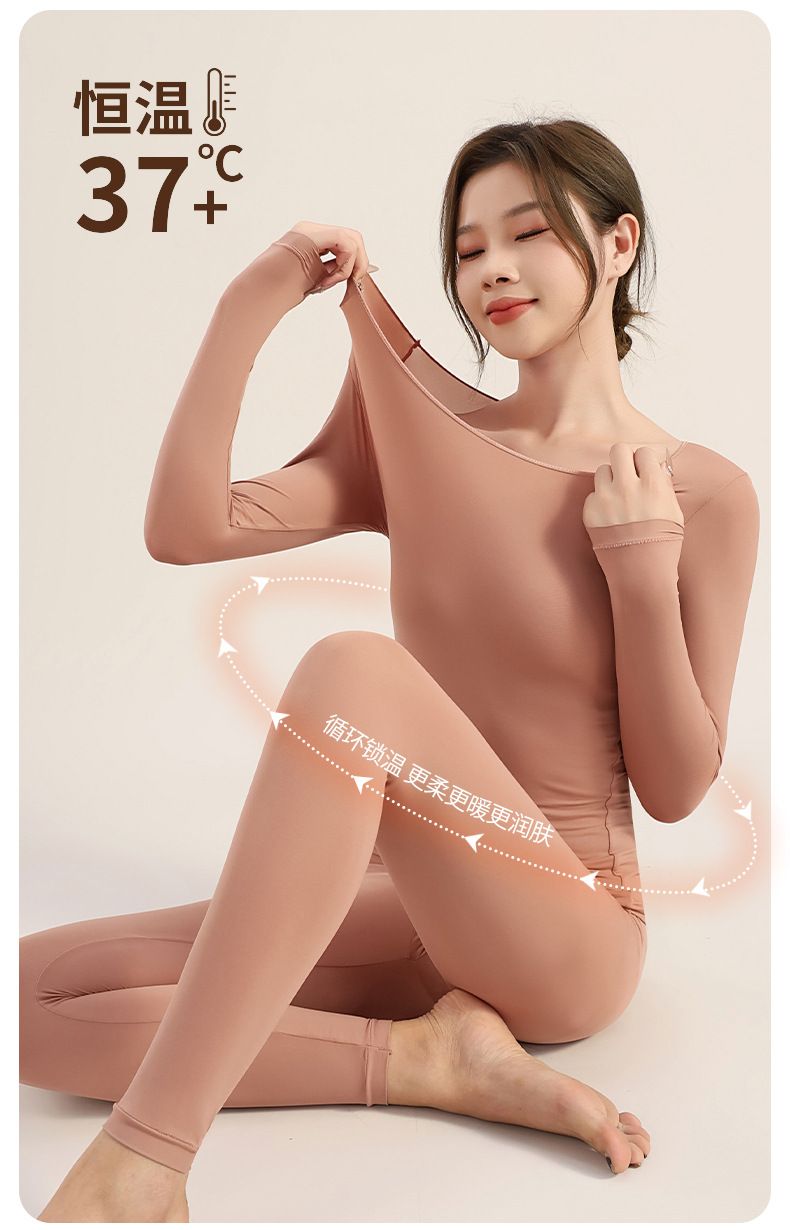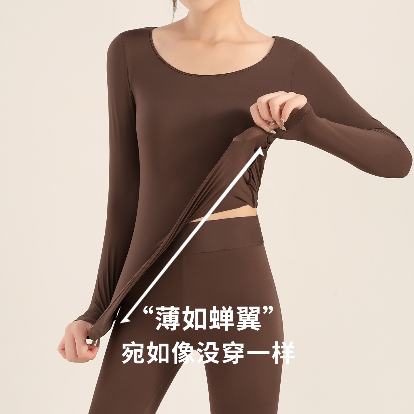 37度超薄发热保暖内衣女士秋衣秋裤套装肌底美肤衣打底衫面膜冬季