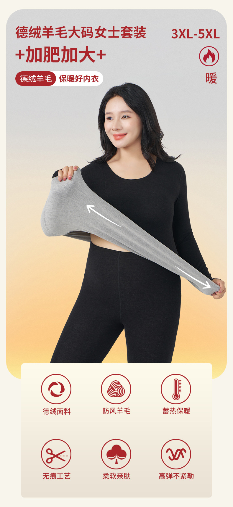 秋冬新款大码德绒羊毛保暖内衣套装女士加大加肥200斤秋衣秋裤女