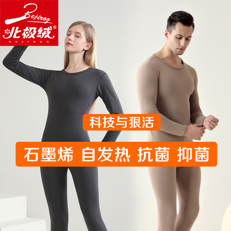 北极绒冬新款石墨烯保暖内衣套装男女ab面打底衫加厚羊绒秋衣秋裤