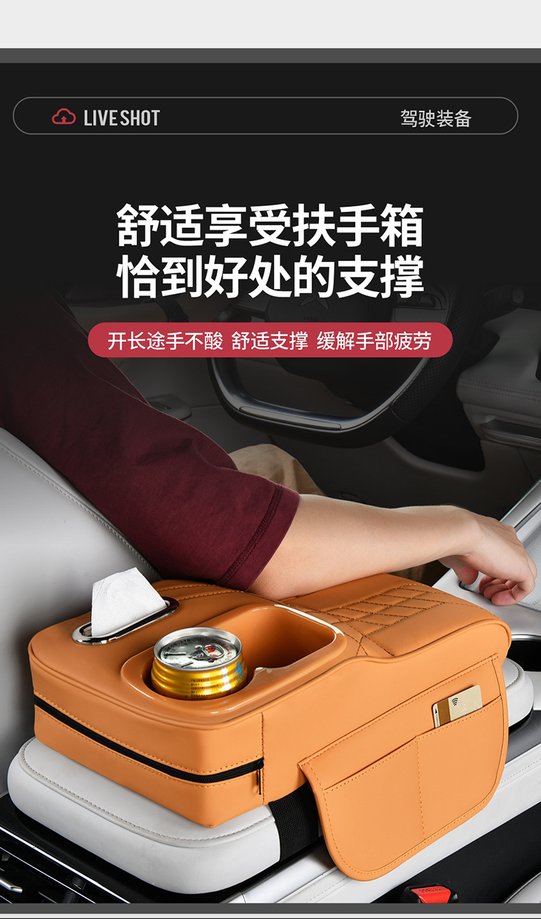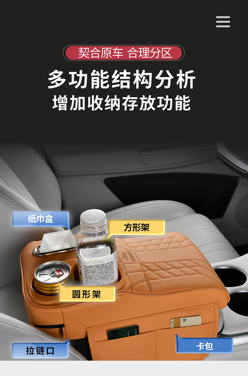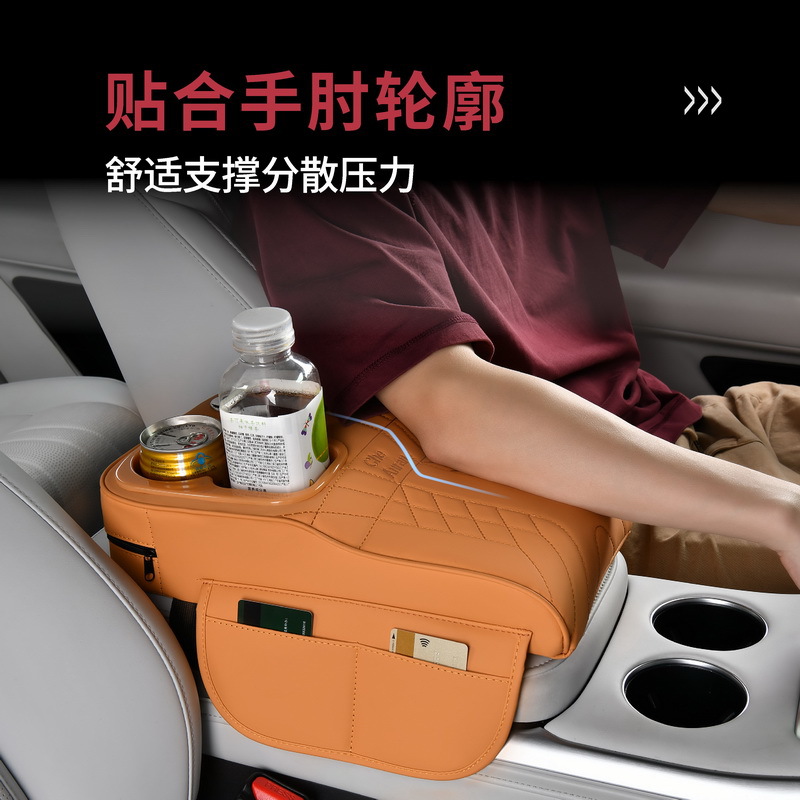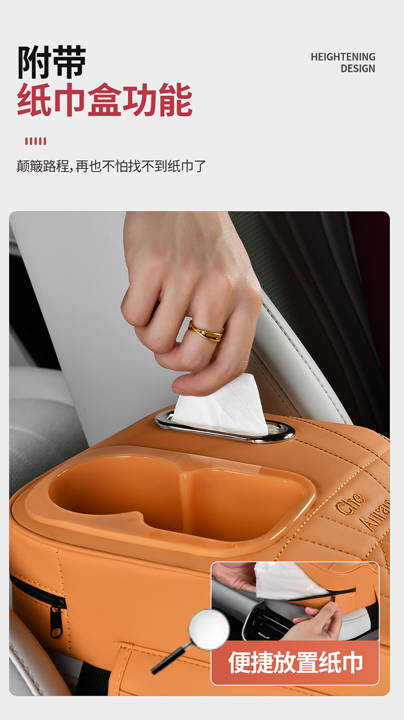汽车扶手箱增高垫座椅中间收纳储物车载多功能纸巾盒水杯架四合一