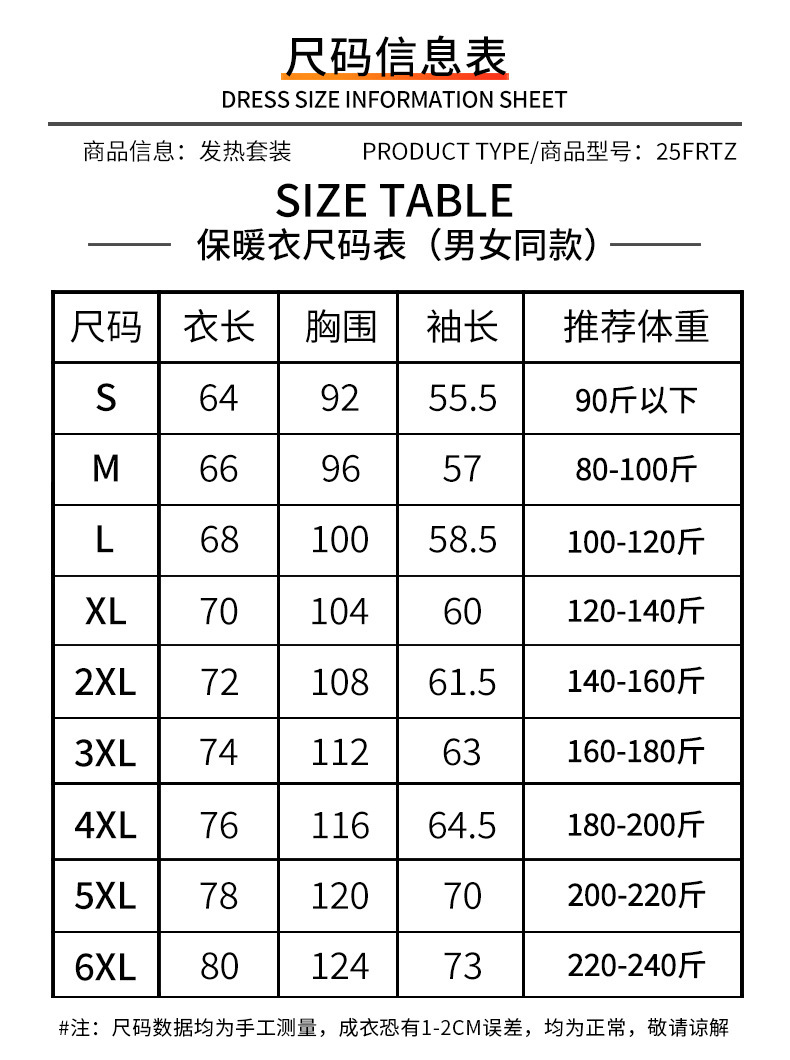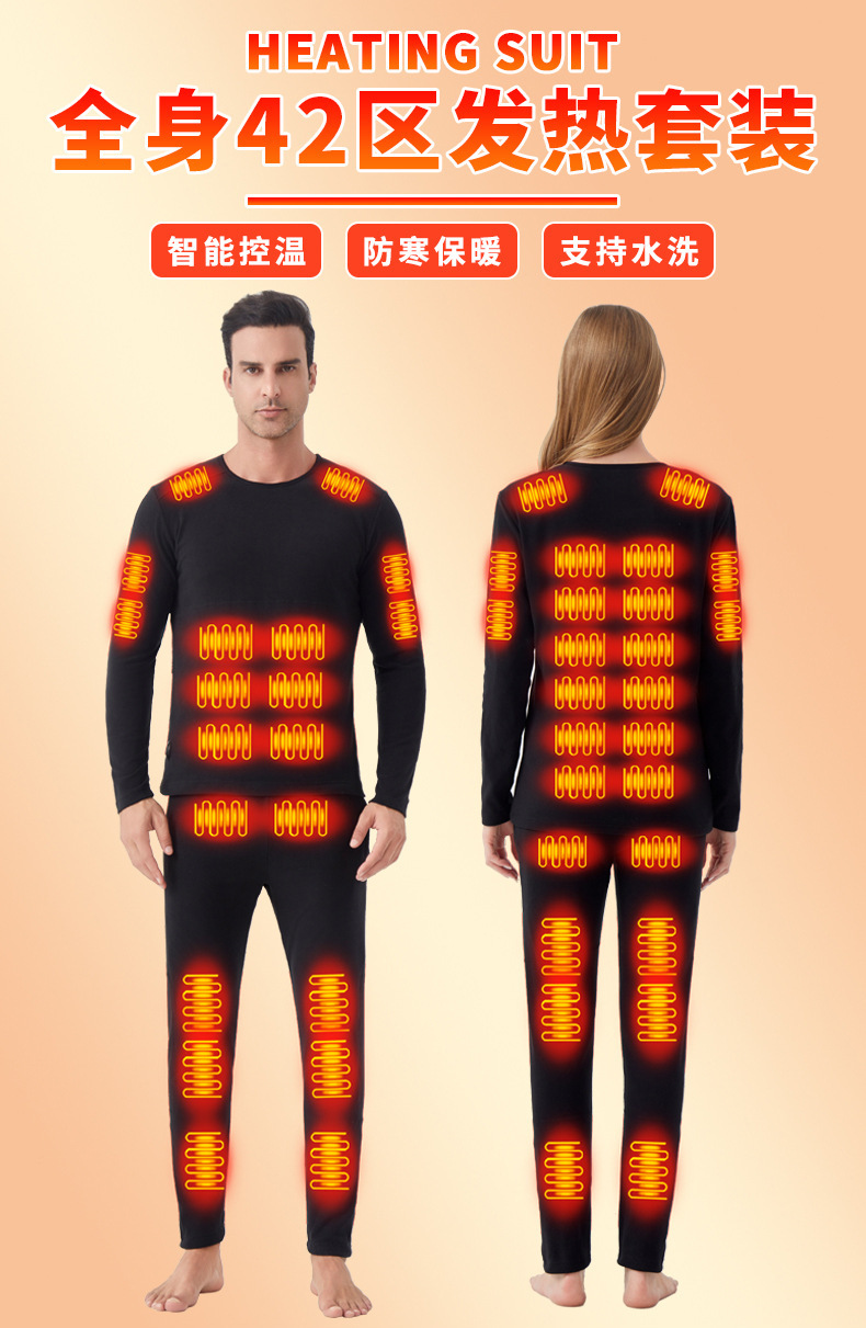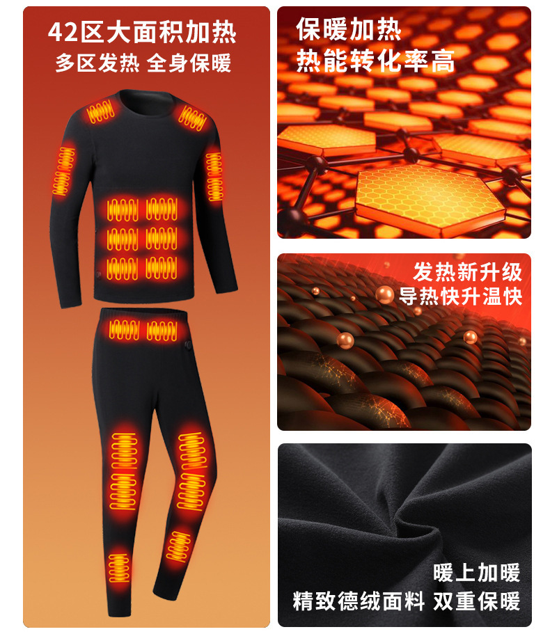 冬季42区发热保暖套装加厚加热内衣保暖裤男女大码内衣套装衣服