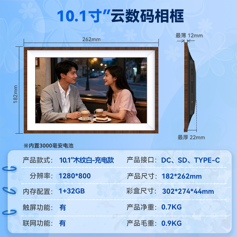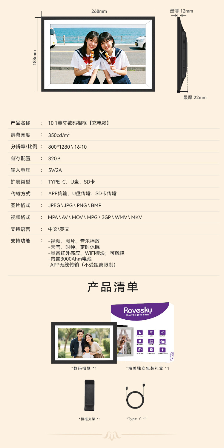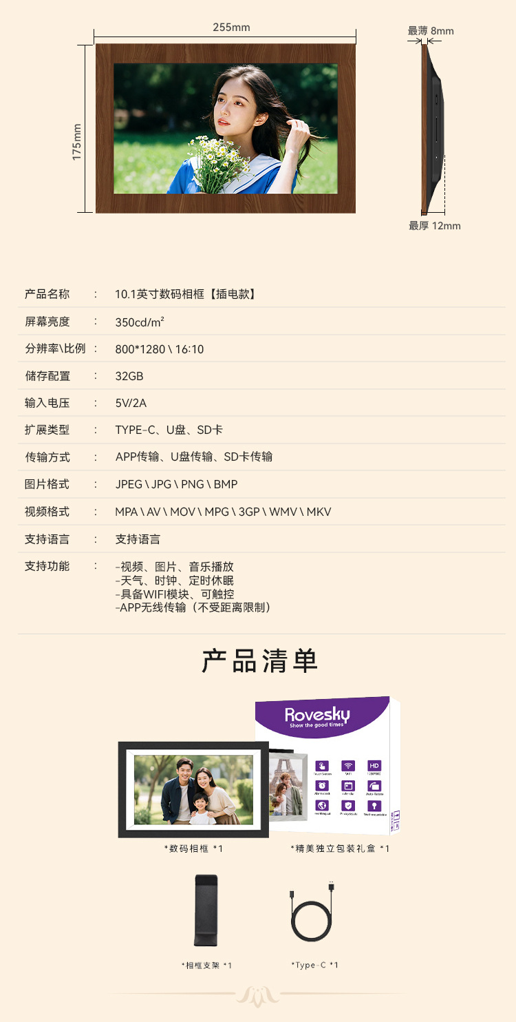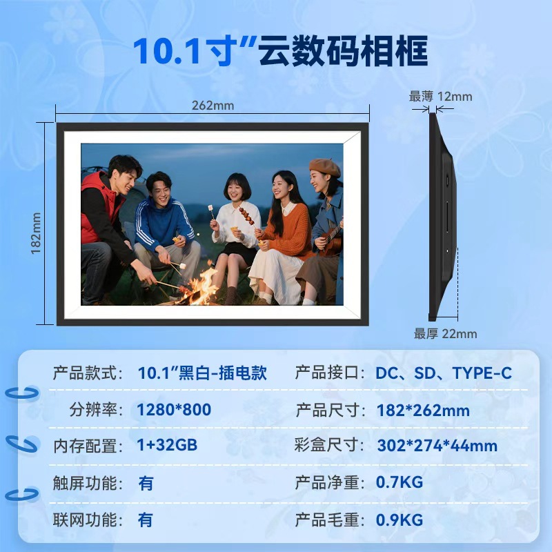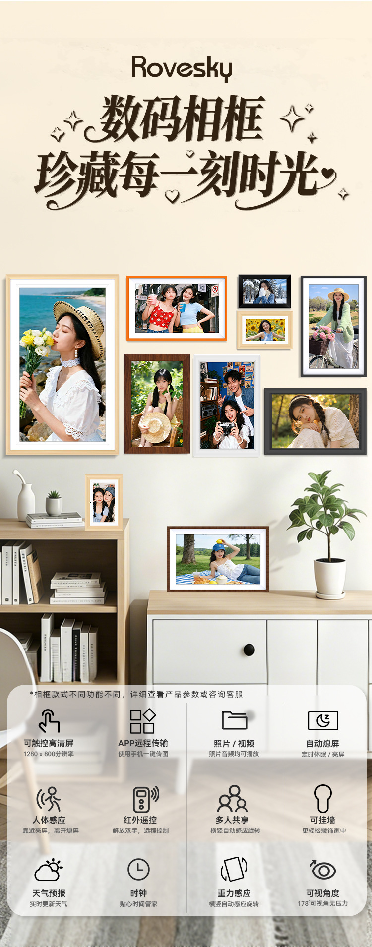相框 Rovesky充电款数码相框 10.1寸32G跨境高清电子相册智能相框