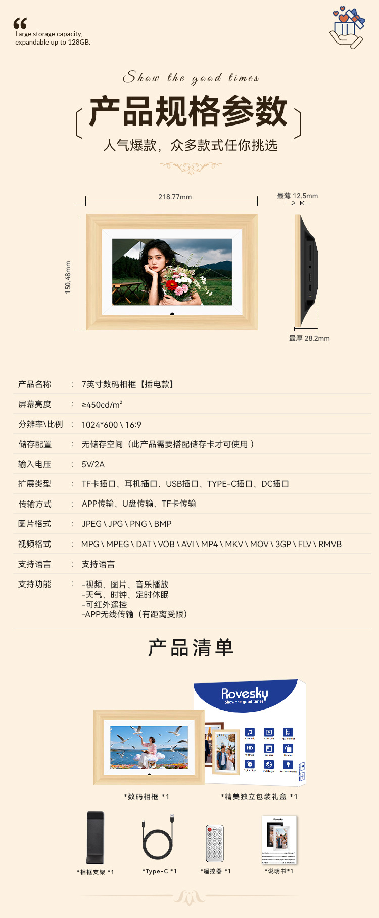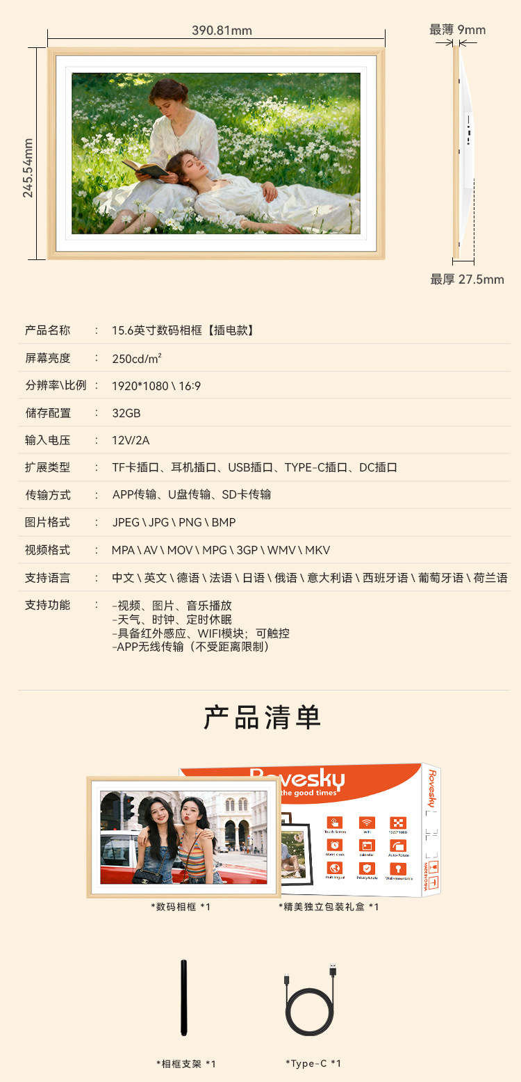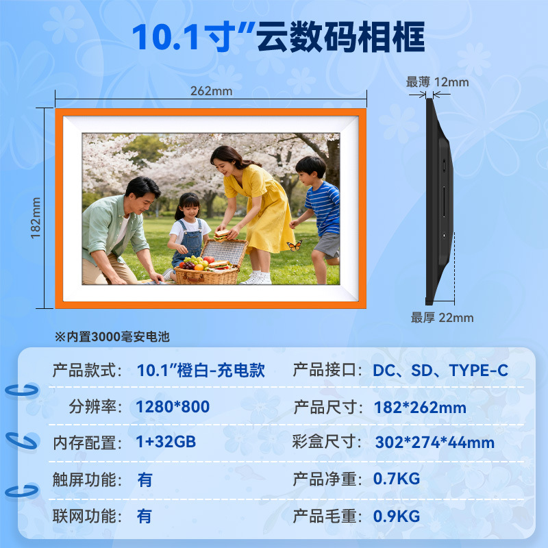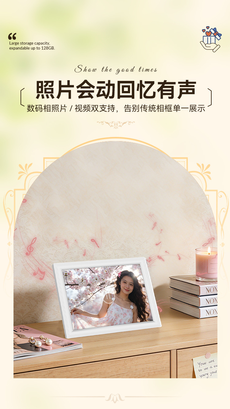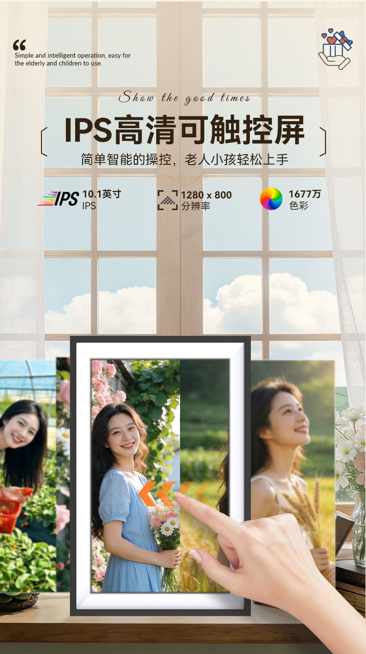 相框 Rovesky充电款数码相框 10.1寸32G跨境高清电子相册智能相框
