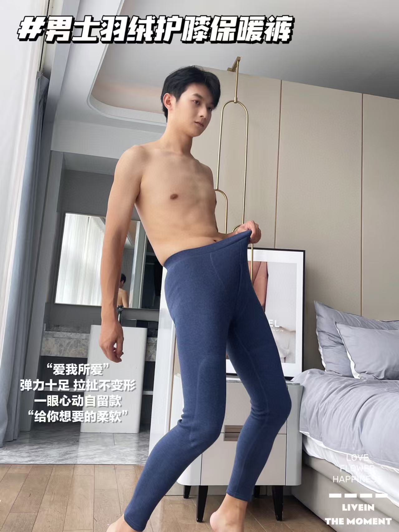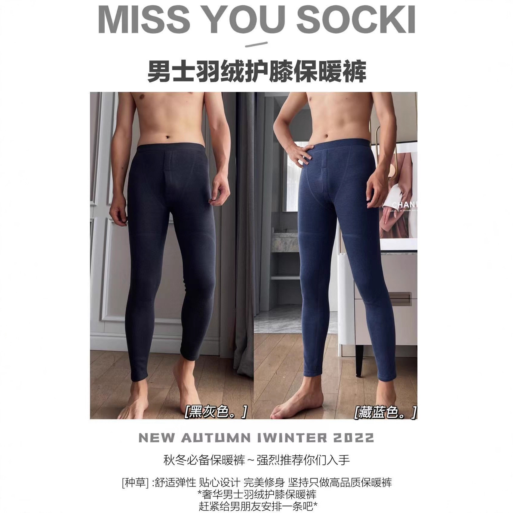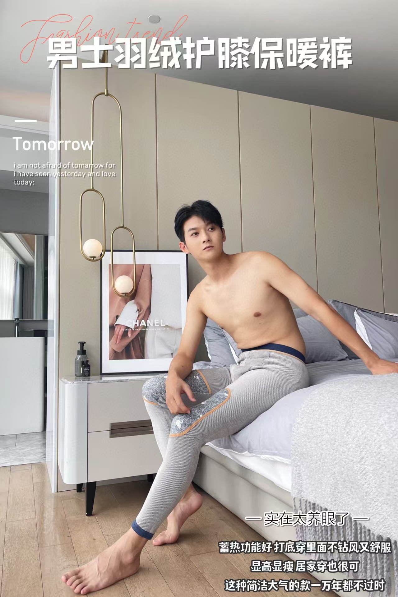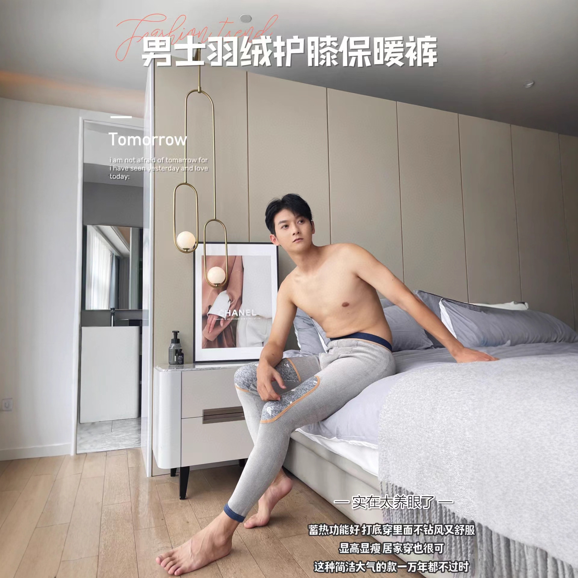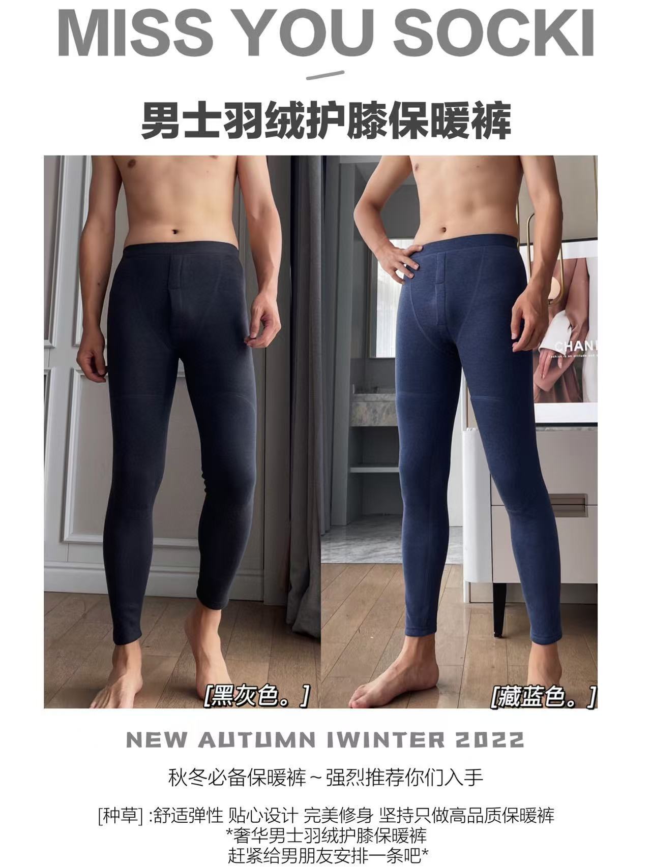冬季男士加绒加厚羽绒护膝裤中老年保暖裤贴片内穿秋裤单裤打底裤