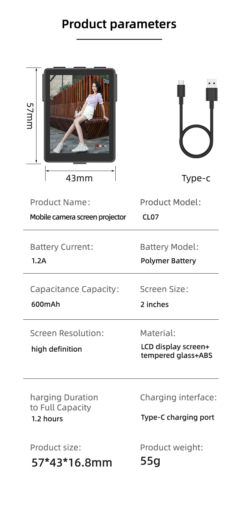 新款手机自拍无线投屏器蓝牙CL07后置摄像头适用于自拍同屏器跨境