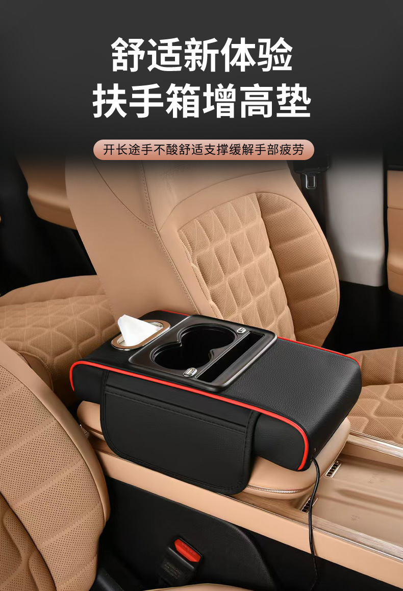 汽车通用款中央充电扶手箱增高垫中控保护垫纸巾盒水杯置物架