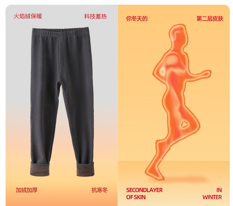 男士保暖裤加绒加厚冬季大码护膝棉裤男高腰火焰绒绒打底裤线裤