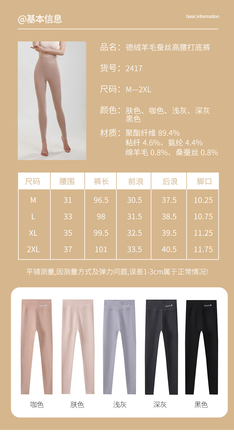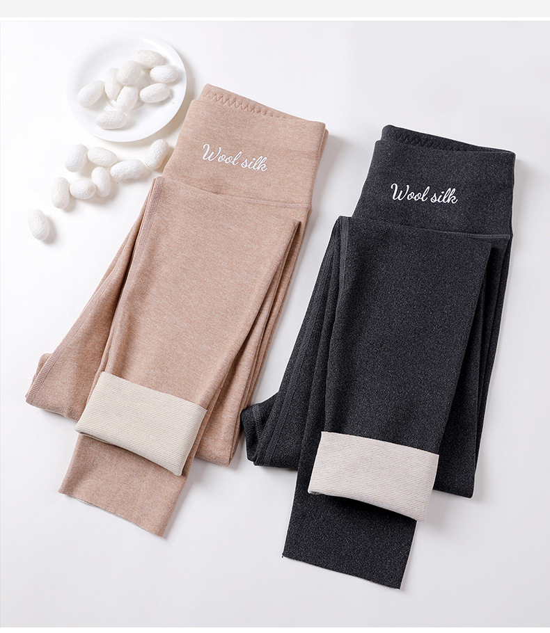 羊毛蚕丝秋裤女加厚加绒德无痕发热高腰保暖裤女羊毛棉裤打底裤冬