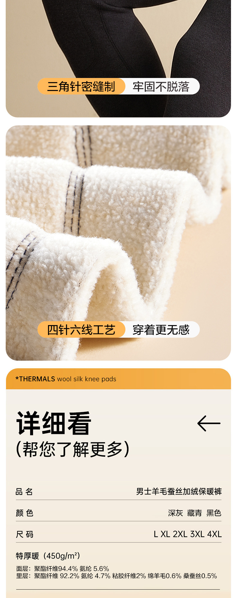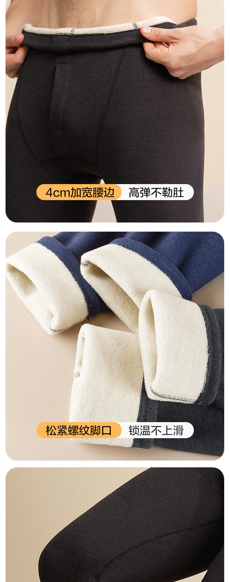 雅鹿保暖裤男士加厚加绒发热打底线裤男款冬季棉裤德绒裤羊毛秋裤