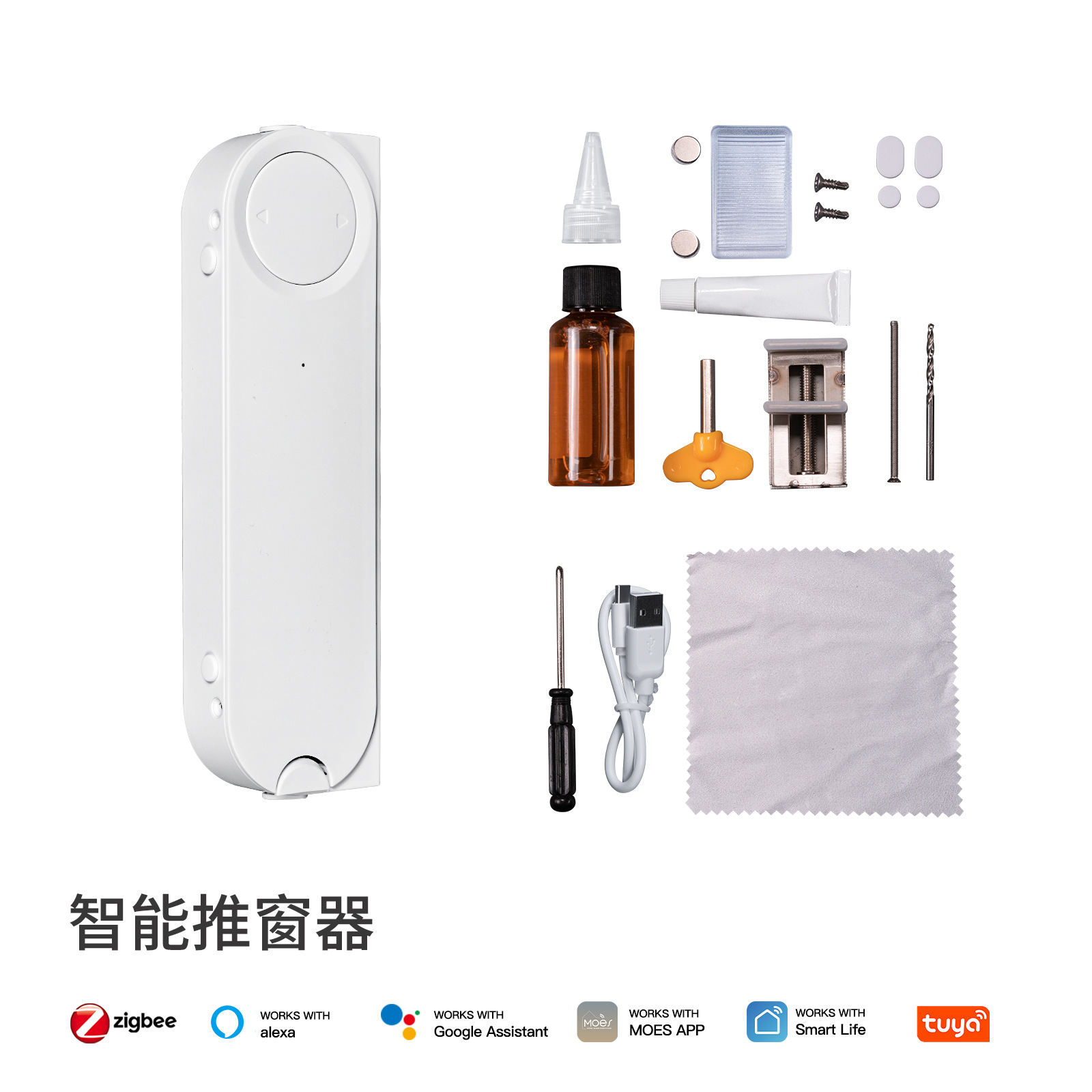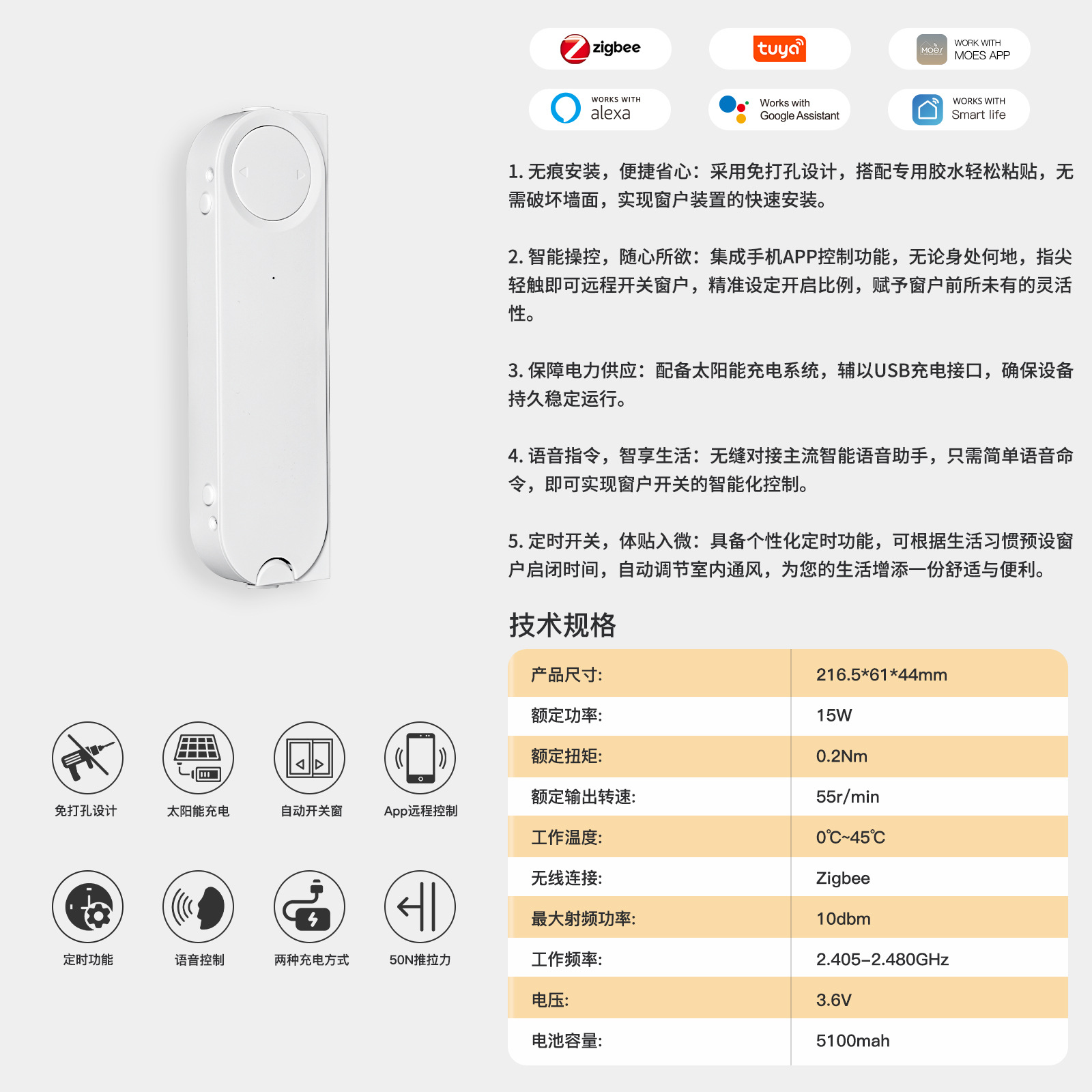 zigbee涂鸦智能家居推窗电机app定时太阳能充电无痕安装推窗器