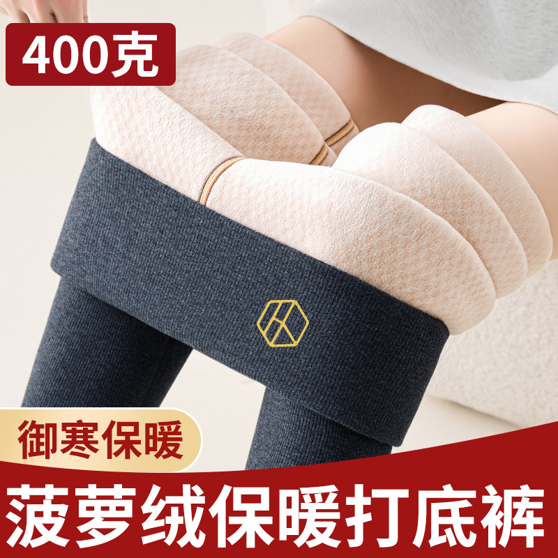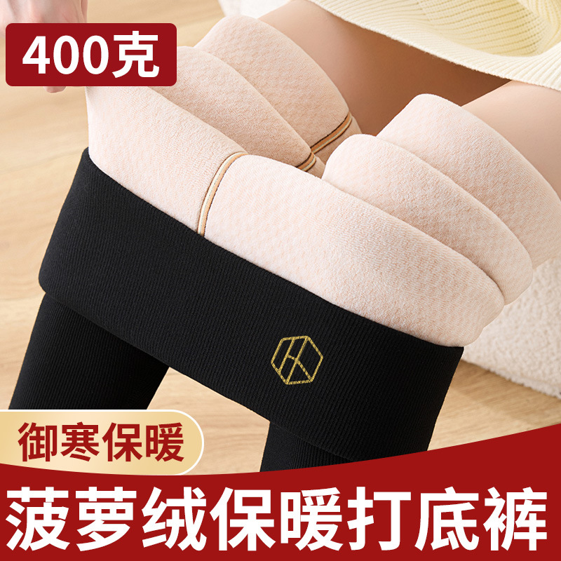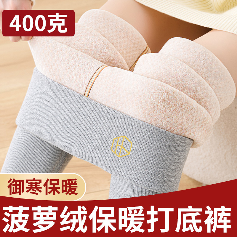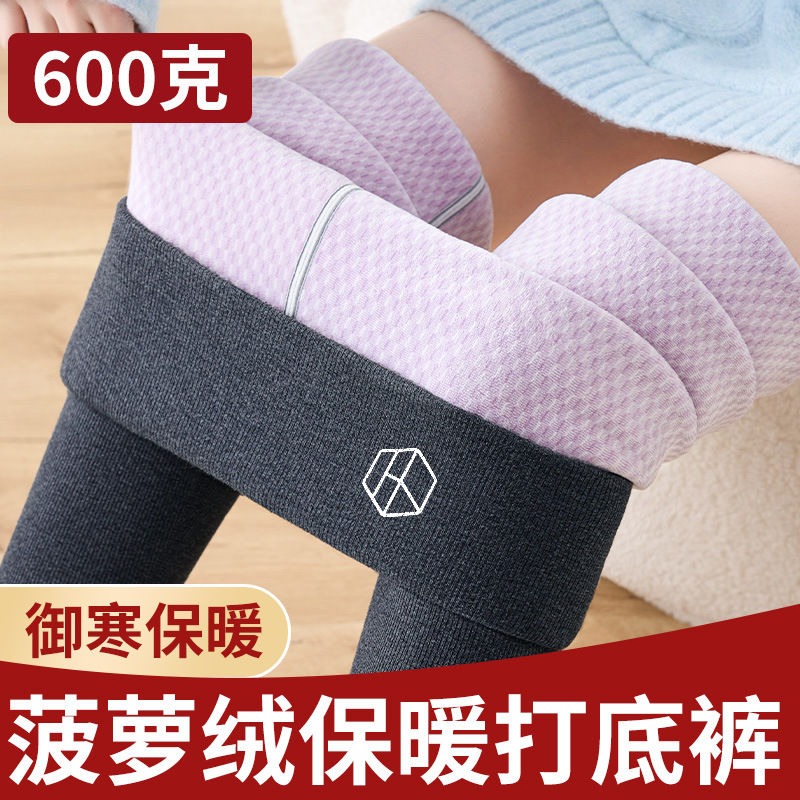 加厚加绒打底裤女外穿高腰显瘦大码长裤秋冬新款菠萝格绒保暖棉裤