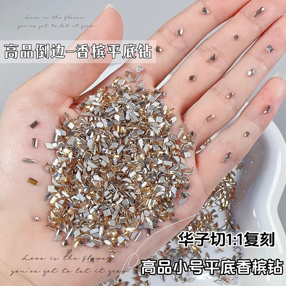 K9高品施家倒边平底钻美甲钻饰品网红爆闪仿华子迷你异形钻指甲钻
