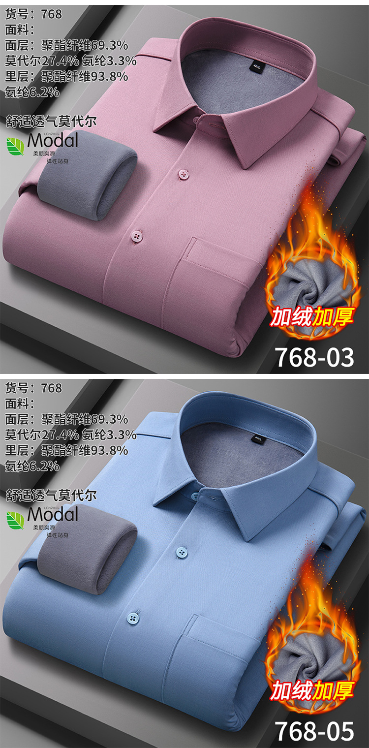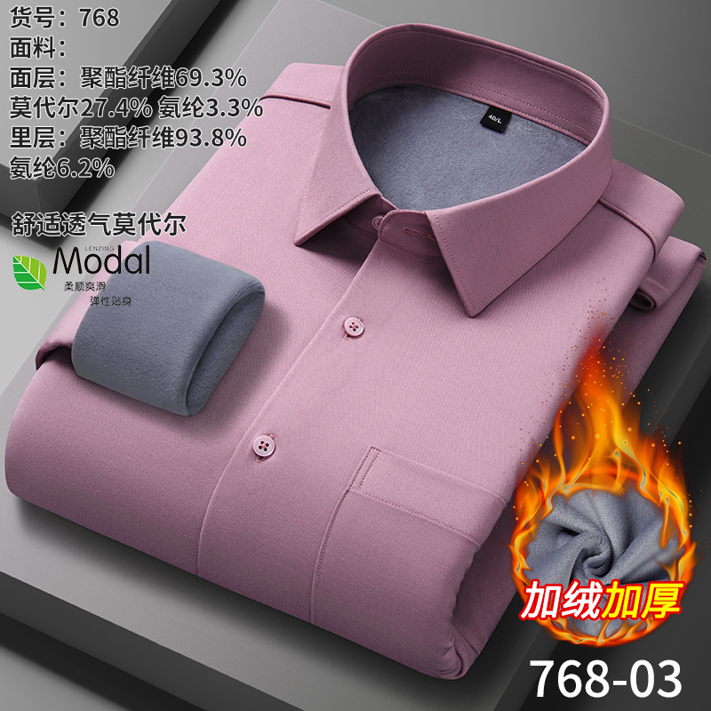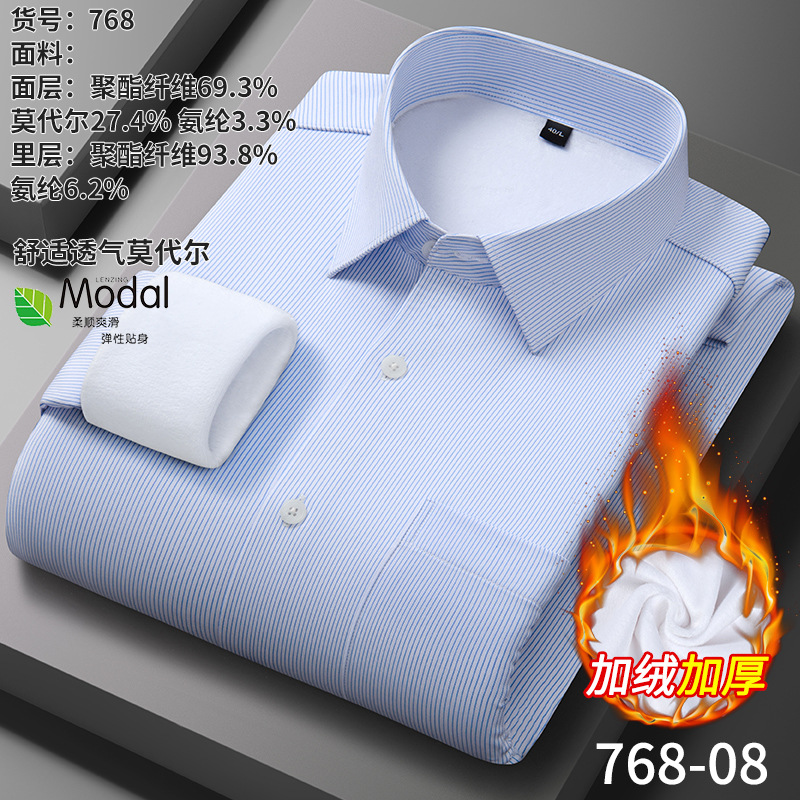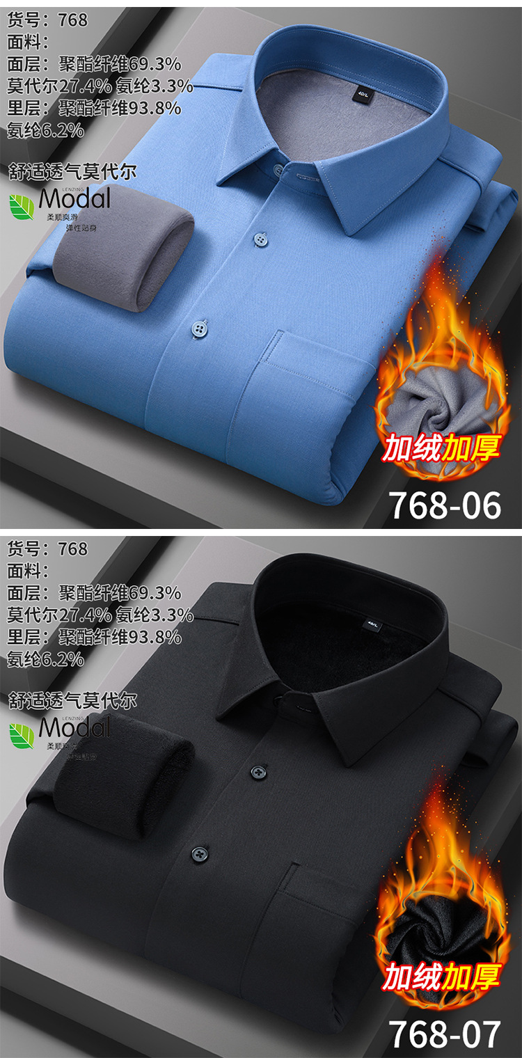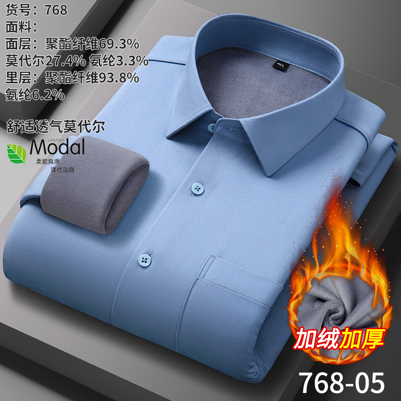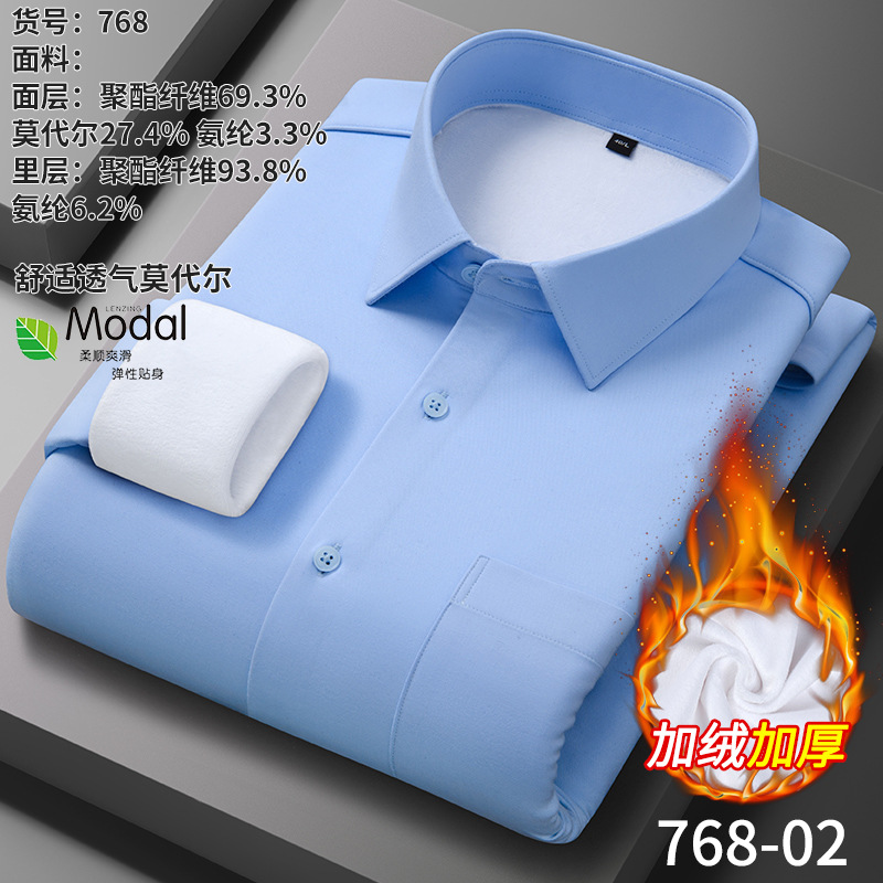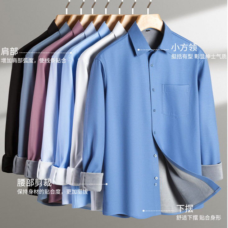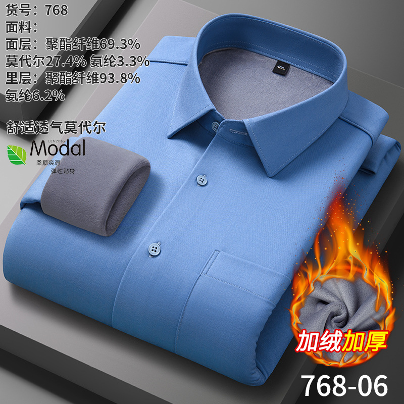 【冬季新款】莫代尔加绒加厚保暖衬衫一体绒内胆免烫长袖商务衬衣