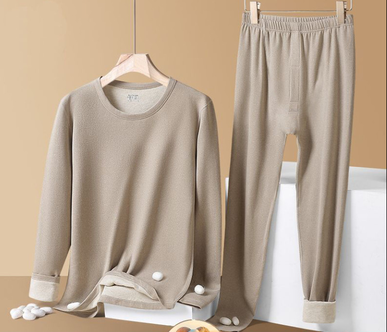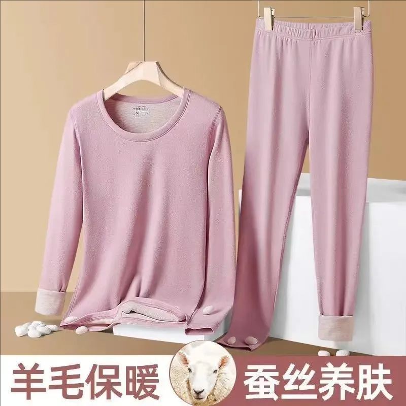 情侣羊毛蚕丝保暖内衣套装冬季加厚加绒秋衣秋裤打底AB面双层磨绒