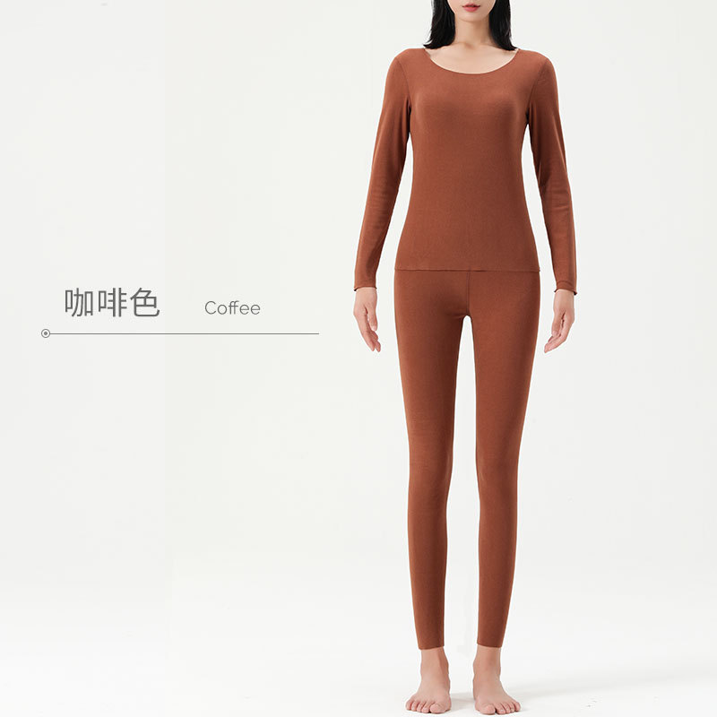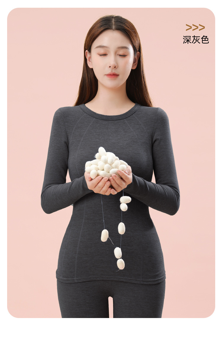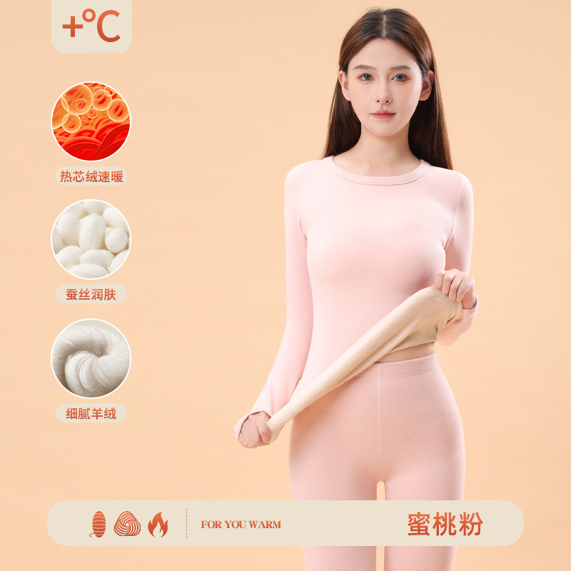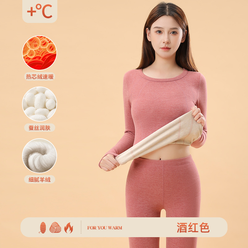 羊绒蚕丝保暖套装女士加绒加厚无痕发热德绒内衣打底秋衣秋裤冬季