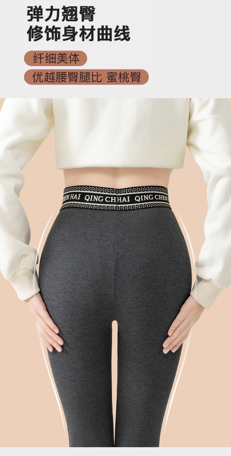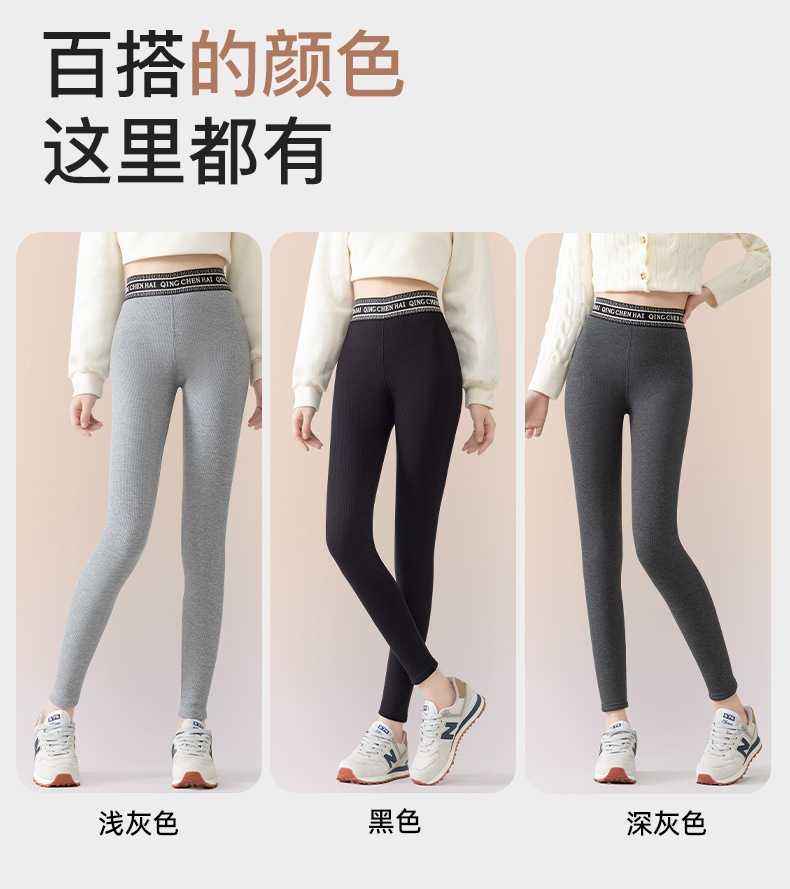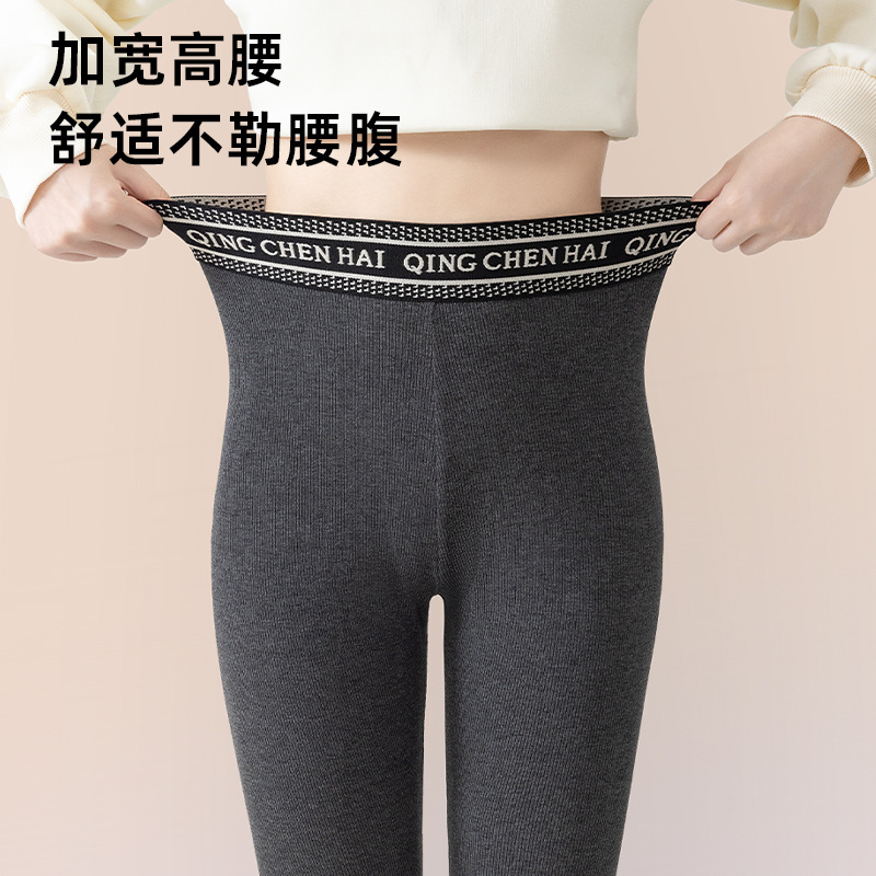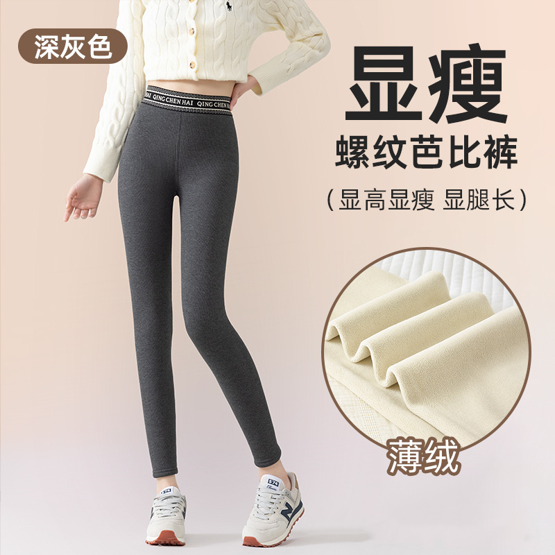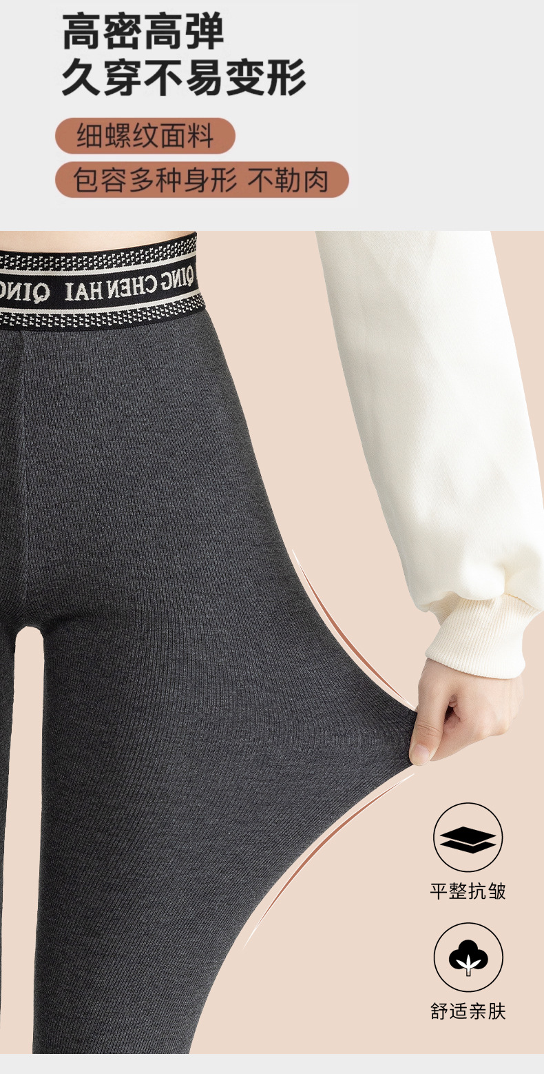 秋冬新款加绒打底裤保暖竖条螺纹棉外穿修身显瘦九分长裤芭比裤