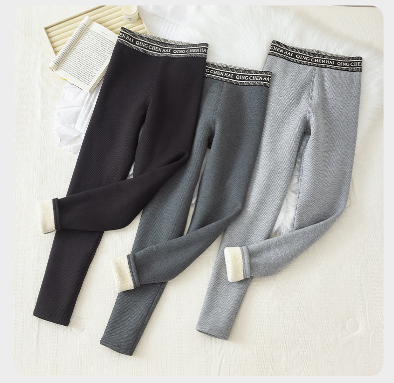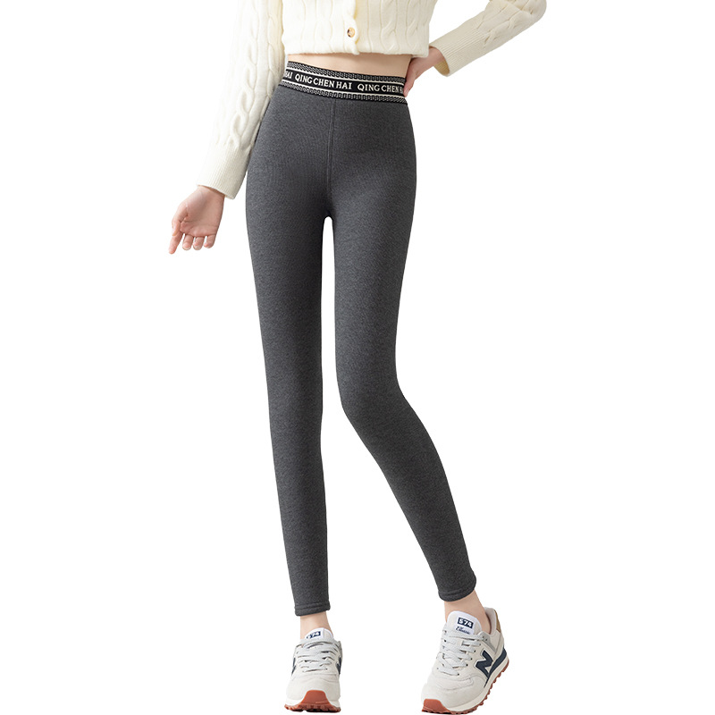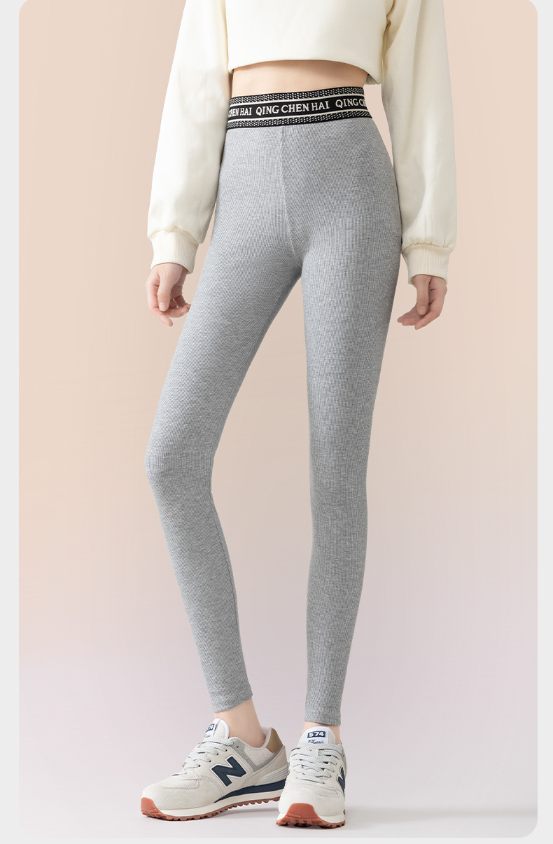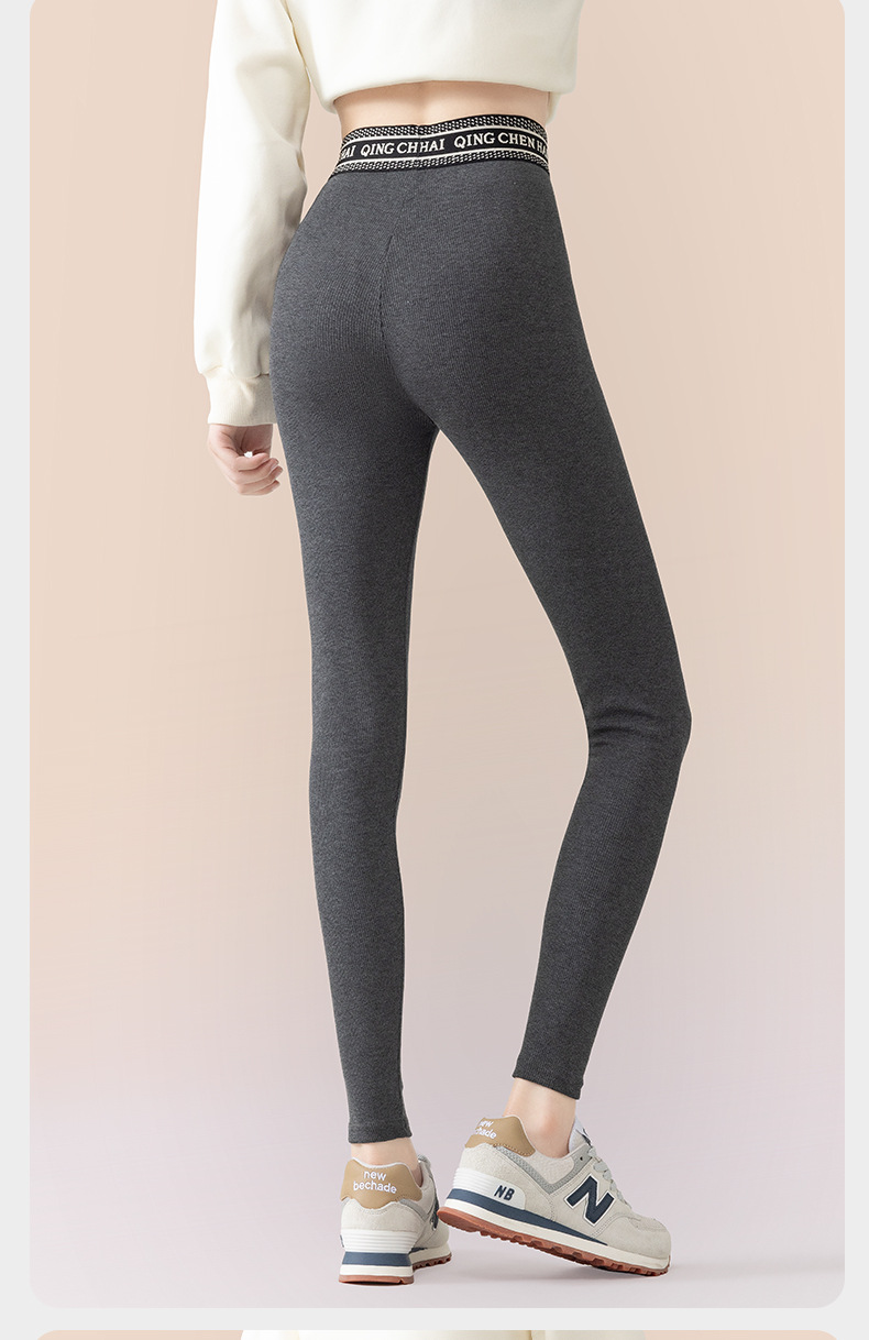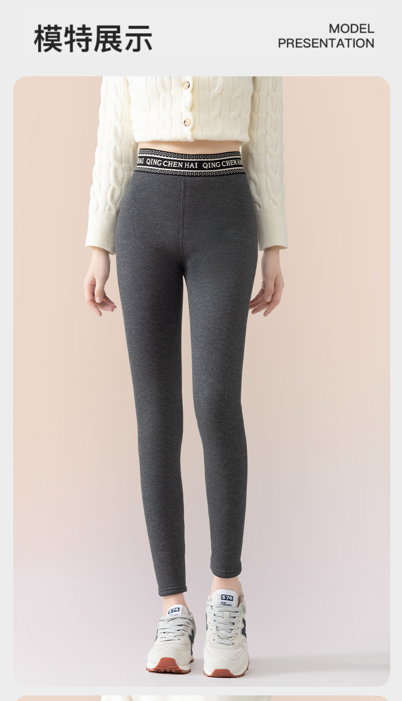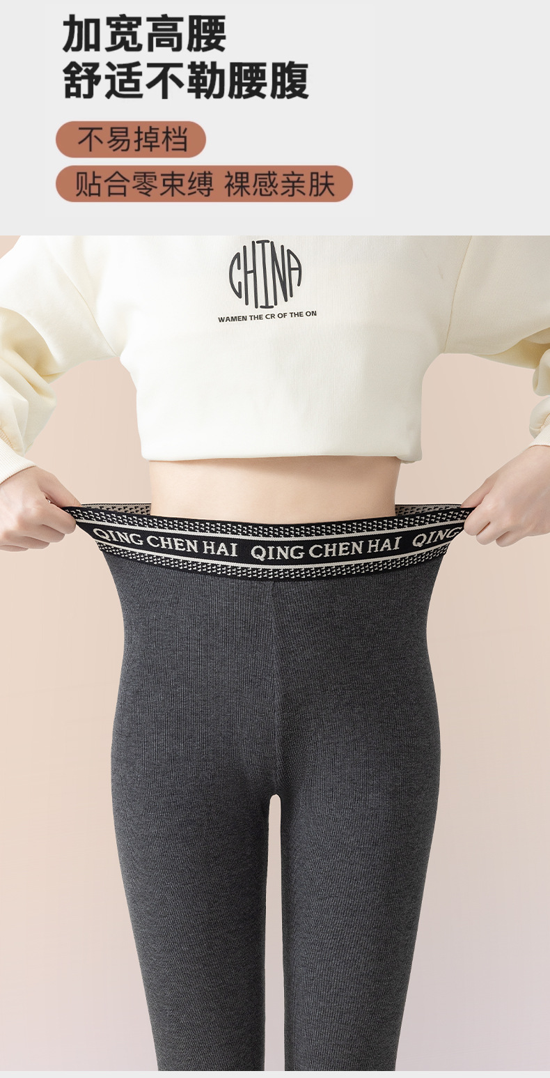 秋冬新款加绒打底裤保暖竖条螺纹棉外穿修身显瘦九分长裤芭比裤