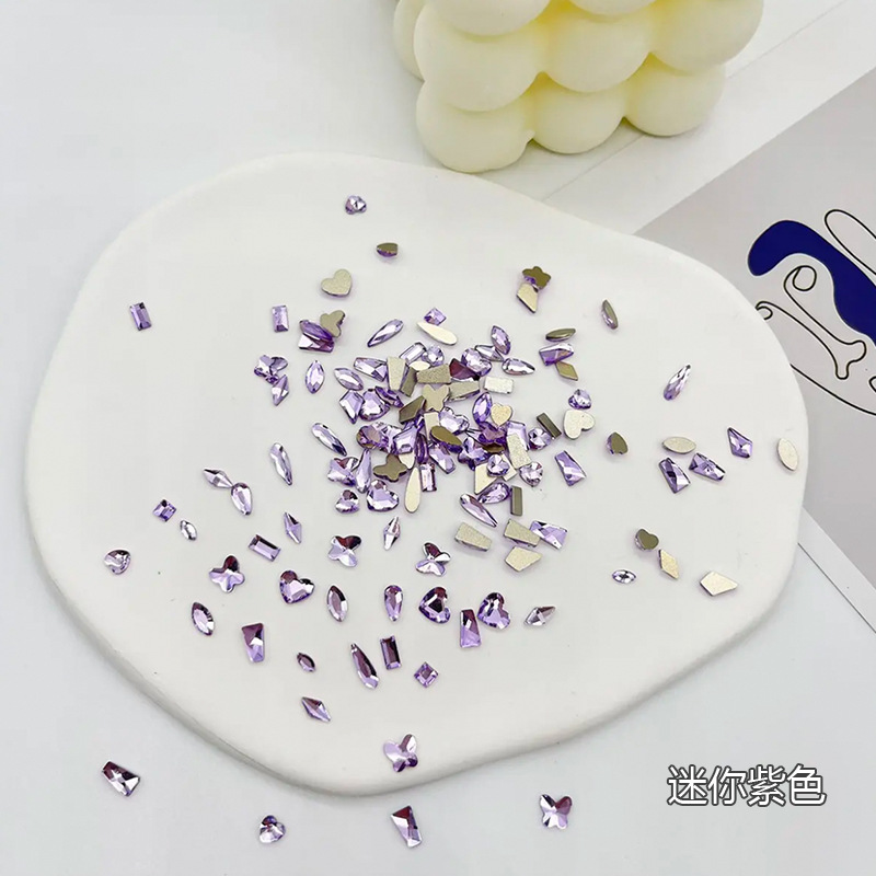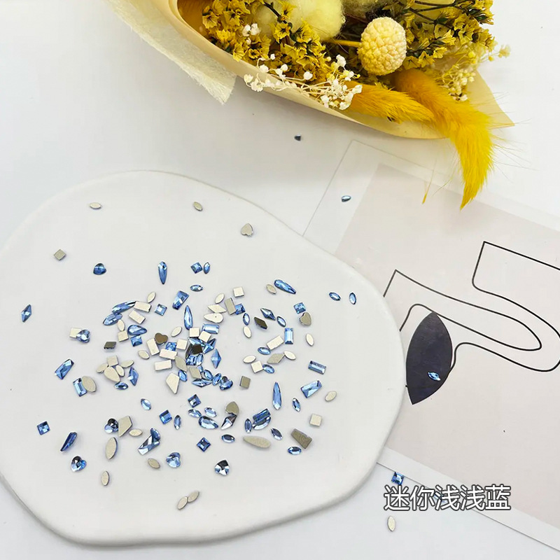 迷你小号美甲钻网红爆闪白色平底异形钻小钻混装极光钻小饰品配件