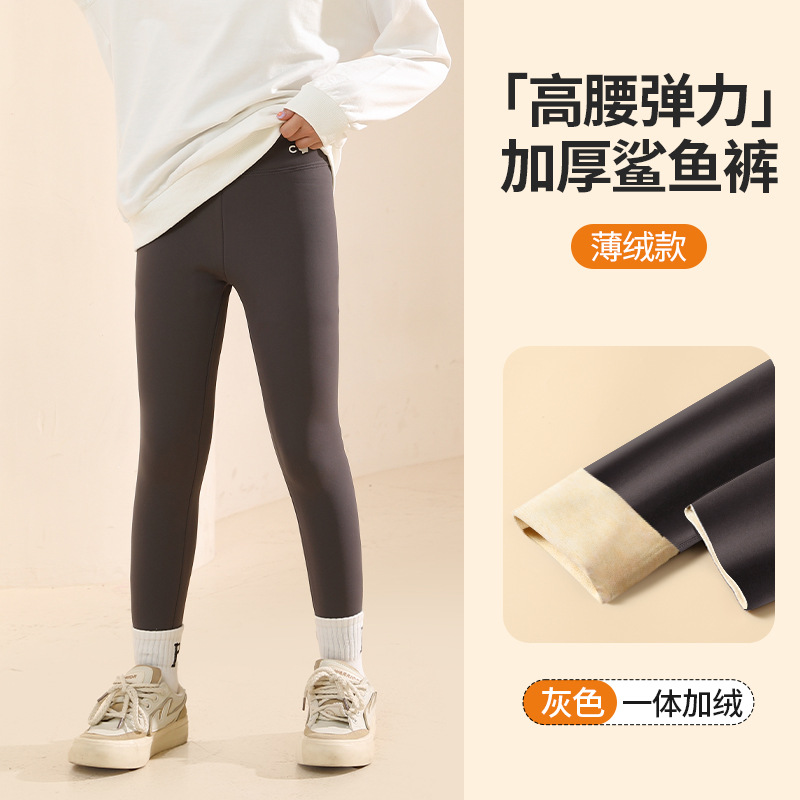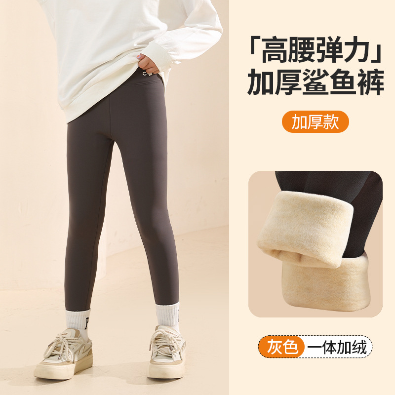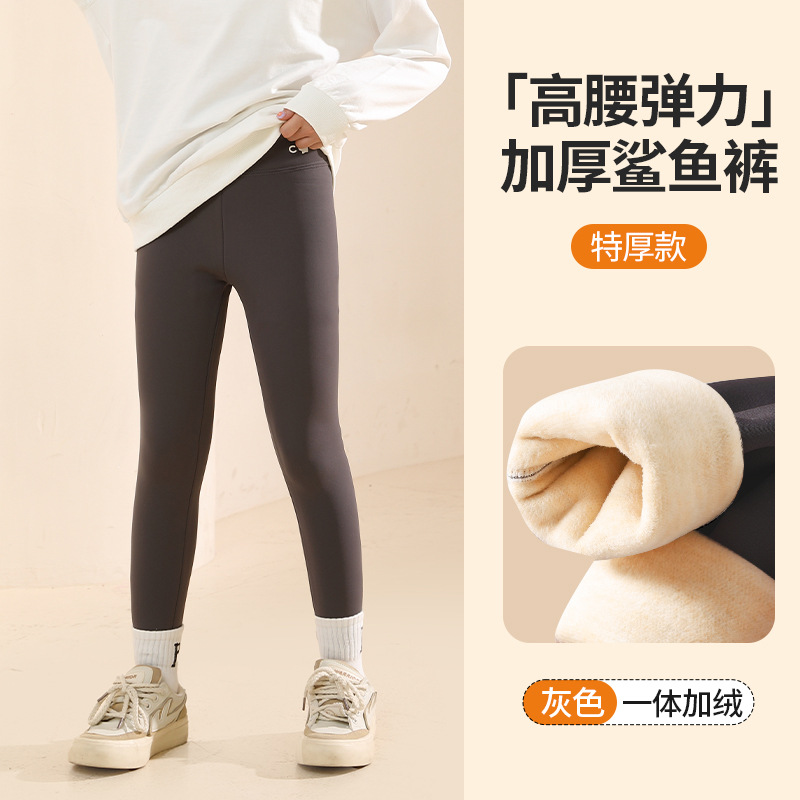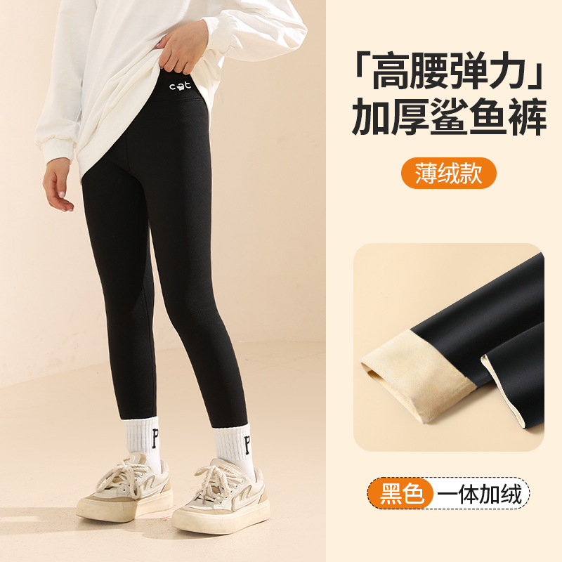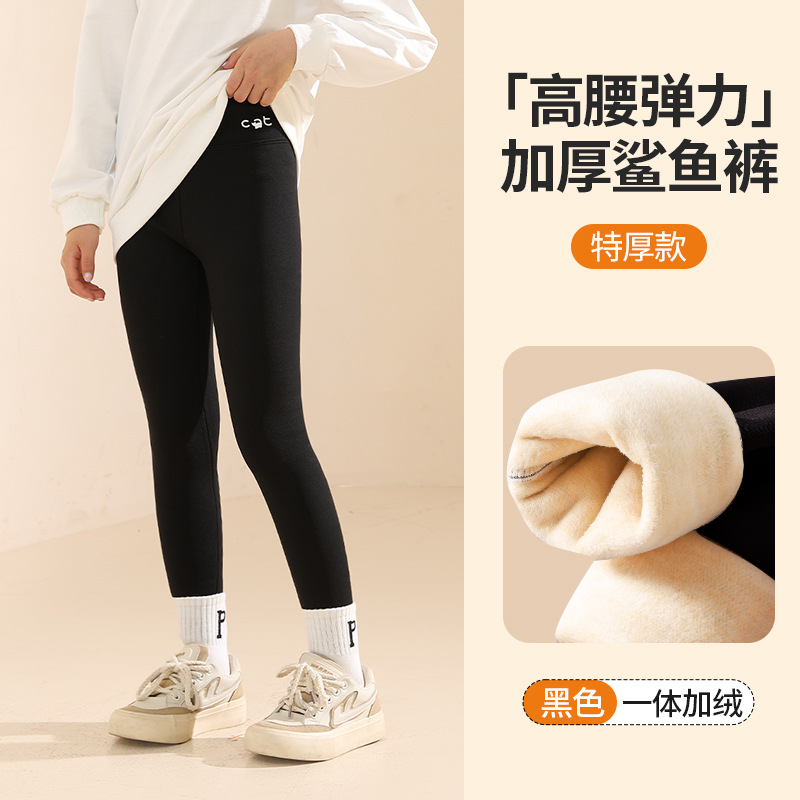 秋冬季女童加绒加厚打底裤中大童外穿鲨鱼裤芭比裤女孩一体保暖裤