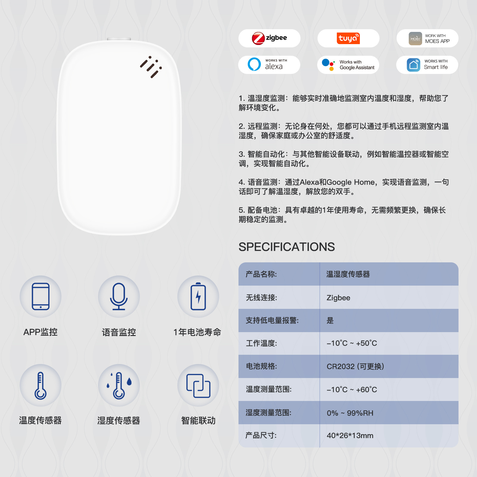 涂鸦智能家居zigbee智能感应器app远程查看室内温湿度传感报警器