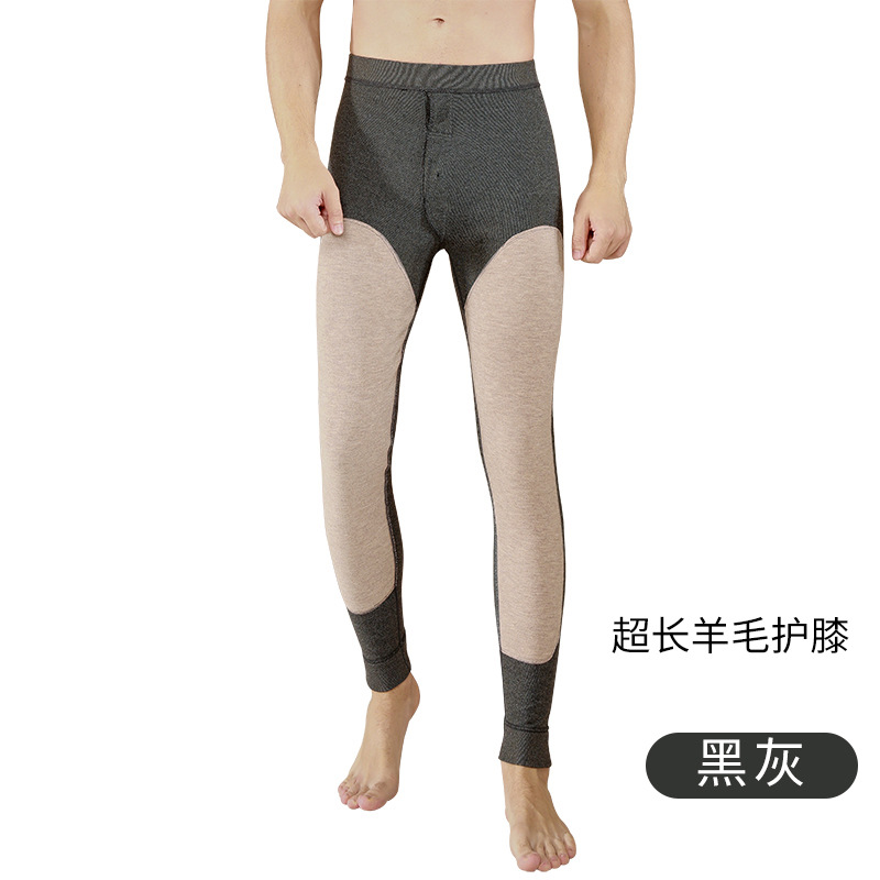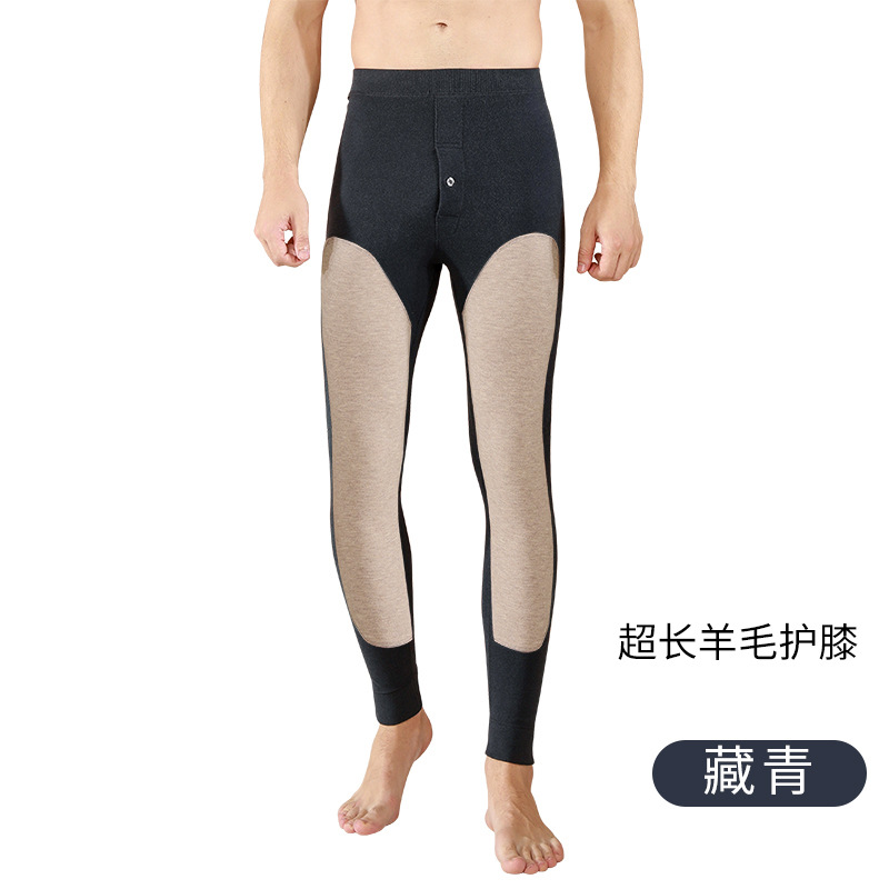 羊毛护膝男士保暖裤男裤加厚牙签条阳离子德绒秋裤男款打底裤秋冬