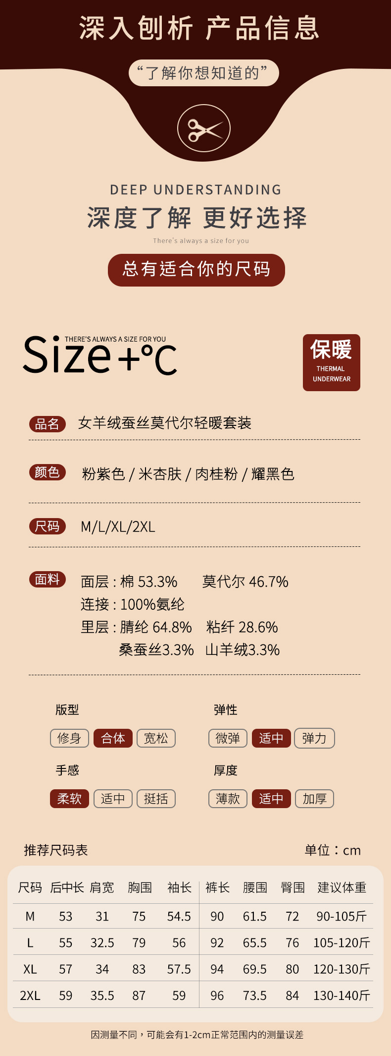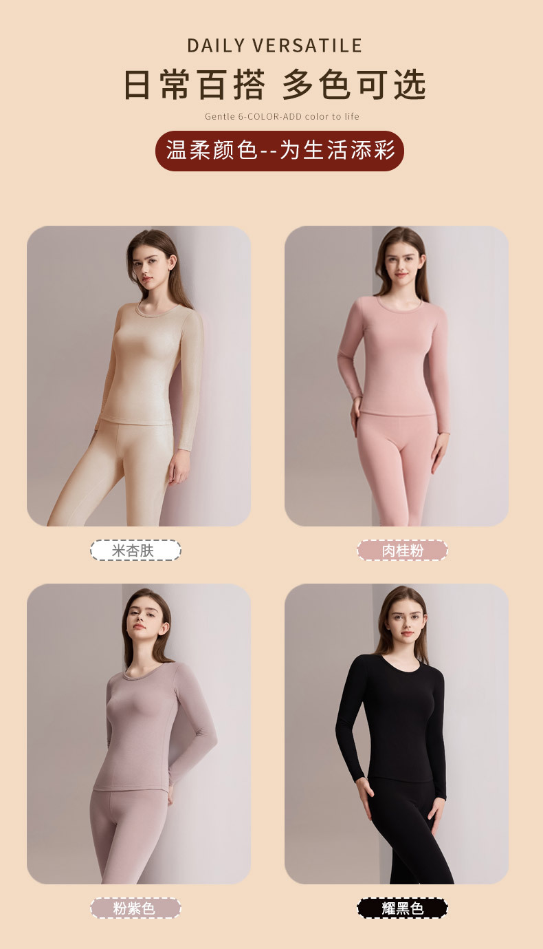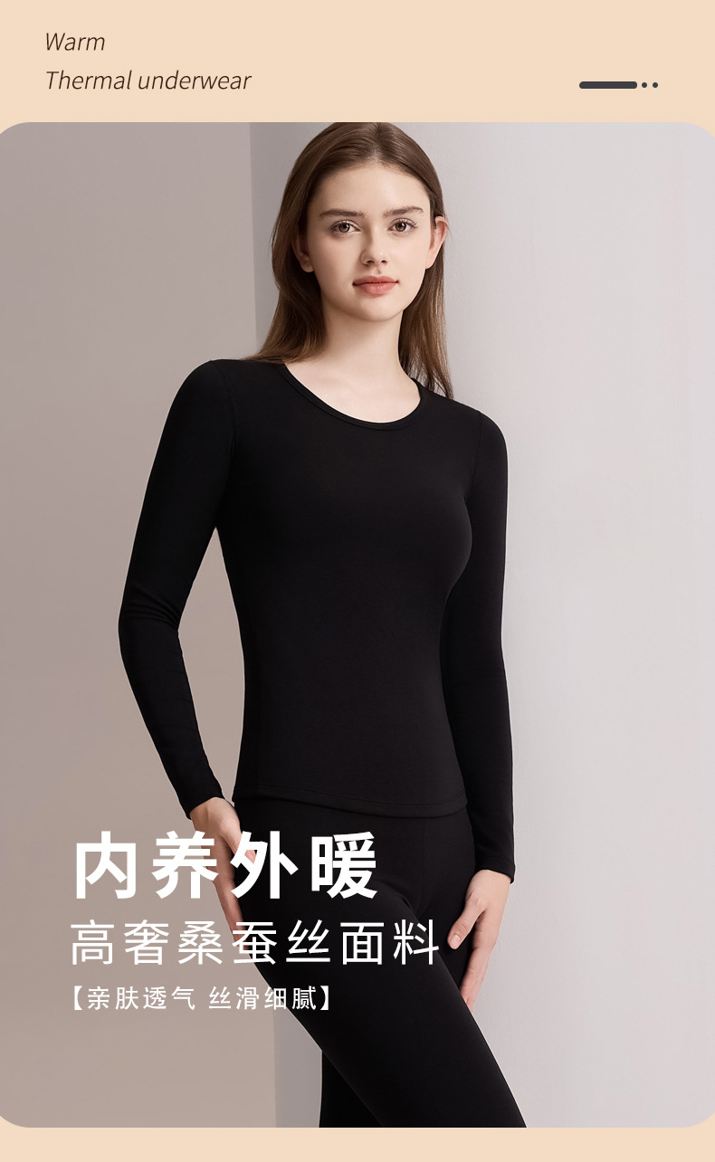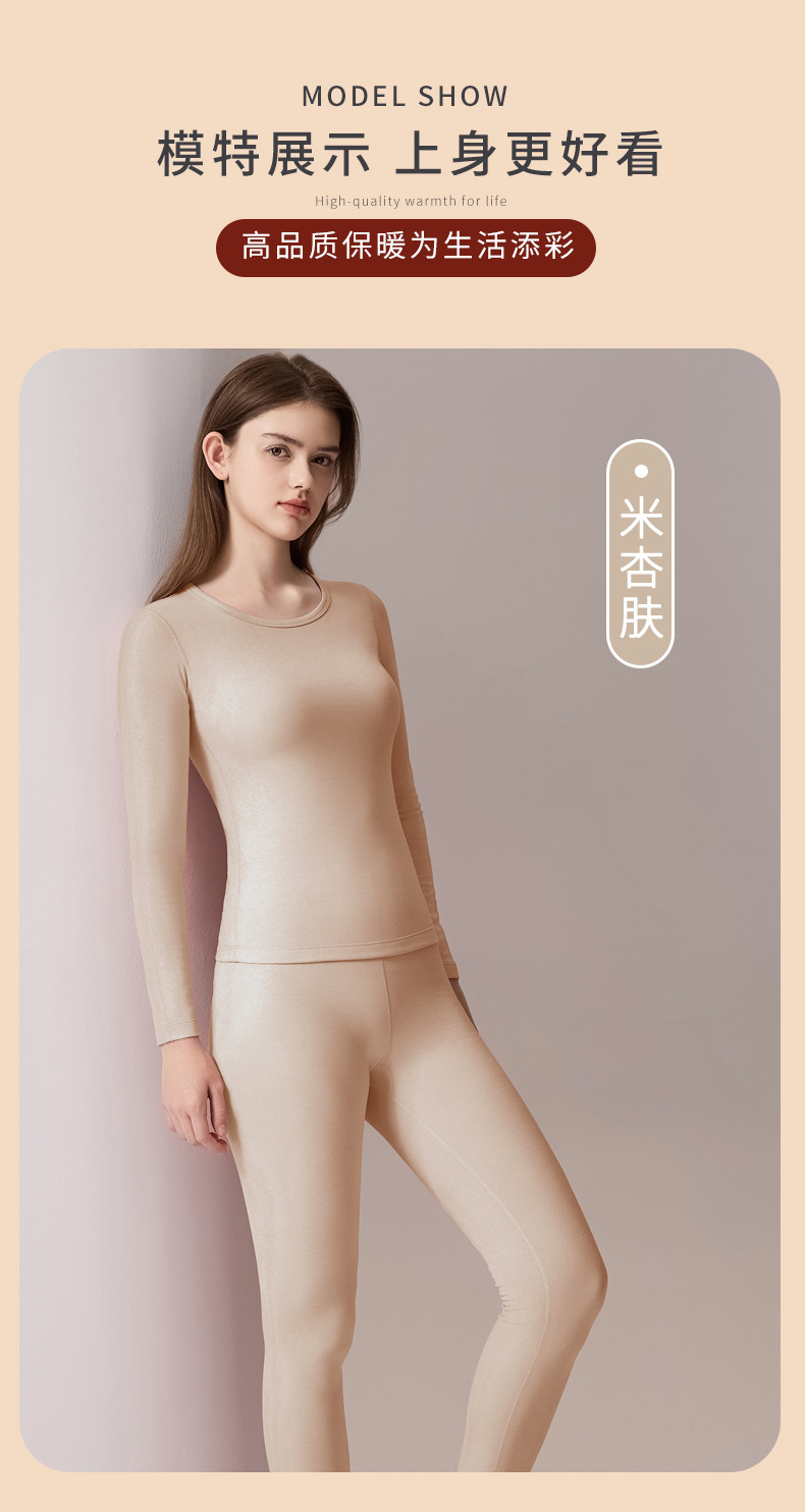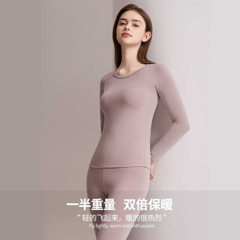 秋冬新款莫代尔羊绒蚕丝女保暖内衣绸丽发热美体修身秋衣秋裤套装