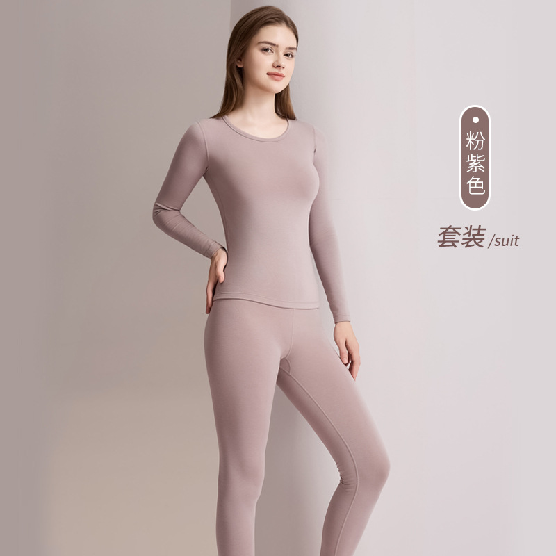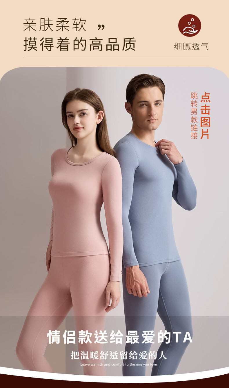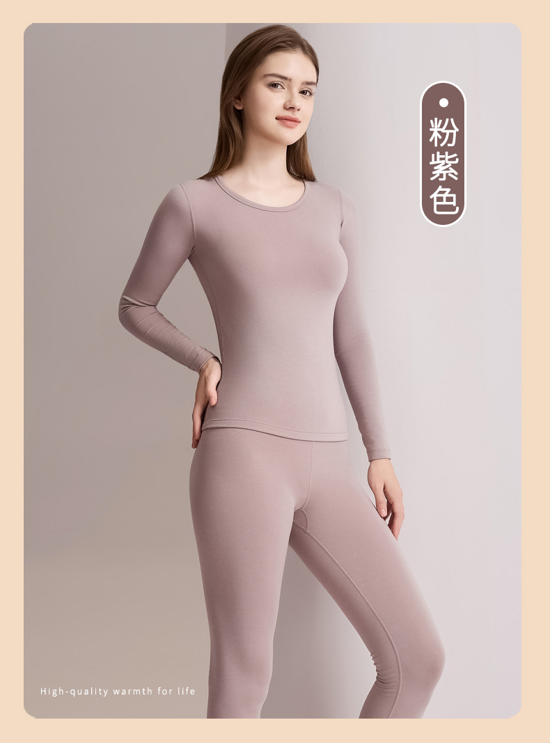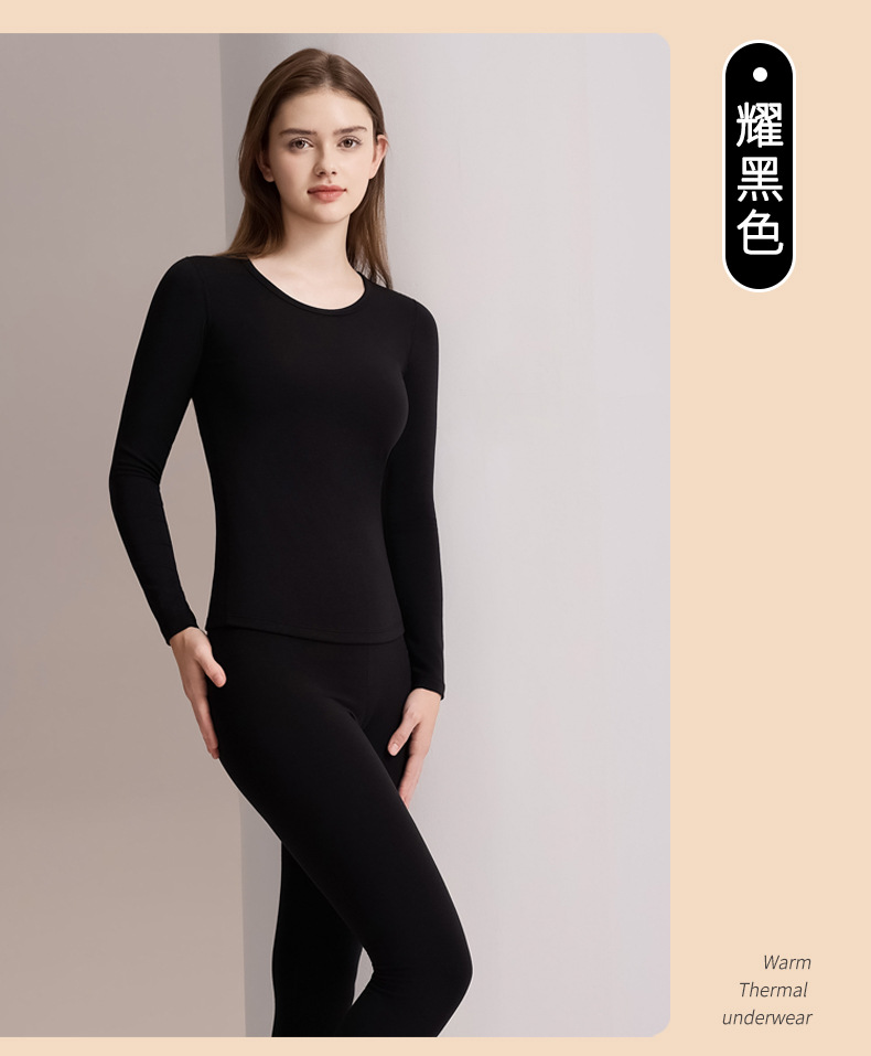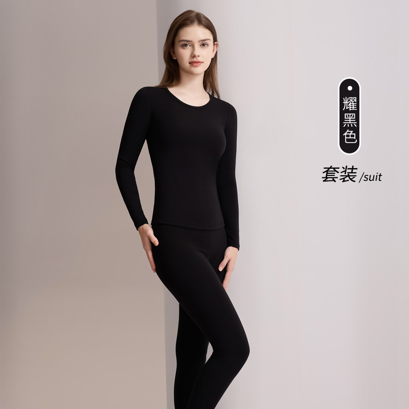 秋冬新款莫代尔羊绒蚕丝女保暖内衣绸丽发热美体修身秋衣秋裤套装