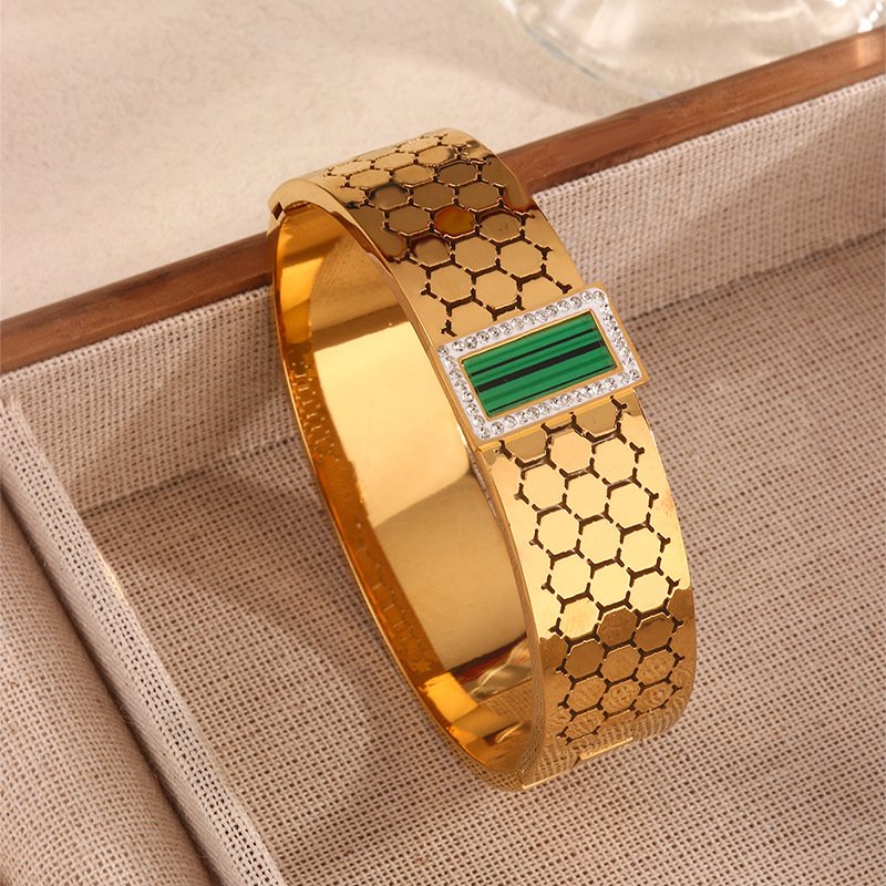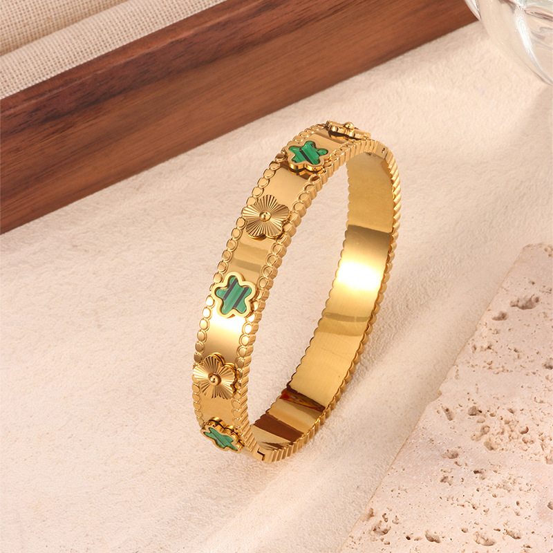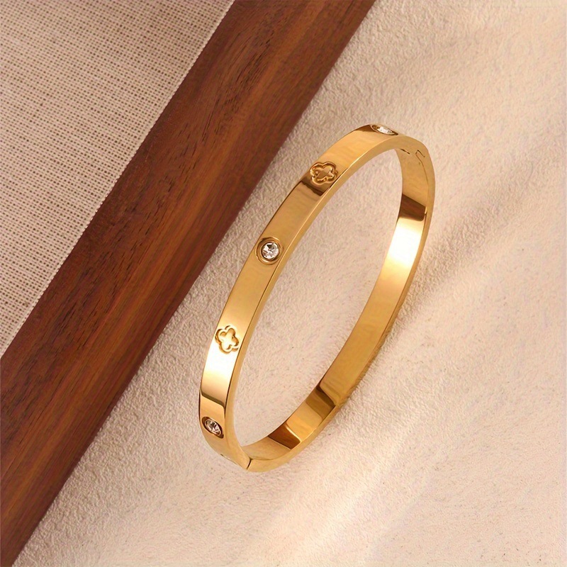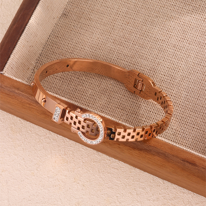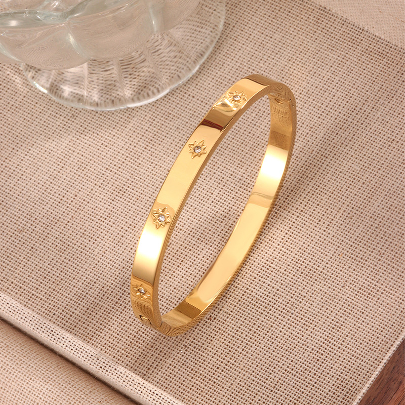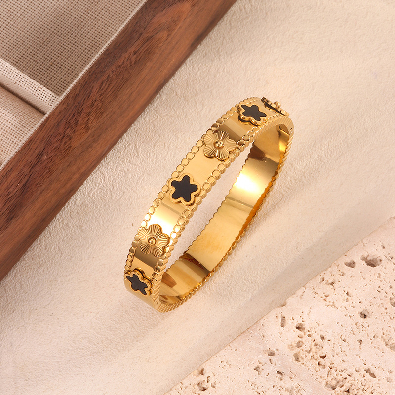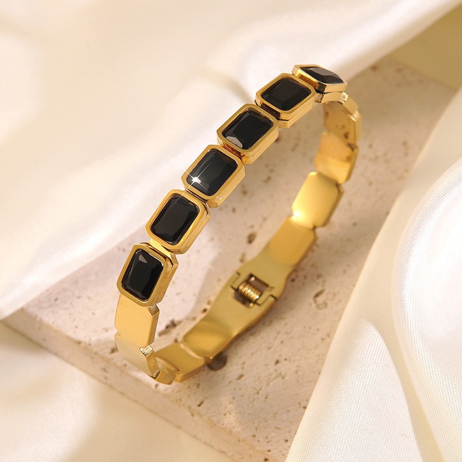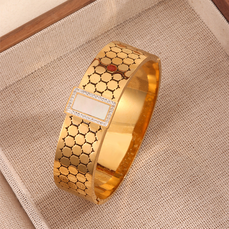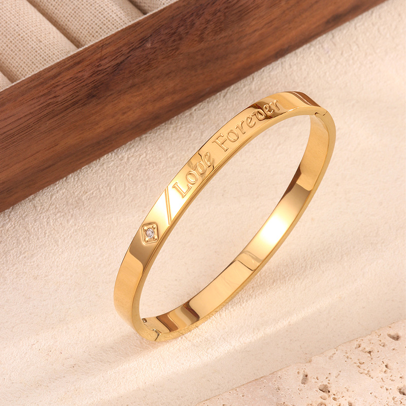 跨境爆款钛钢手镯时尚气质百搭镀18k金不锈钢几何手镯饰品批发