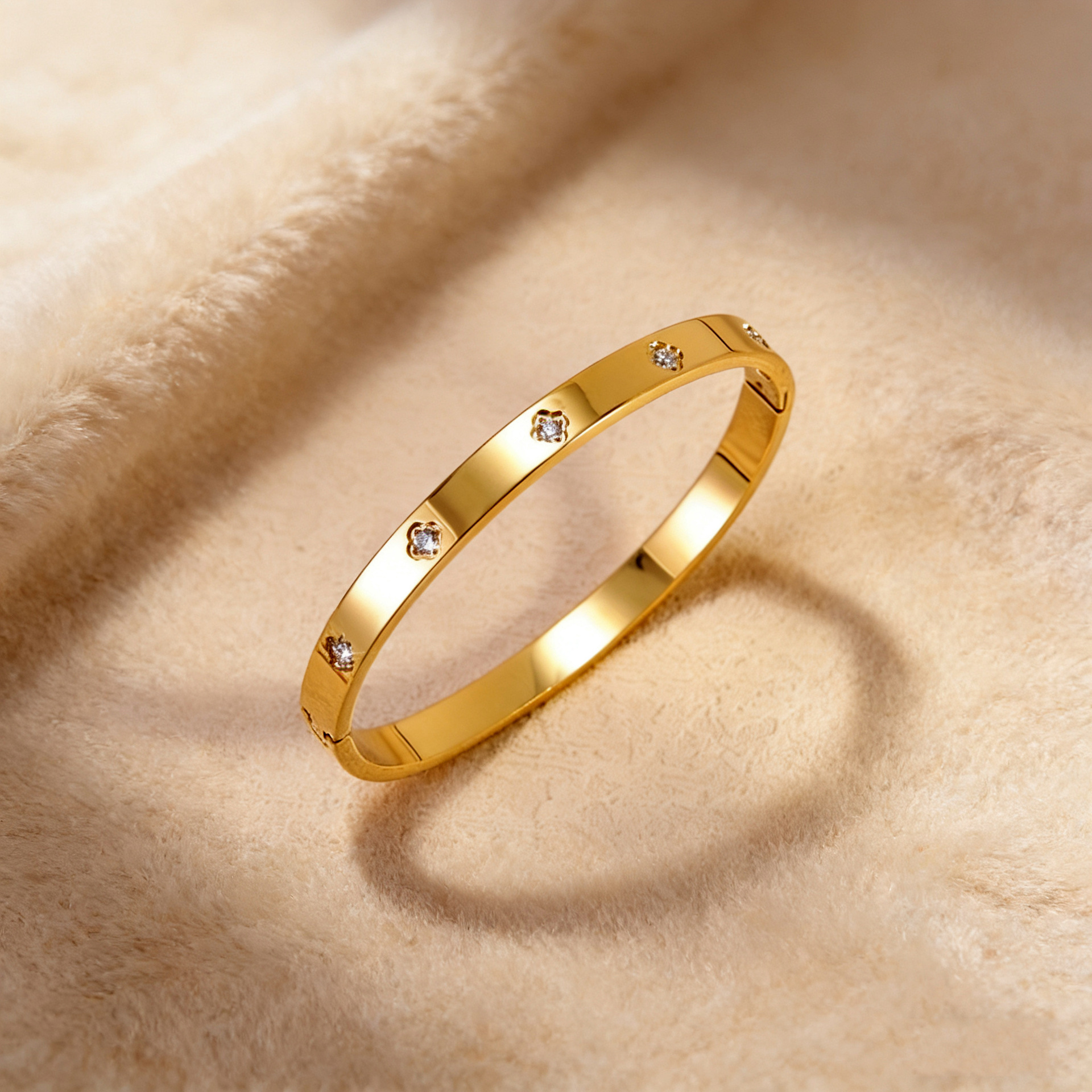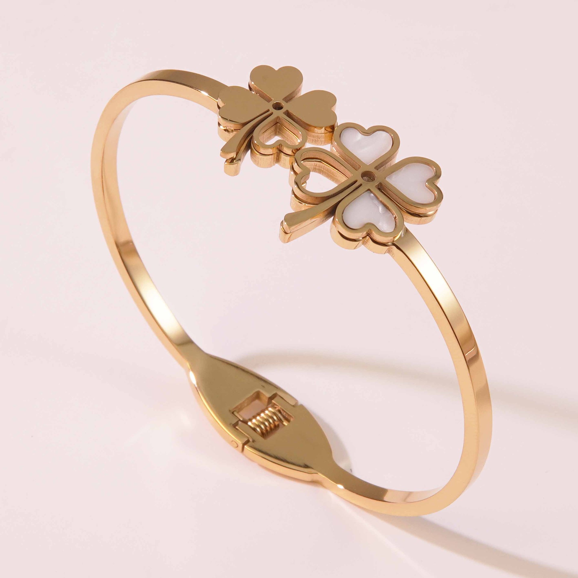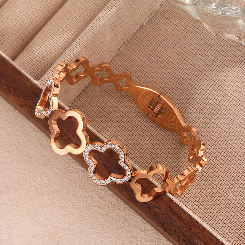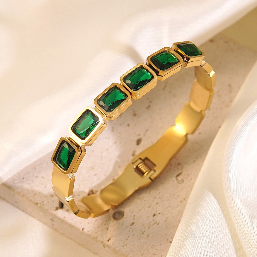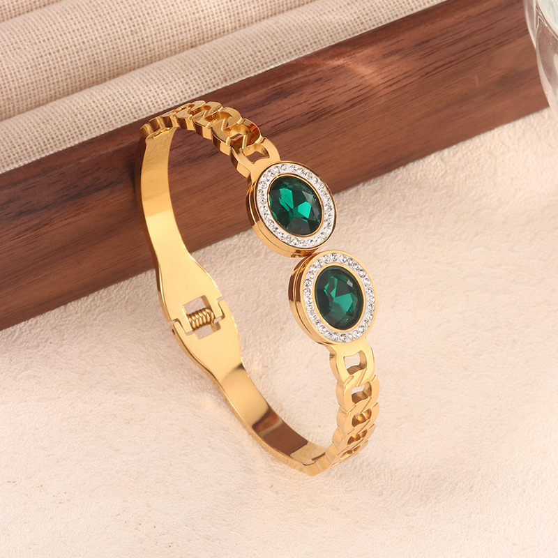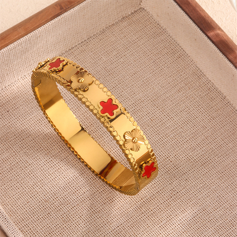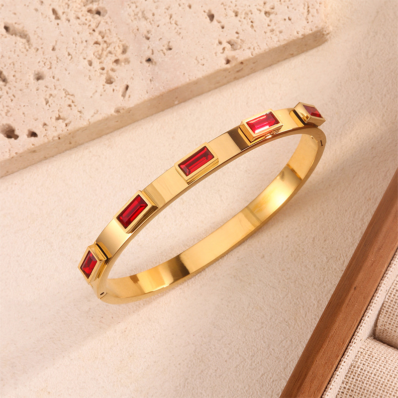 跨境爆款钛钢手镯时尚气质百搭镀18k金不锈钢几何手镯饰品批发