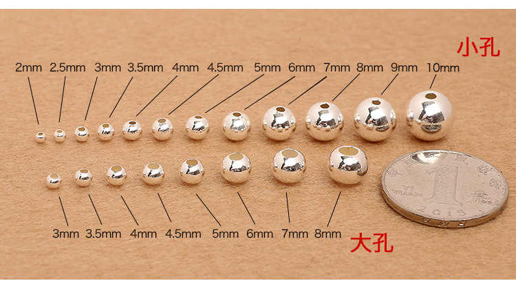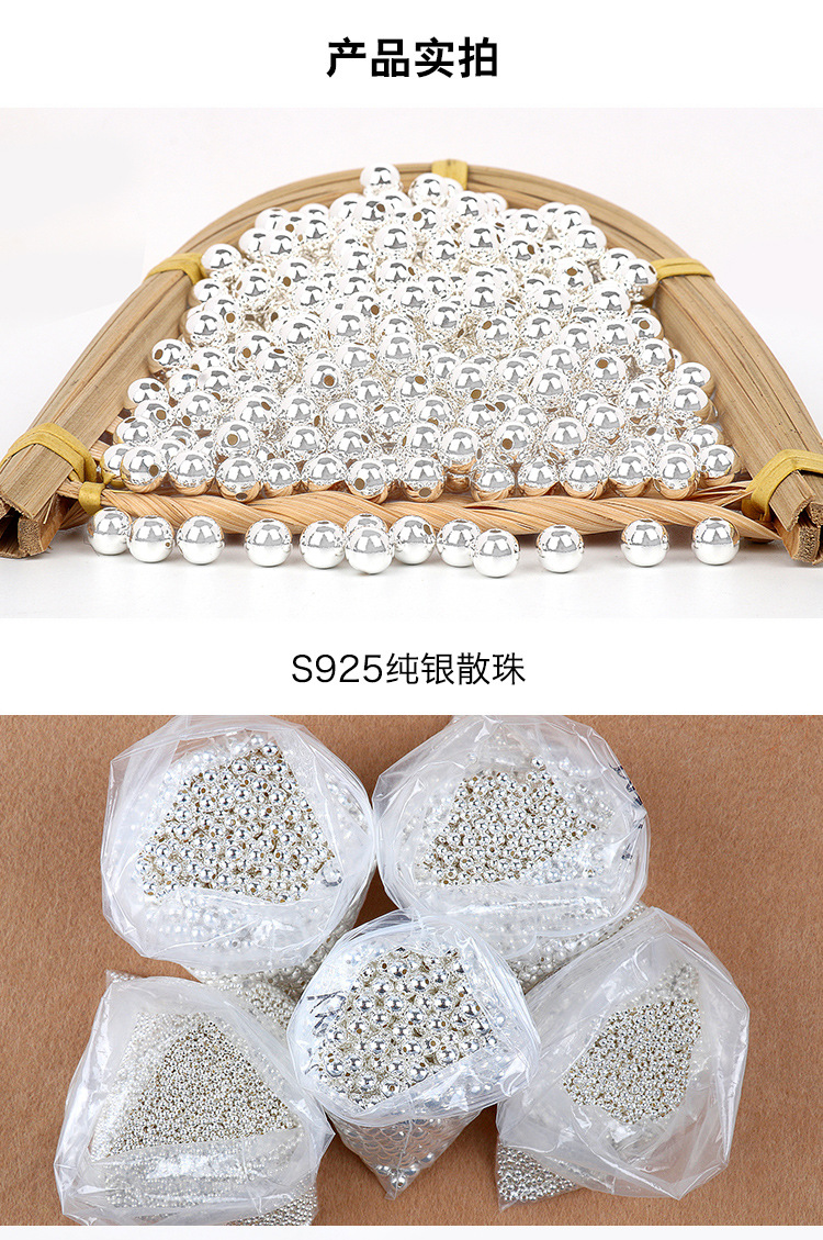 s925纯银珠子散珠圆珠串珠花托diy水晶手链银隔珠银手链项链材料