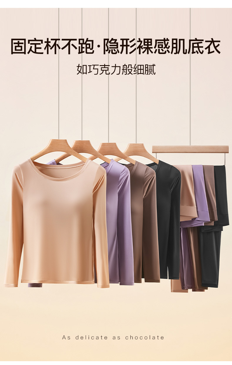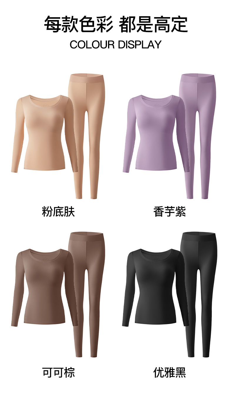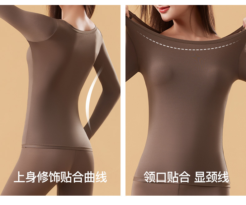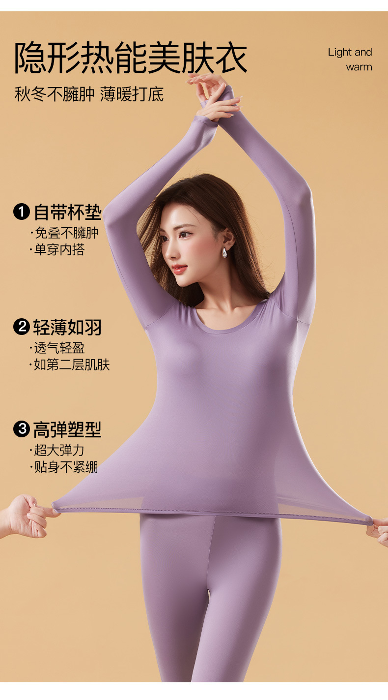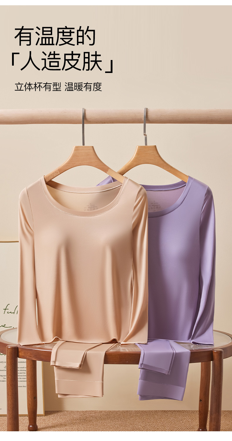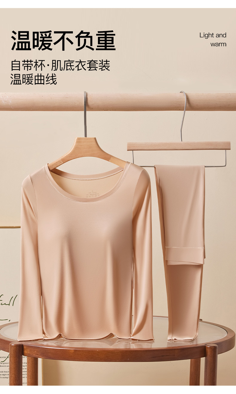 恒温发热玻尿酸美肤衣带胸垫保暖长袖长裤无痕秋衣秋裤女保暖套装