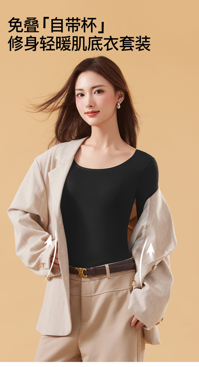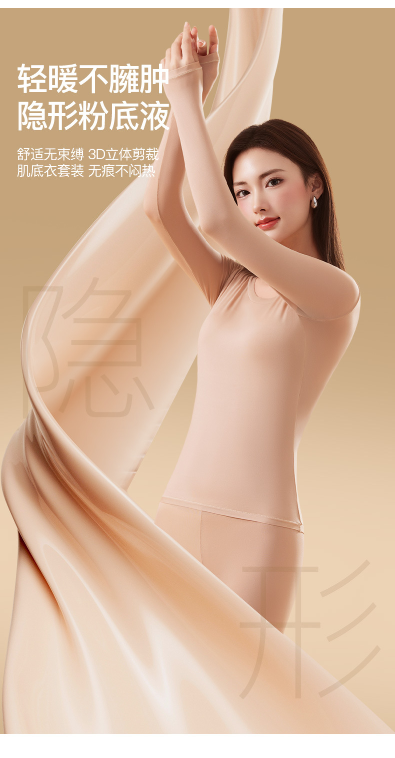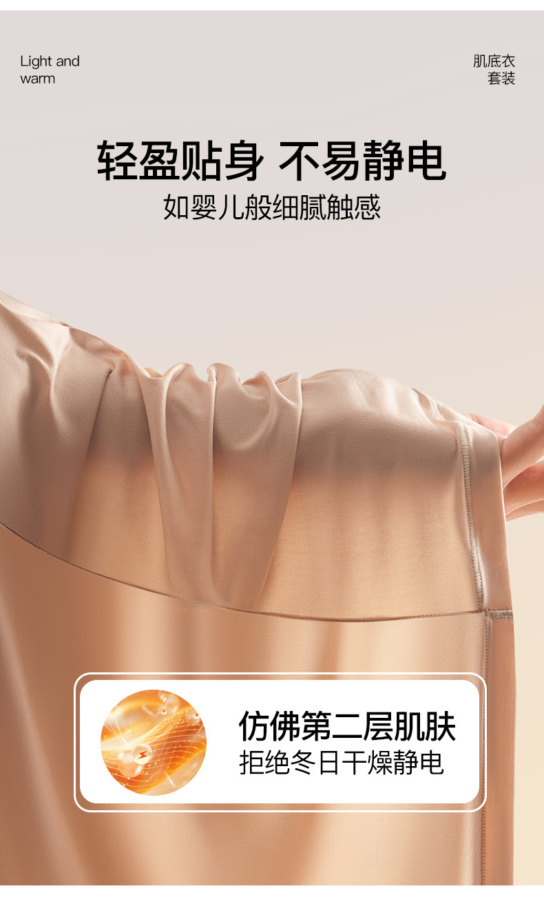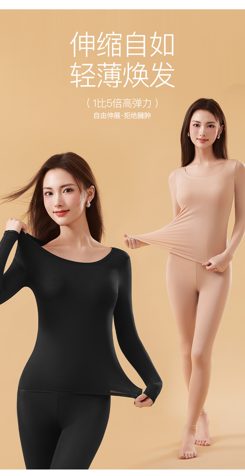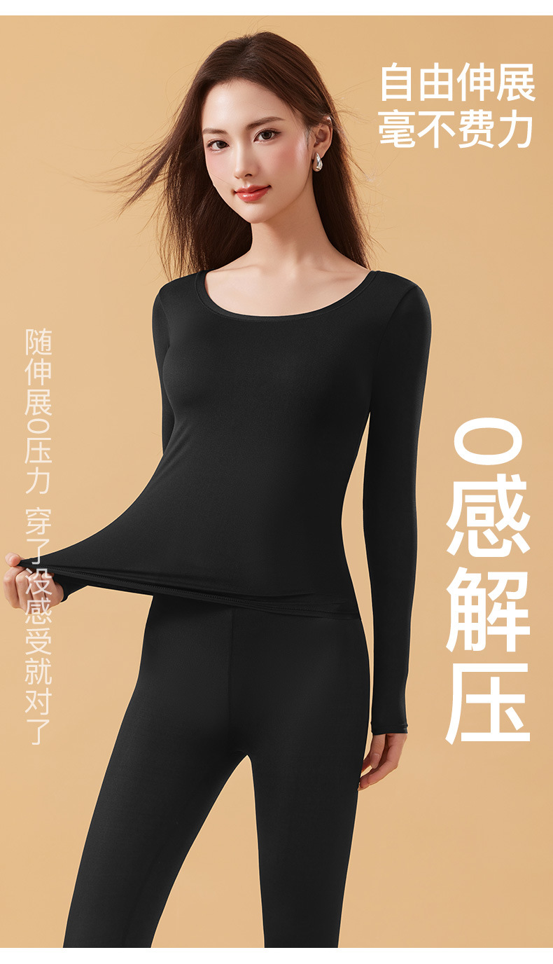 恒温发热玻尿酸美肤衣带胸垫保暖长袖长裤无痕秋衣秋裤女保暖套装
