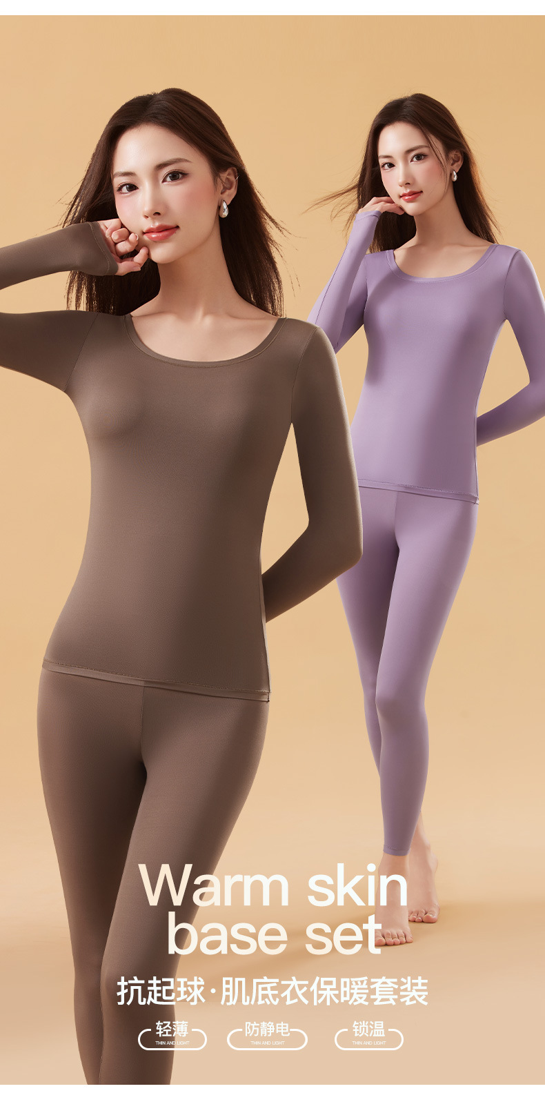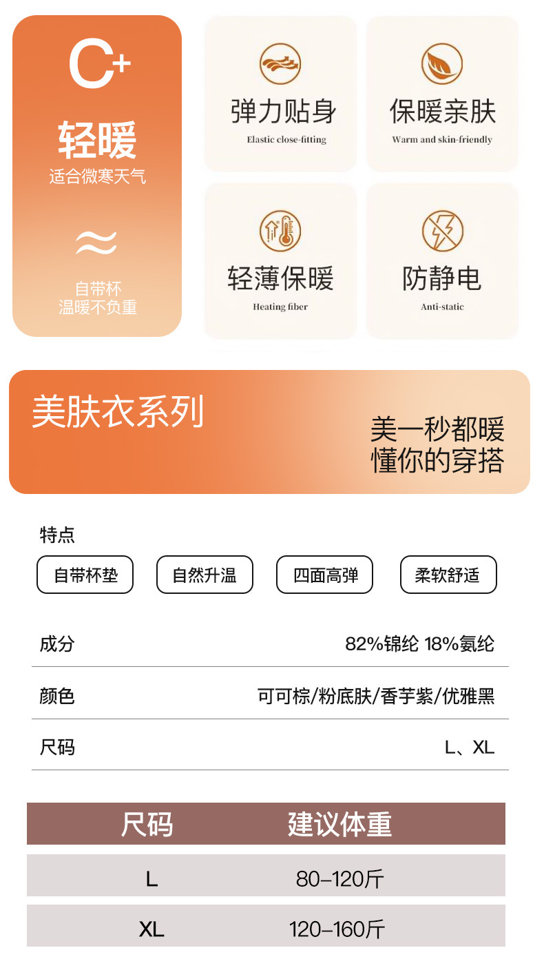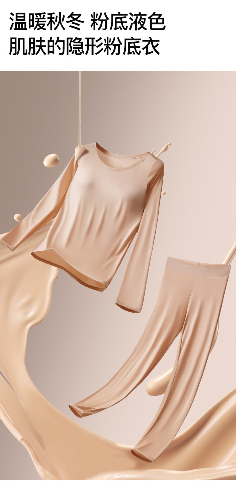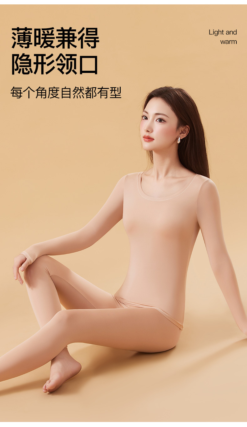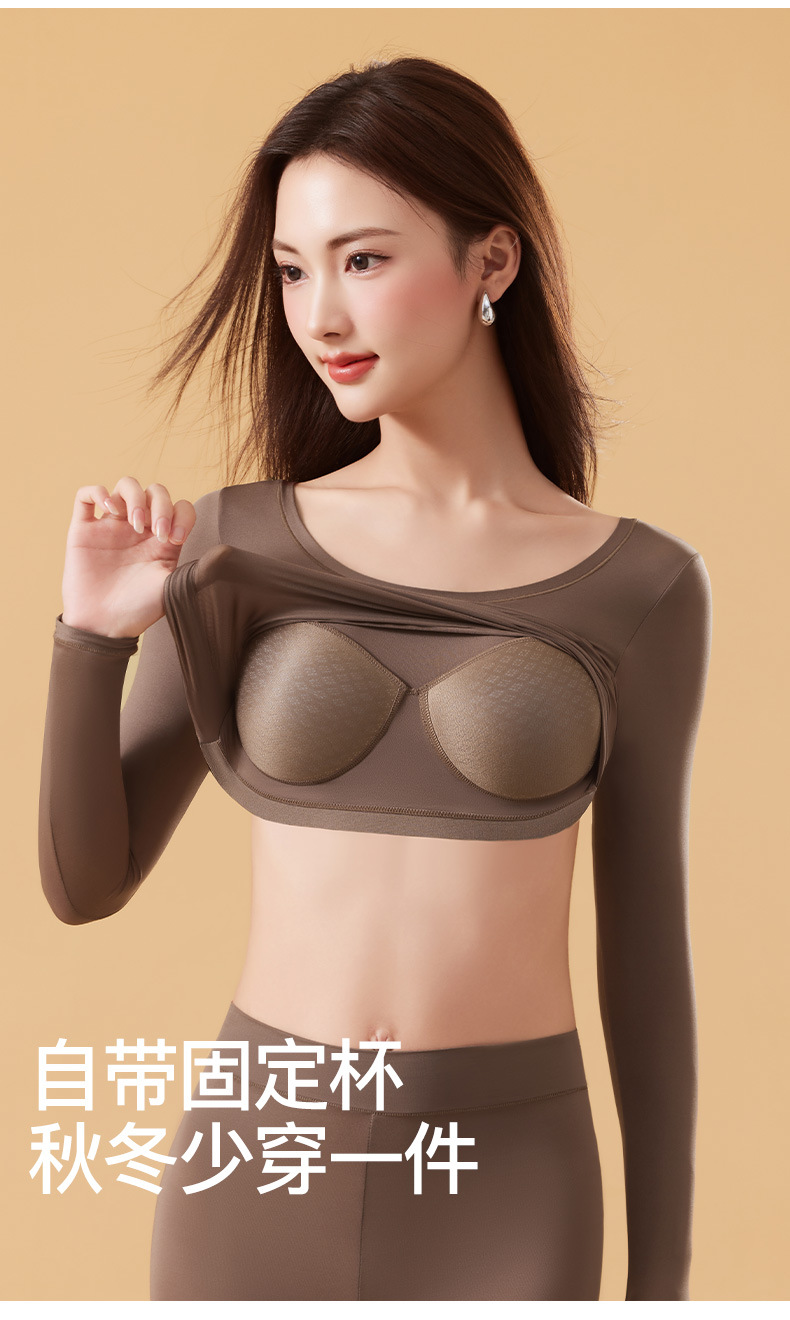 恒温发热玻尿酸美肤衣带胸垫保暖长袖长裤无痕秋衣秋裤女保暖套装